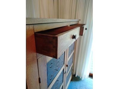 156 Shelbyville table missing drawers and needs repair 48x30x30