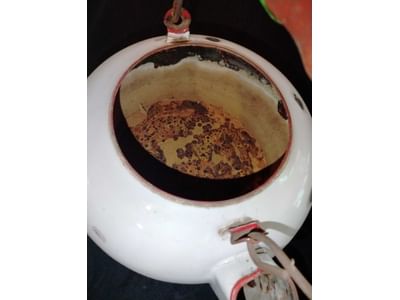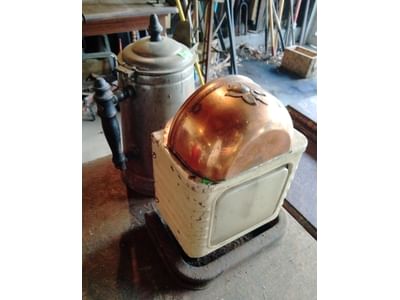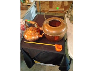 107 Copper kettle, RA Hunter scale, copper wall pocket
