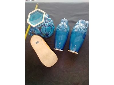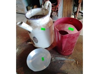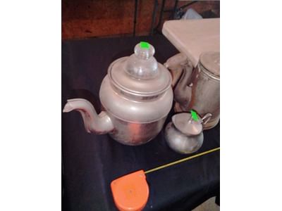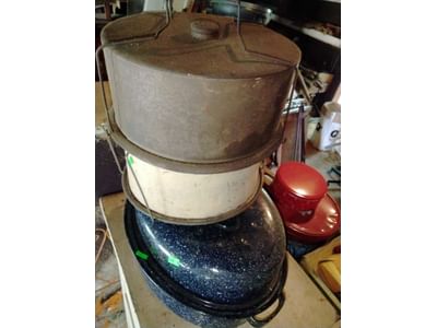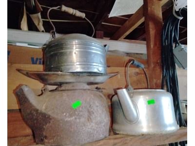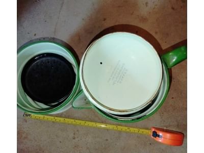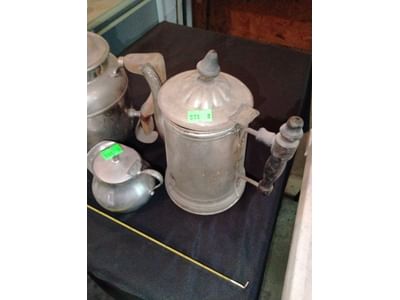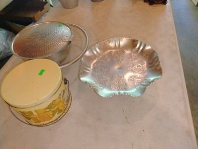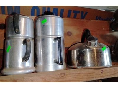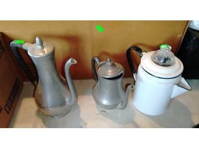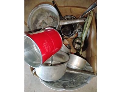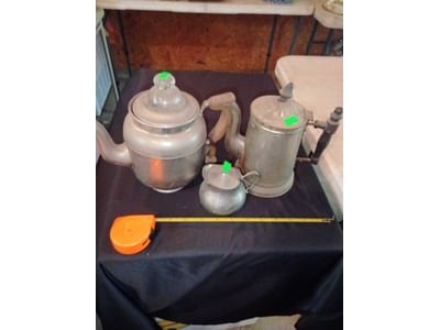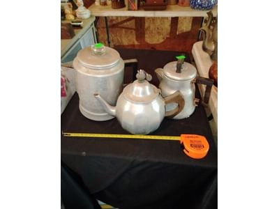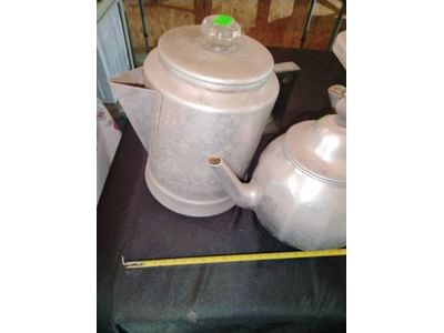 108 West Bend Aluminum pitcher, enamel pitcher and Wear Ever aluminum skillet