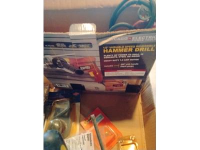132 Chicago Electric hammer drill, hand saw, plane, screw drivers