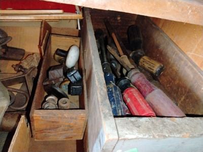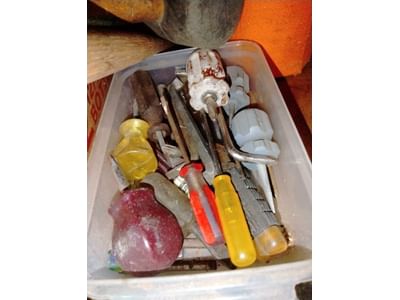 155 Craftsman drill grinding, Level, pry bars, corks, buffing pads, abrasive strippers, miscellaneous
