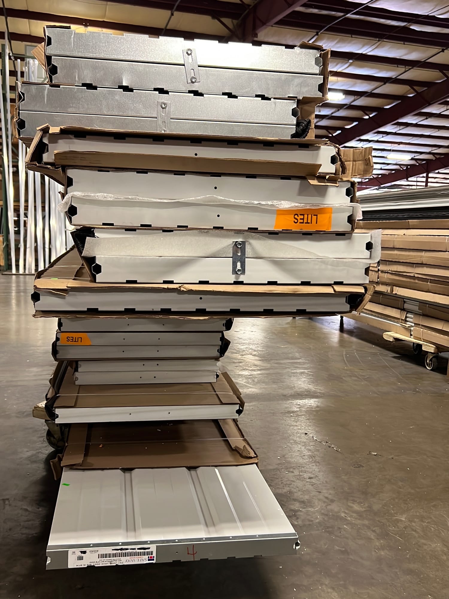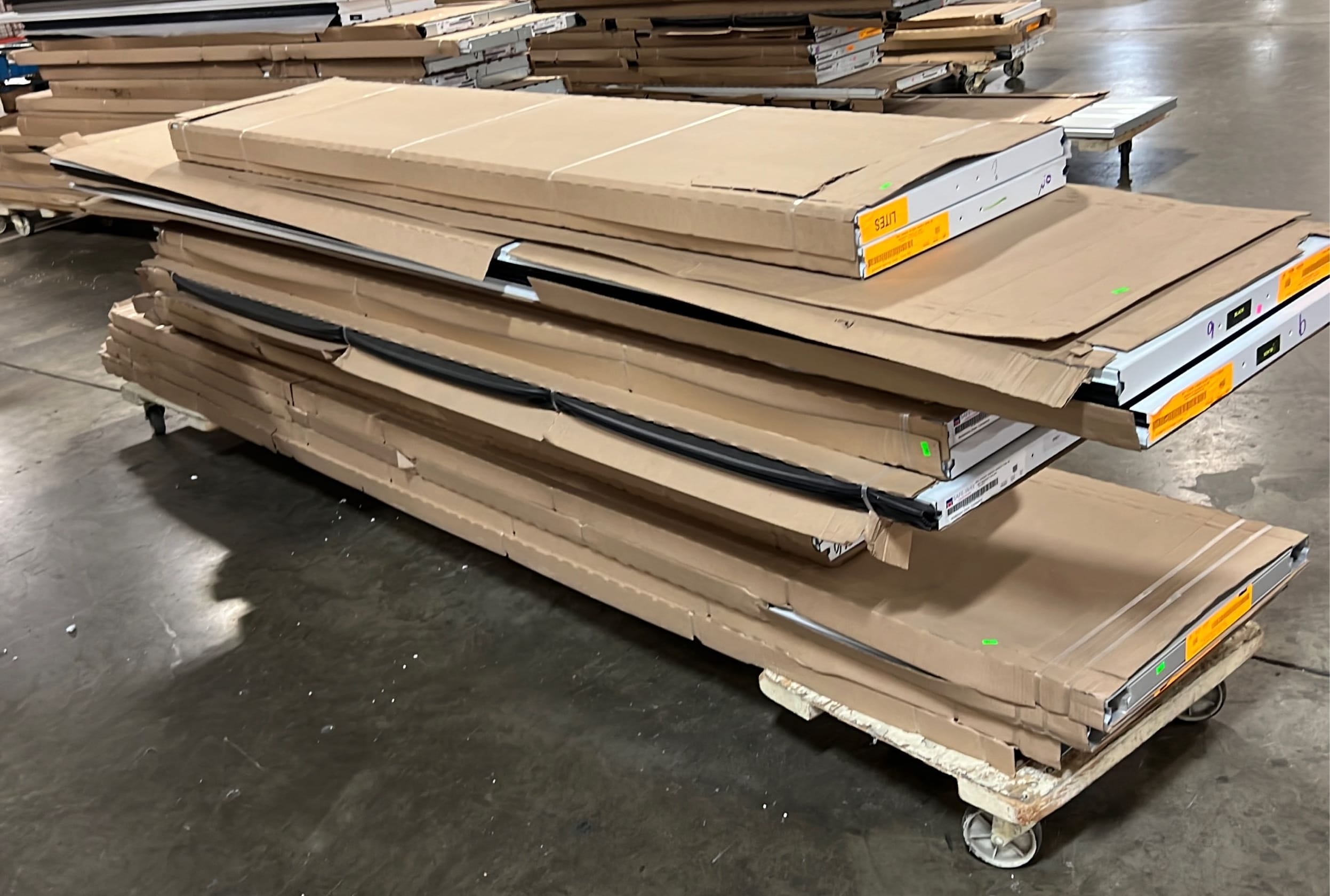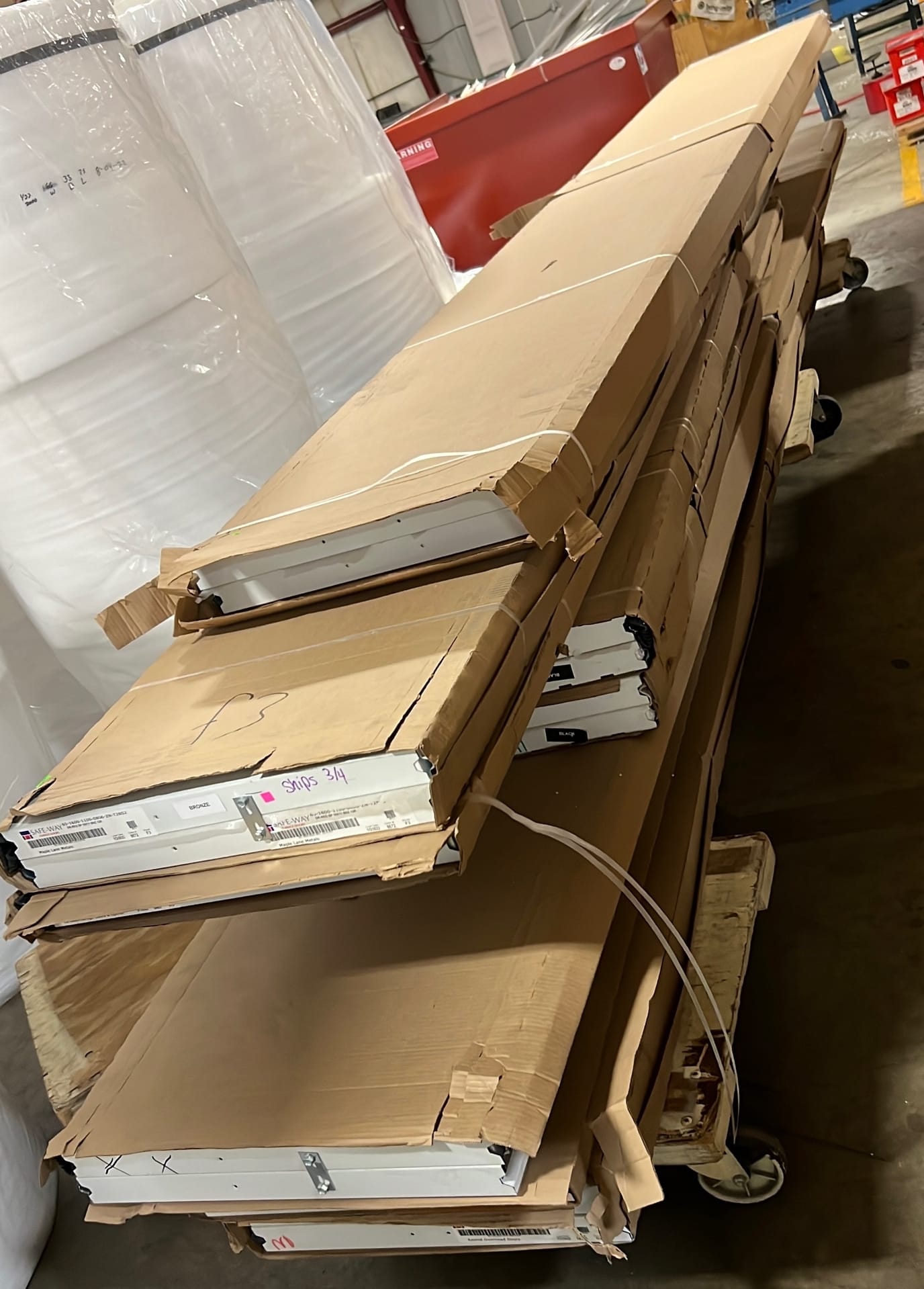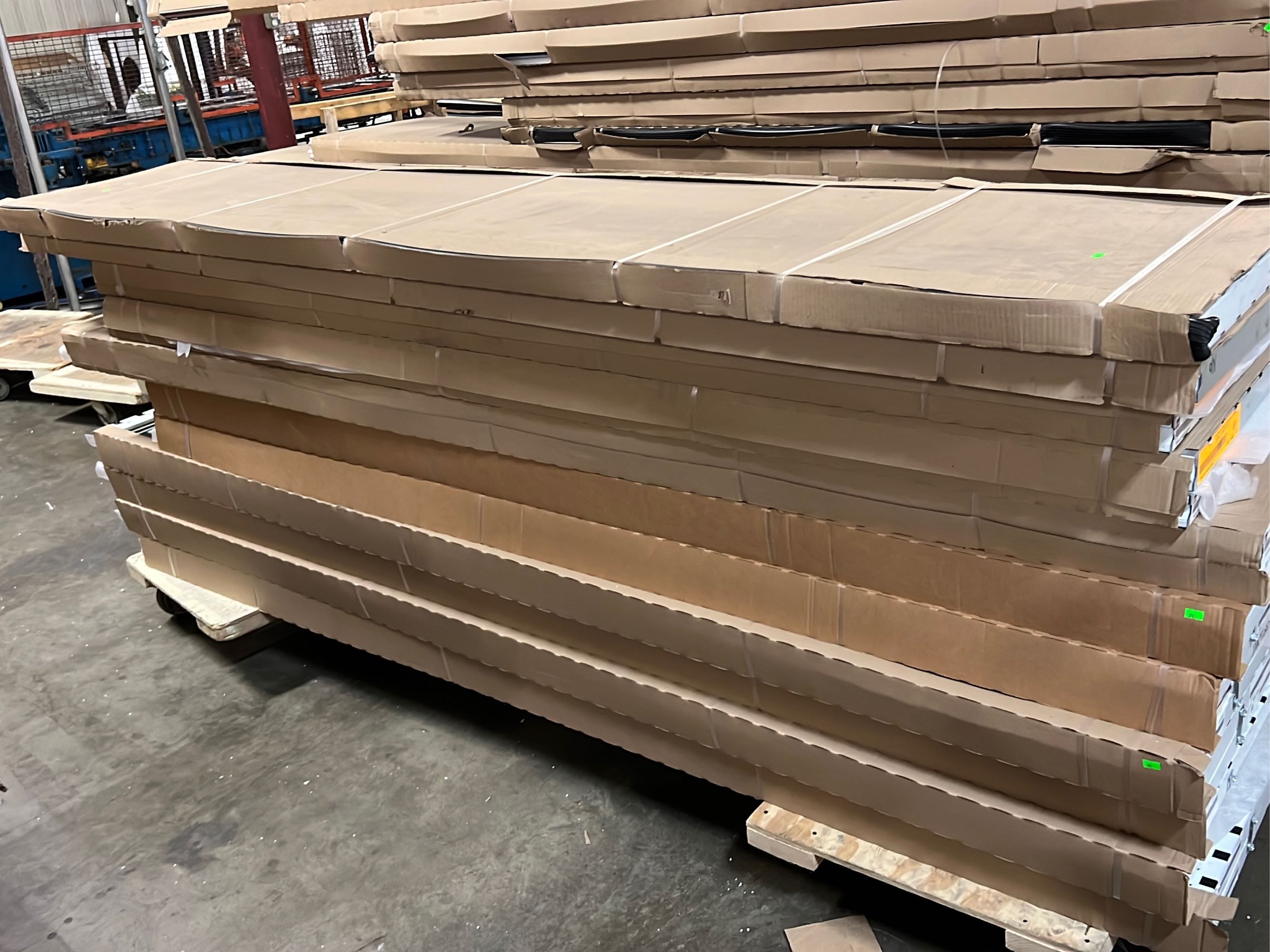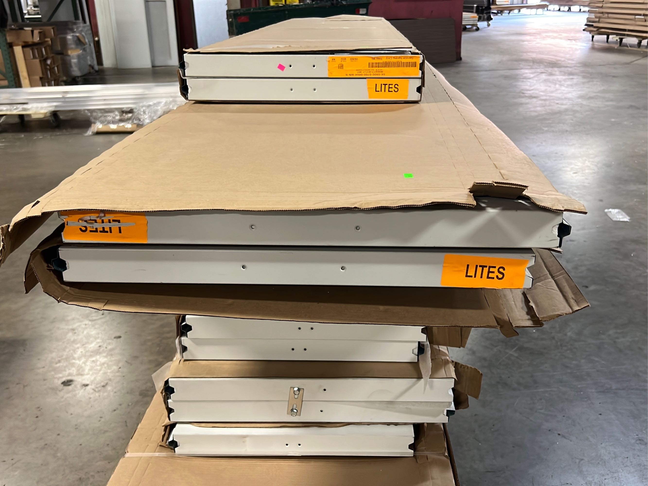 11 Garage Door Panels - (5) 12’2”x24” White, (1) 12’2”x21” White, (4) 8’x24” Black, (2) 7’x18” White, (1) 10’x21” White, (2) 7’5”x21”, (2) 8’x18” White, (1) 10’x21” White, (2) 8’x21” Black, (2) 9’x21” White, (10) 10’4”x18” White