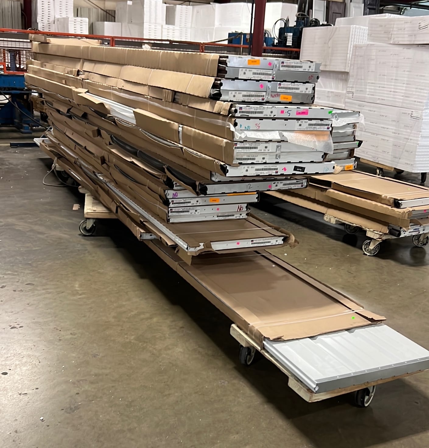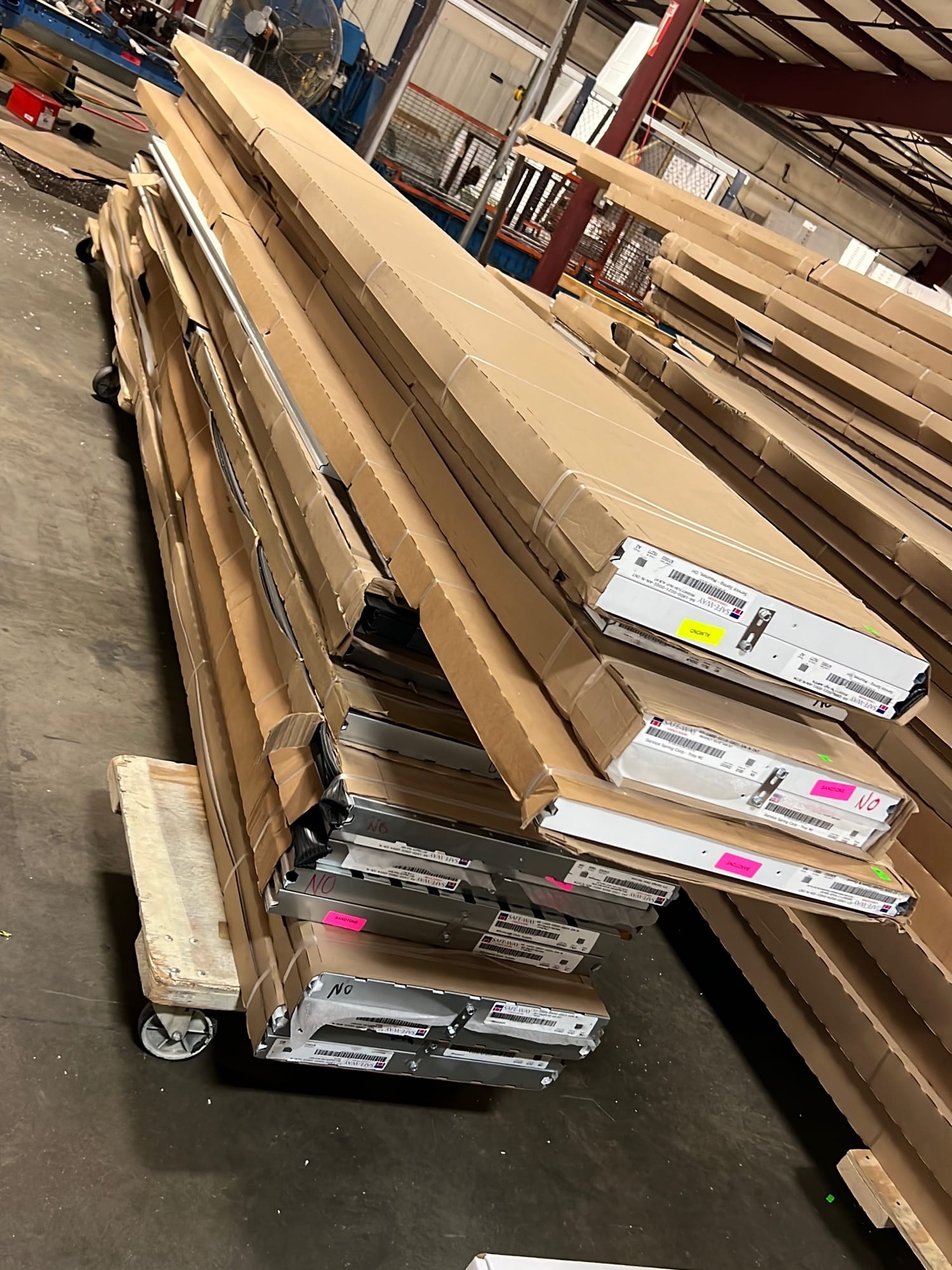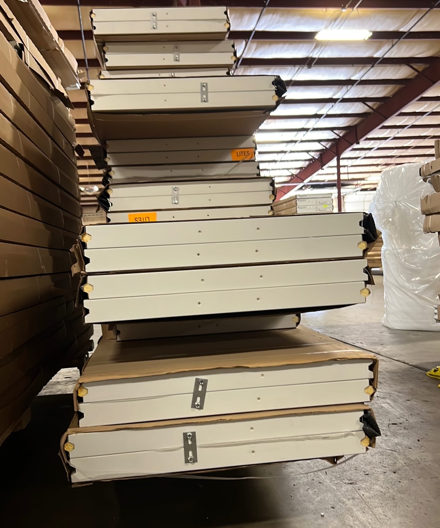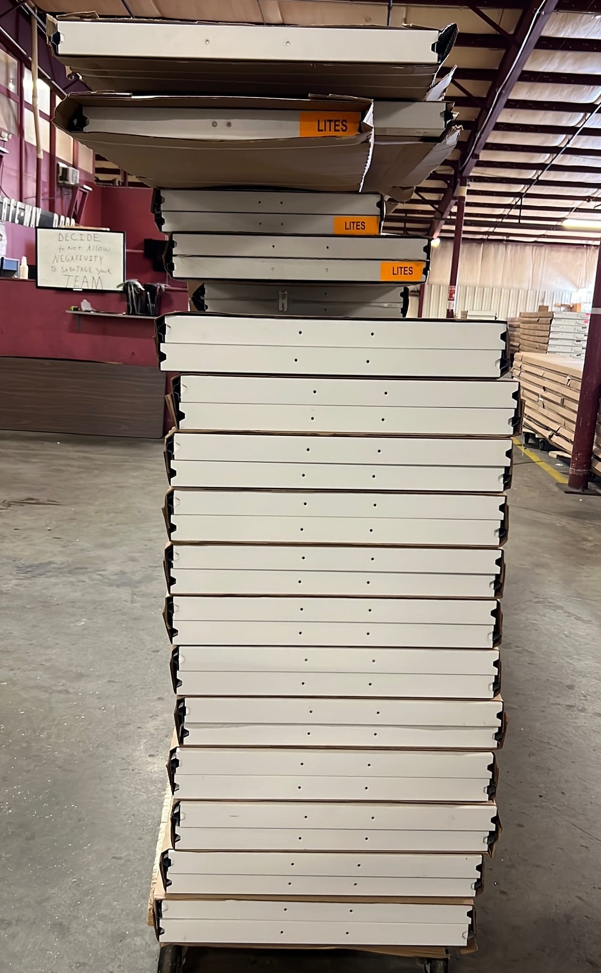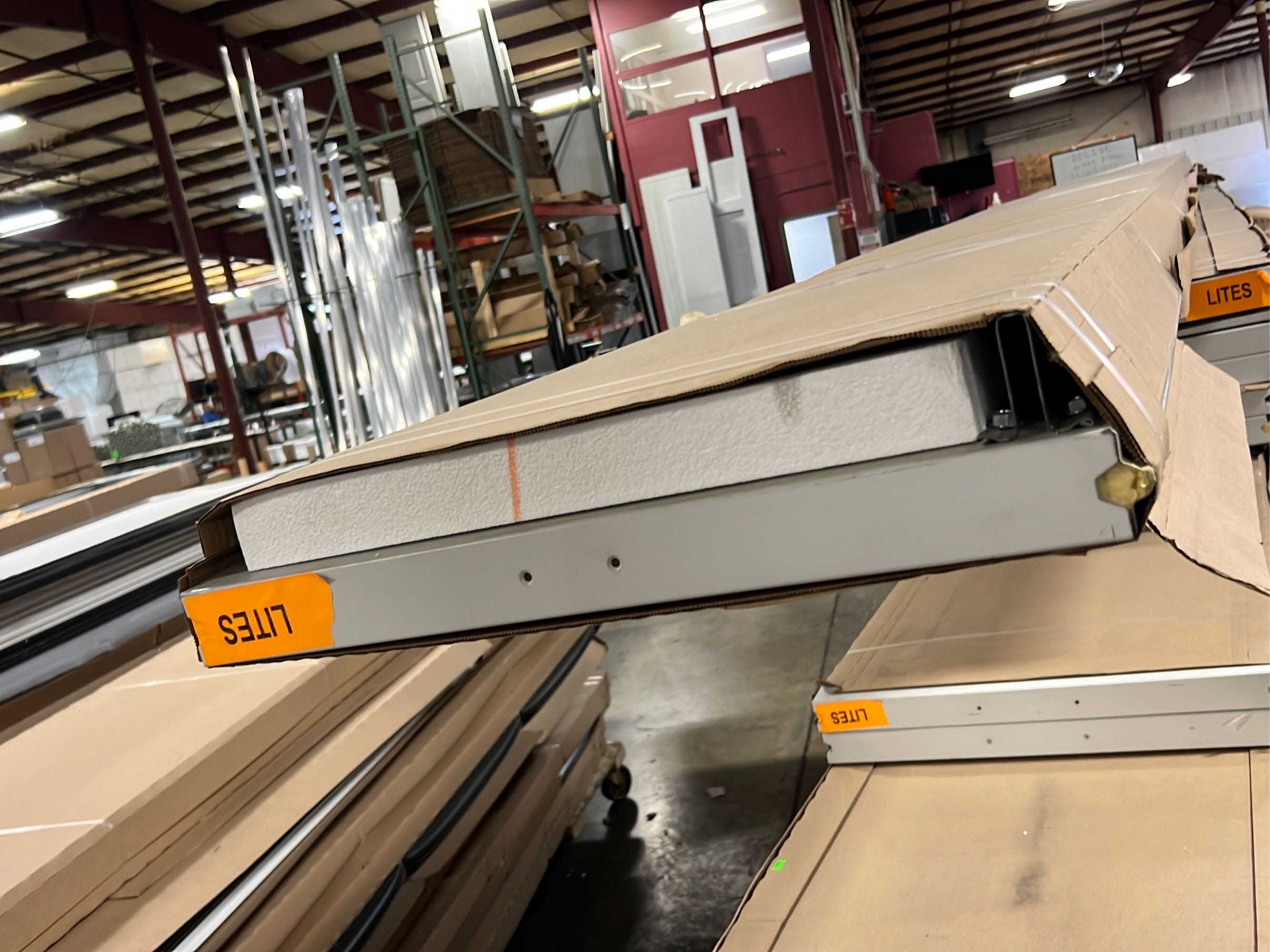 11 Garage Door Panels - (5) 12’2”x24” White, (1) 12’2”x21” White, (4) 8’x24” Black, (2) 7’x18” White, (1) 10’x21” White, (2) 7’5”x21”, (2) 8’x18” White, (1) 10’x21” White, (2) 8’x21” Black, (2) 9’x21” White, (10) 10’4”x18” White