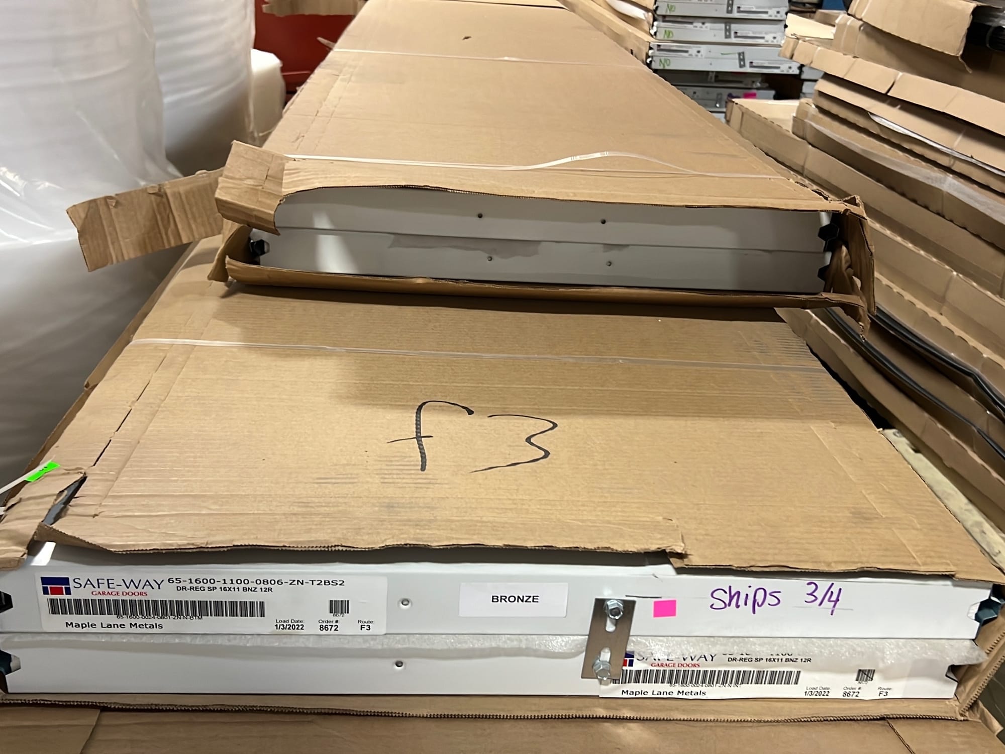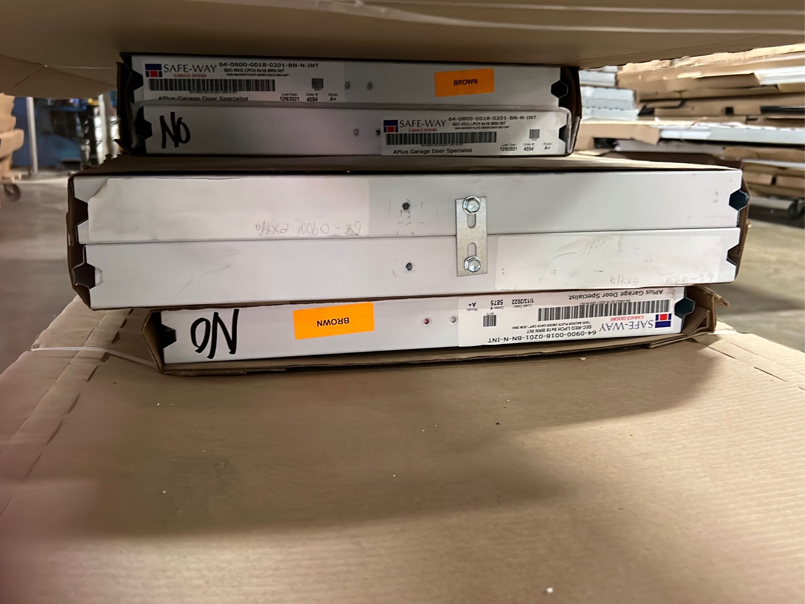 25 Garage Door Panels - (2) 9’x24” Bronze, (1) 10’x24” White, (2) 9’x21” Black, (5) 10’2”x24” White, (5) 12’2”x24” White, (1) 18’x24” White, (1) 16’x21” White, (2) 16’x21”White, (4) 16’x24” White