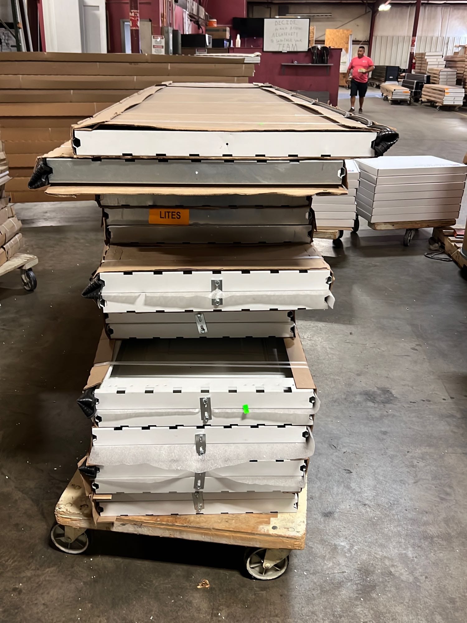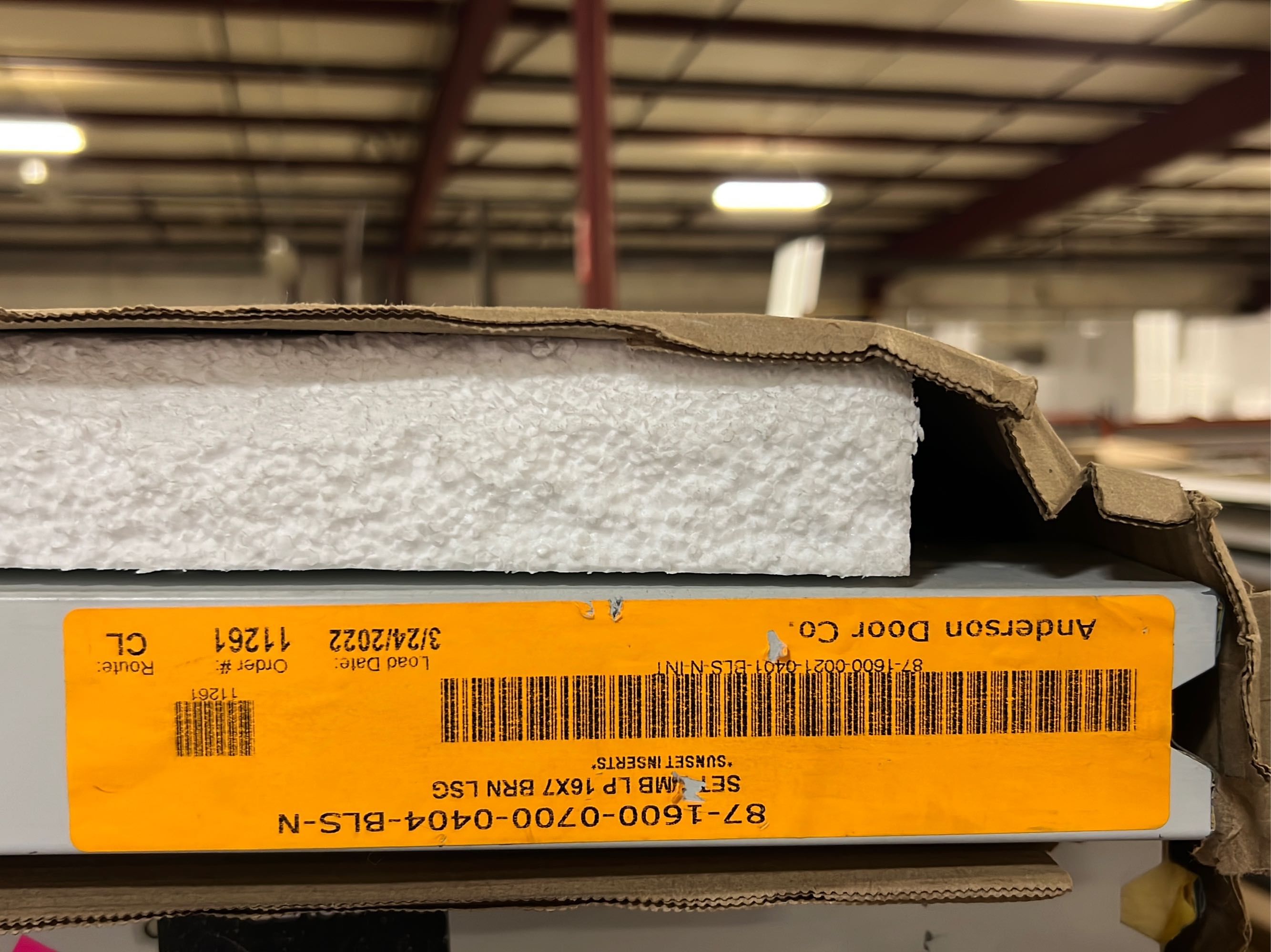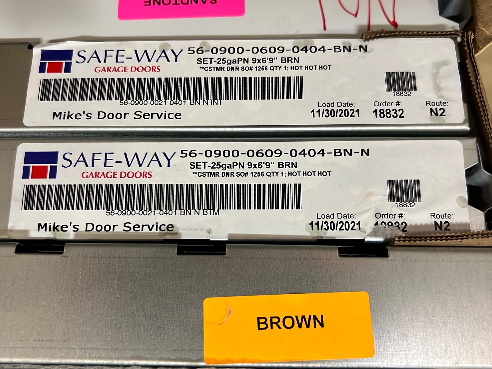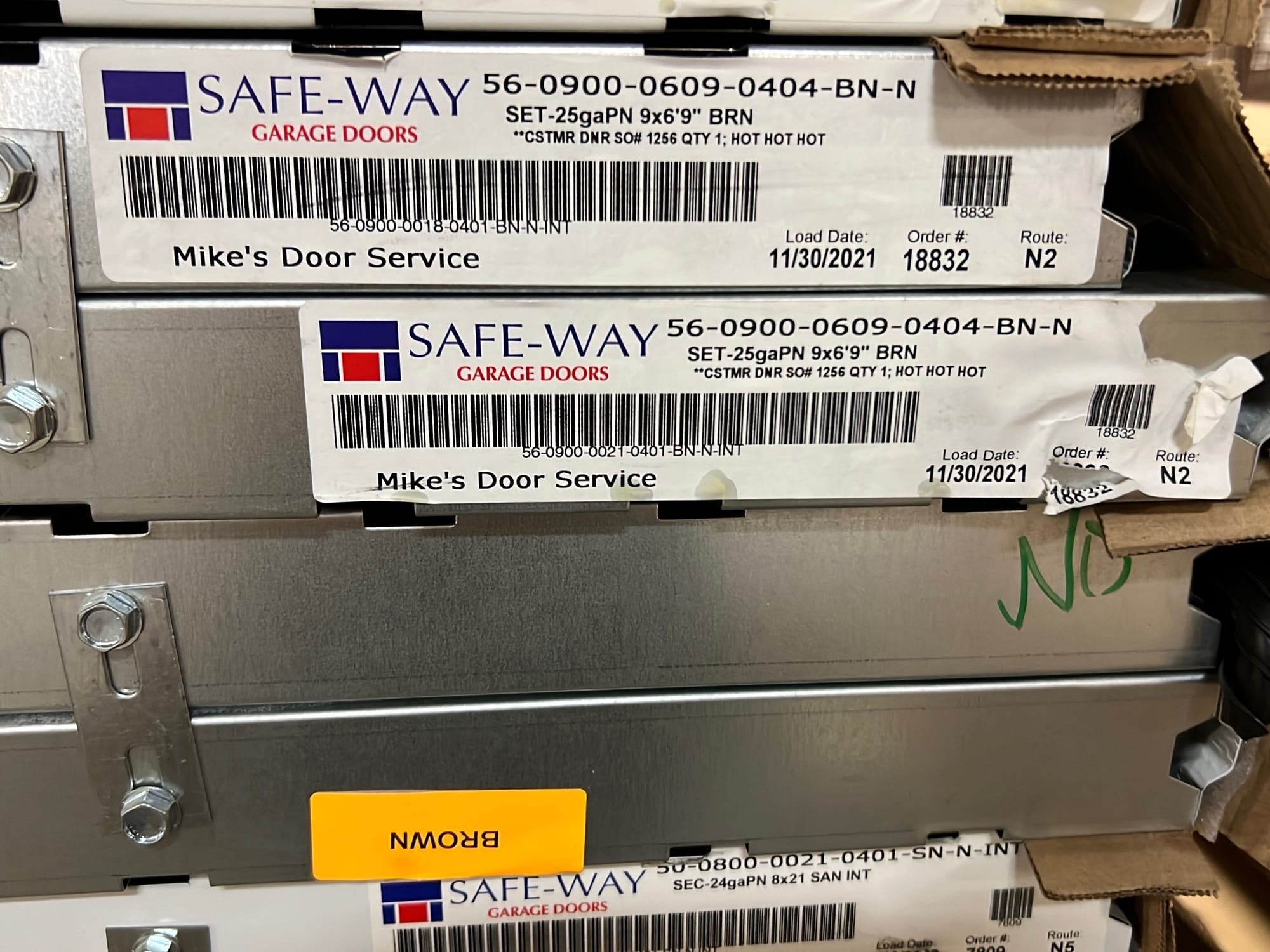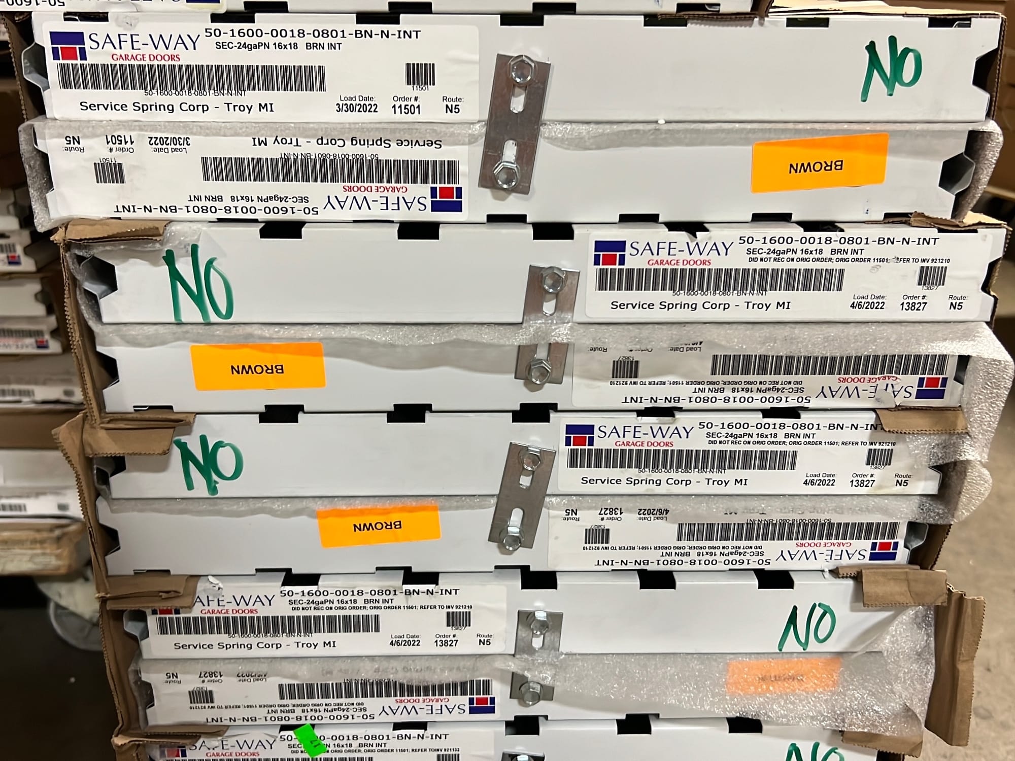 26 Garage Door Panels - (4) 17’x21” Brown, (1) 18’x21” Sandtone, (4) 18’x21” White, (1) 18’x24” Black, (2) 15’x18” White, (1) 14’2”x24” White, (4) 12’x24” Brown, (2) 12’x21” White, (1) 14’2”x24” White, (1) 12’2”x24” White, (1) 10’x24” Black, (1) 20’x24” White marked damaged