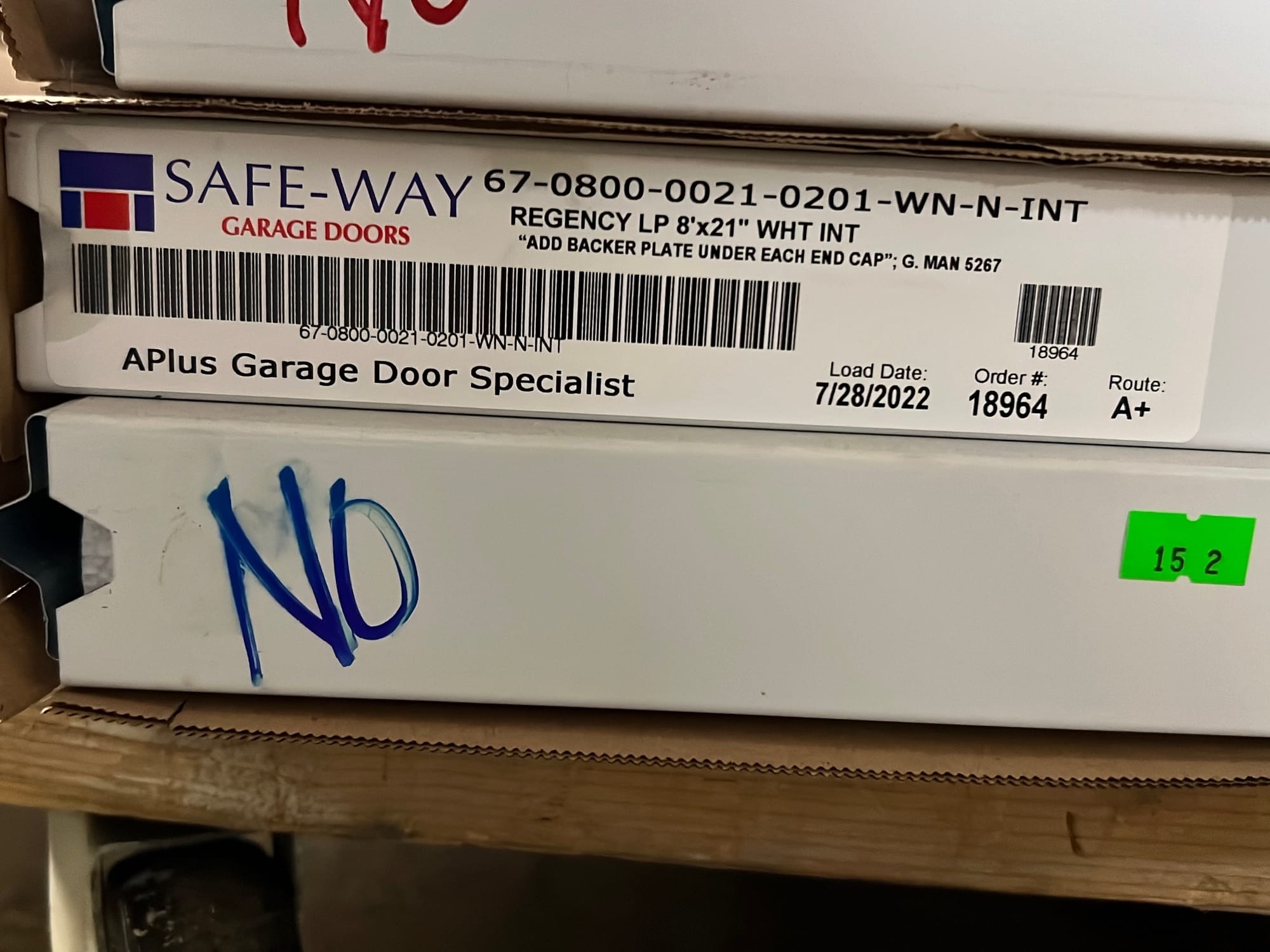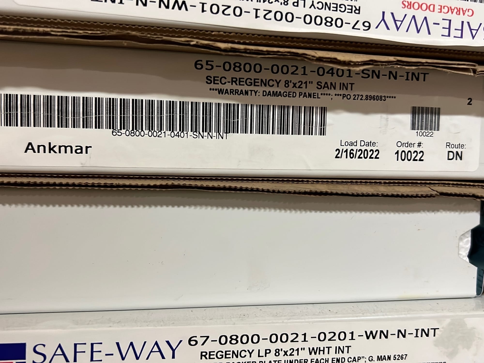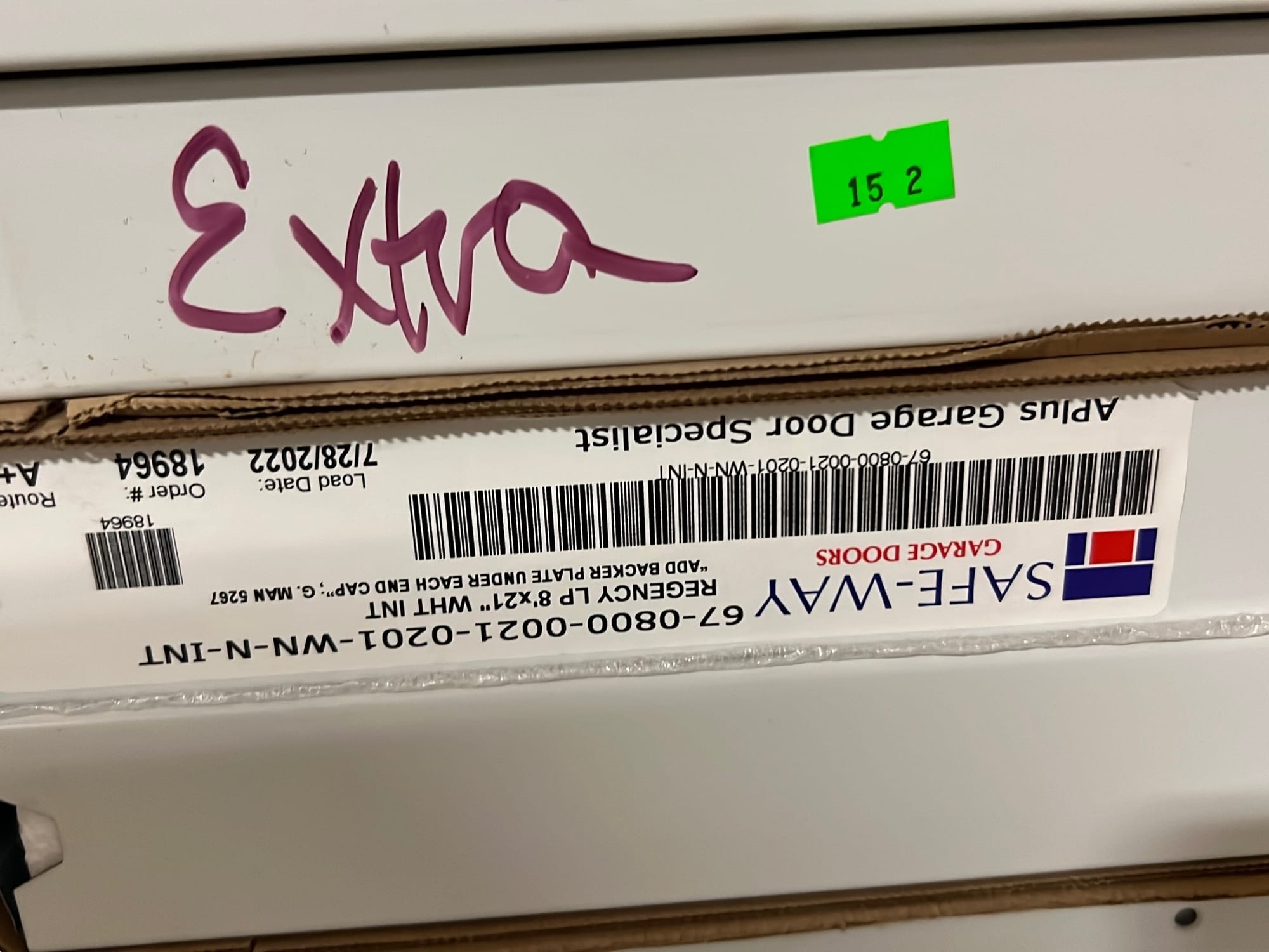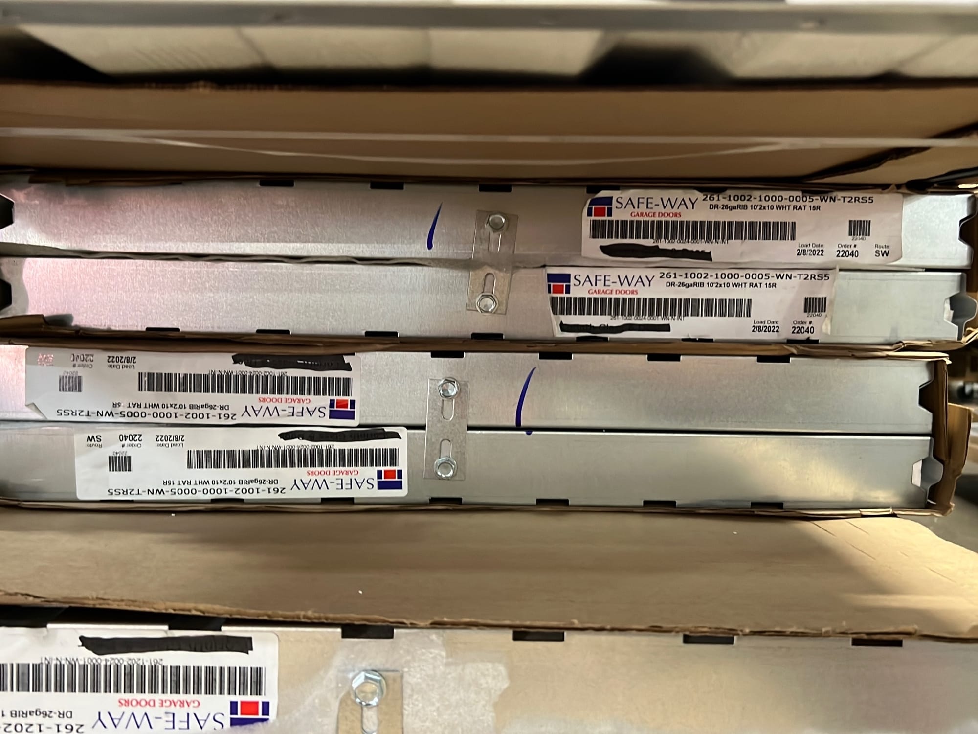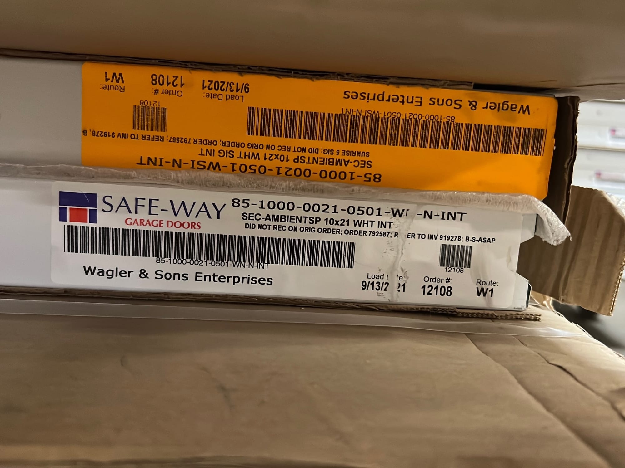 21 Garage Door Panels - (2) 9’x24” White, (4) 8’x21” White, (4) 8’x21” White, (2) 9’x21” White, (4) 8’x21” White, (8) 9’x21” White