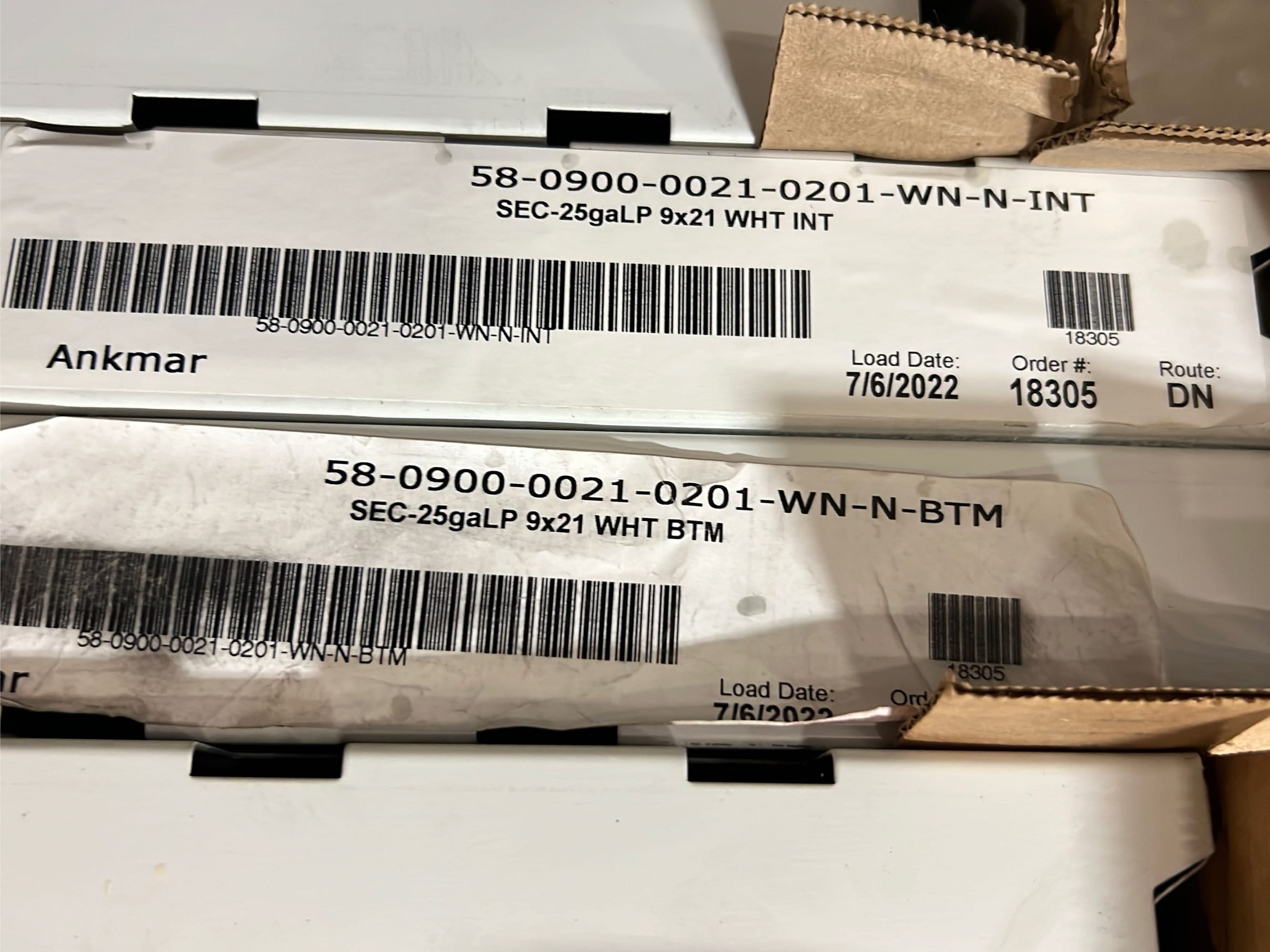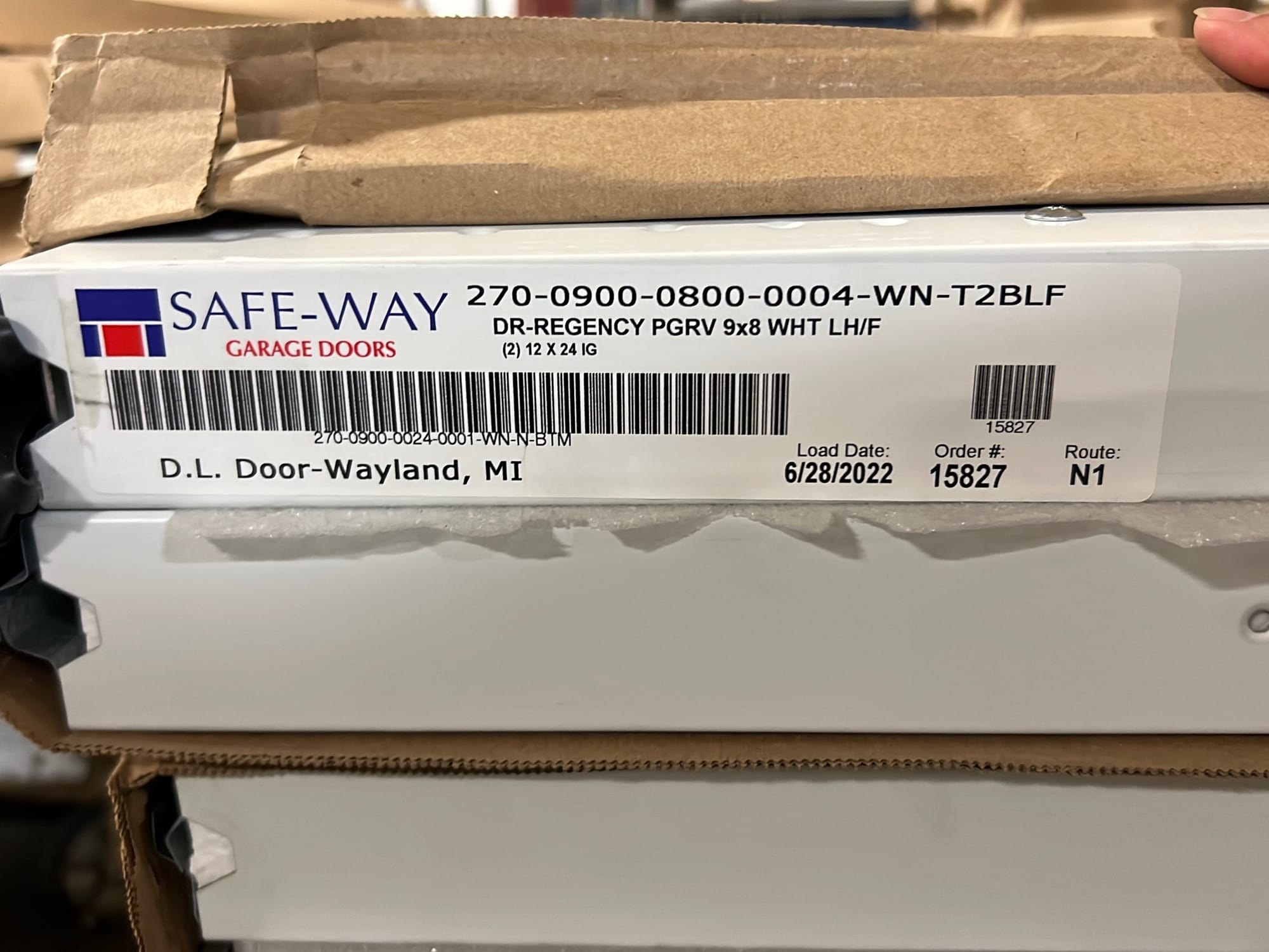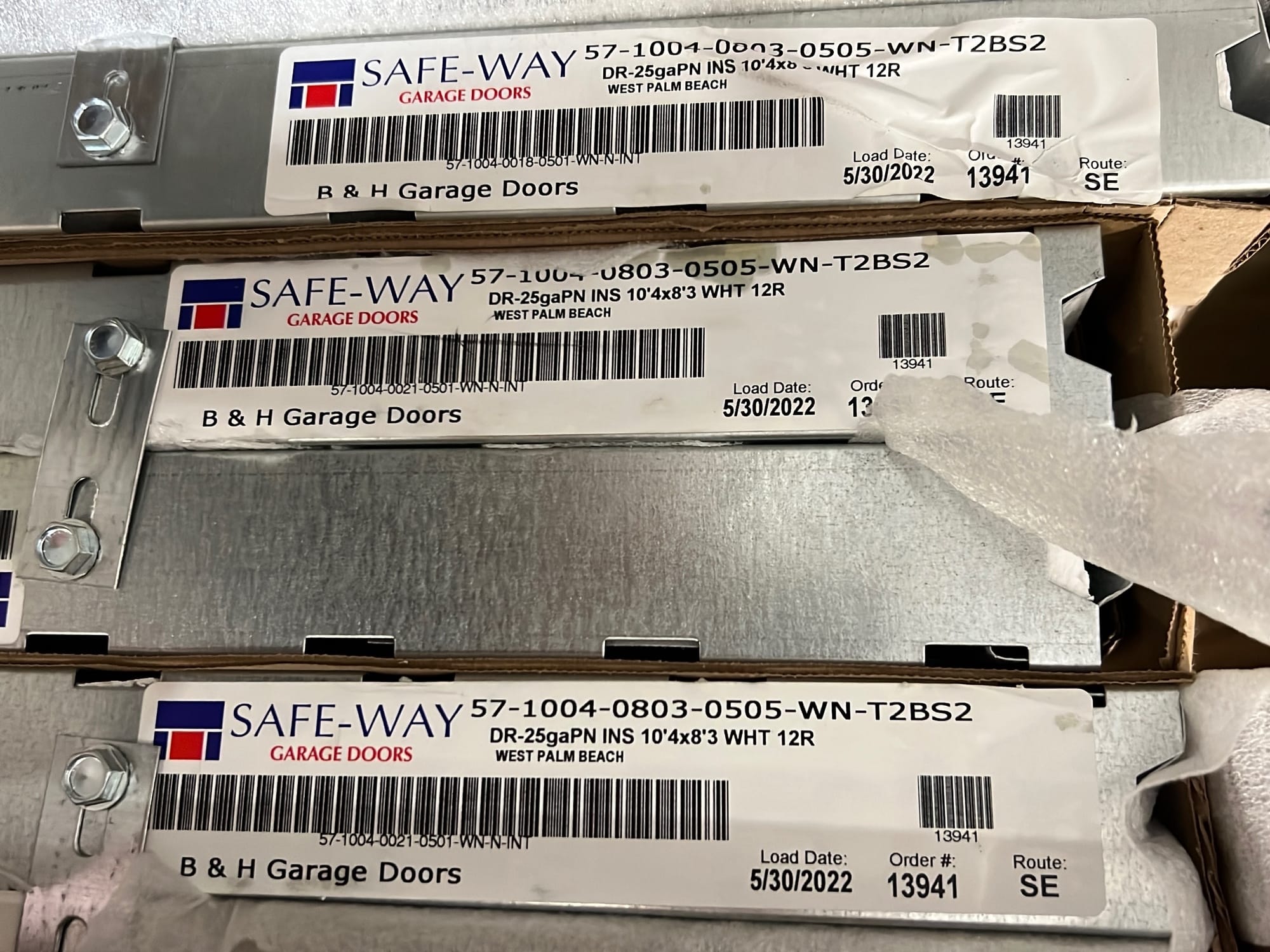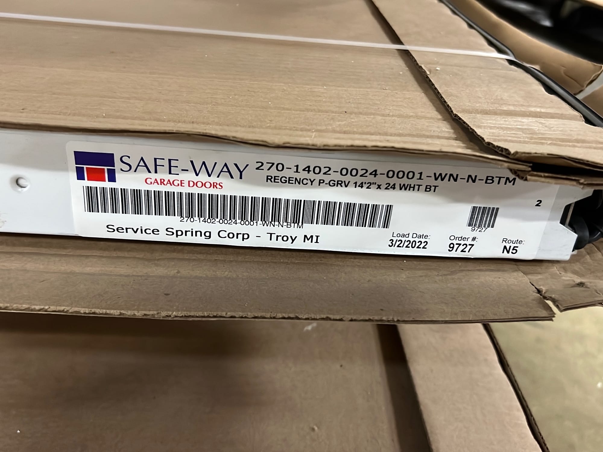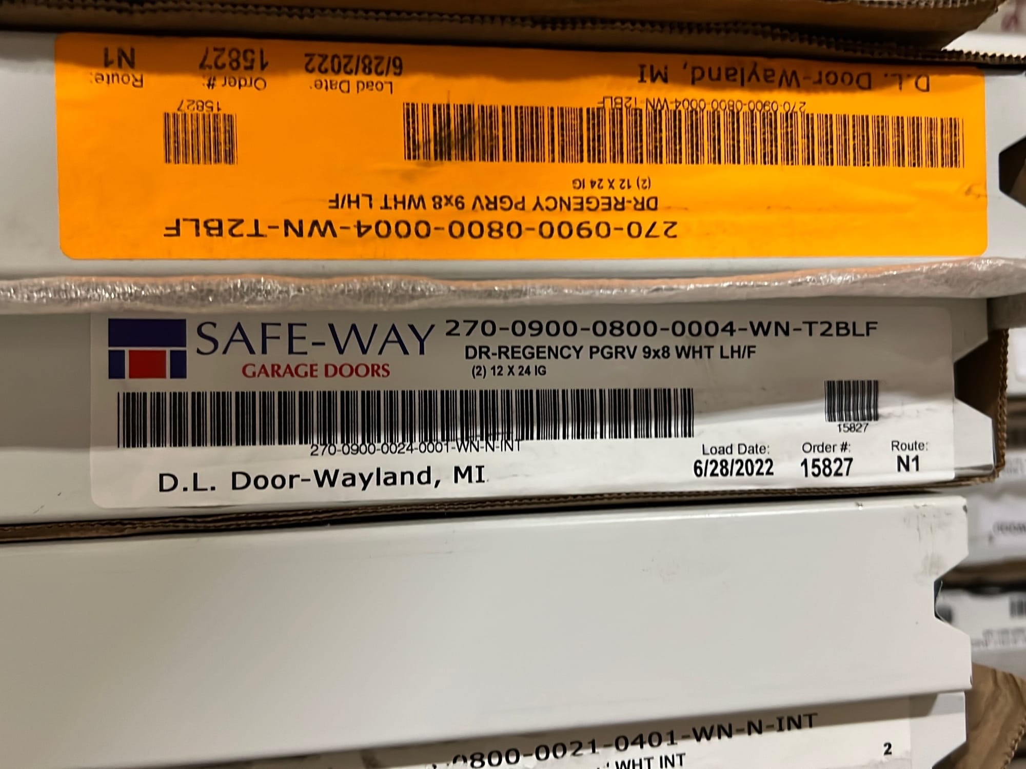 21 Garage Door Panels - (2) 9’x24” White, (4) 8’x21” White, (4) 8’x21” White, (2) 9’x21” White, (4) 8’x21” White, (8) 9’x21” White