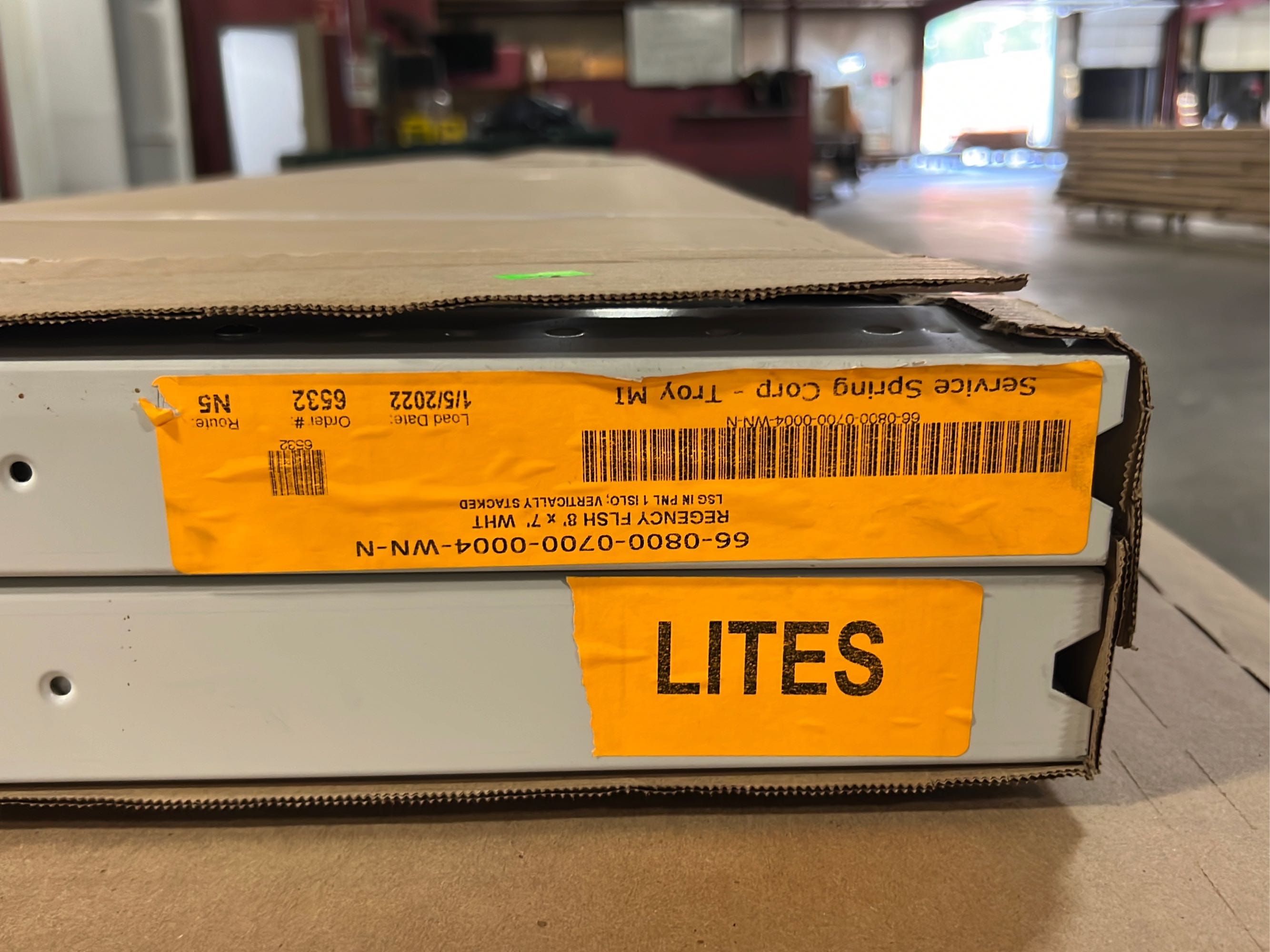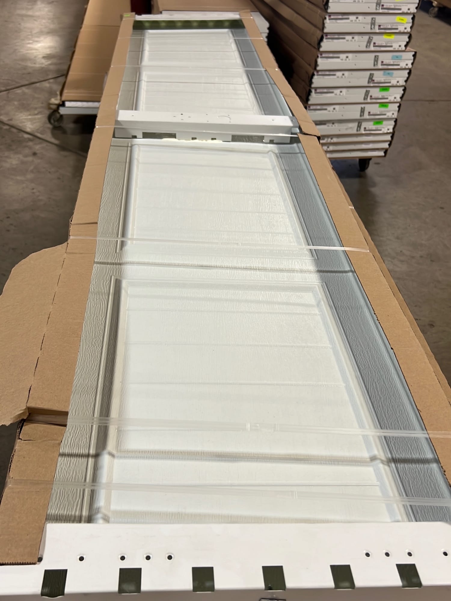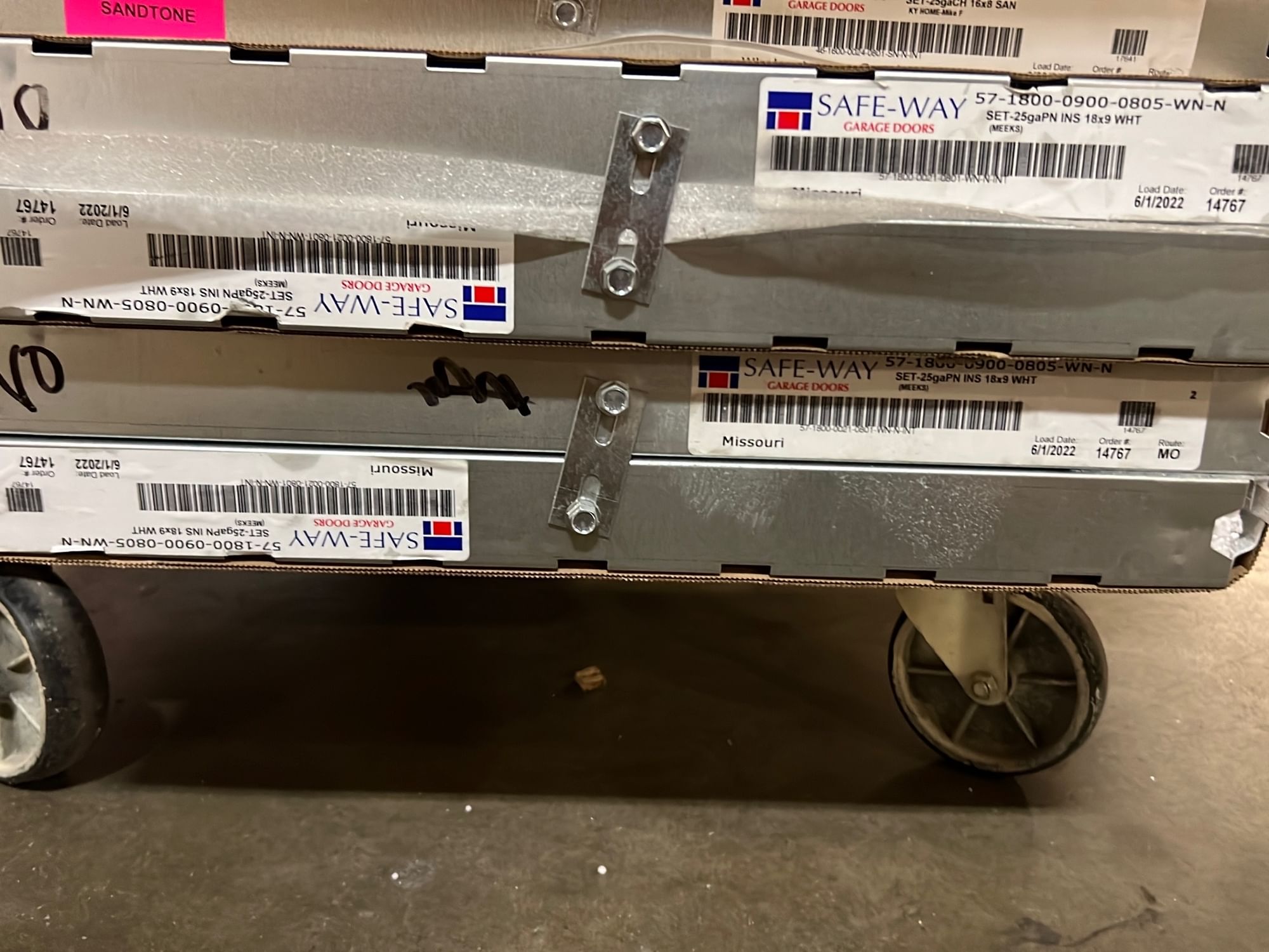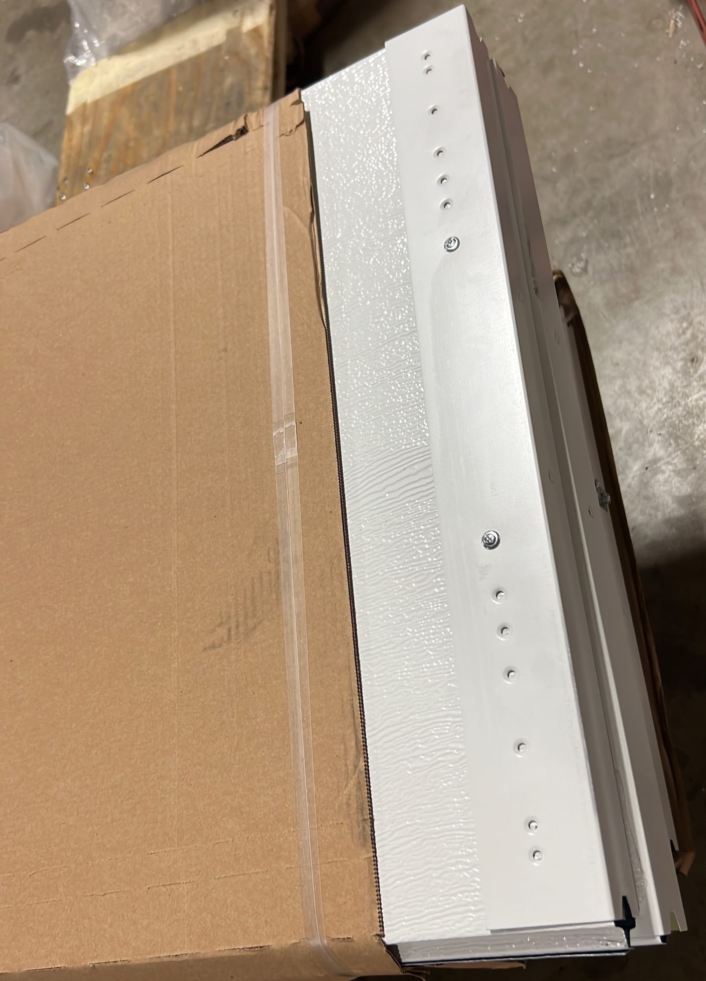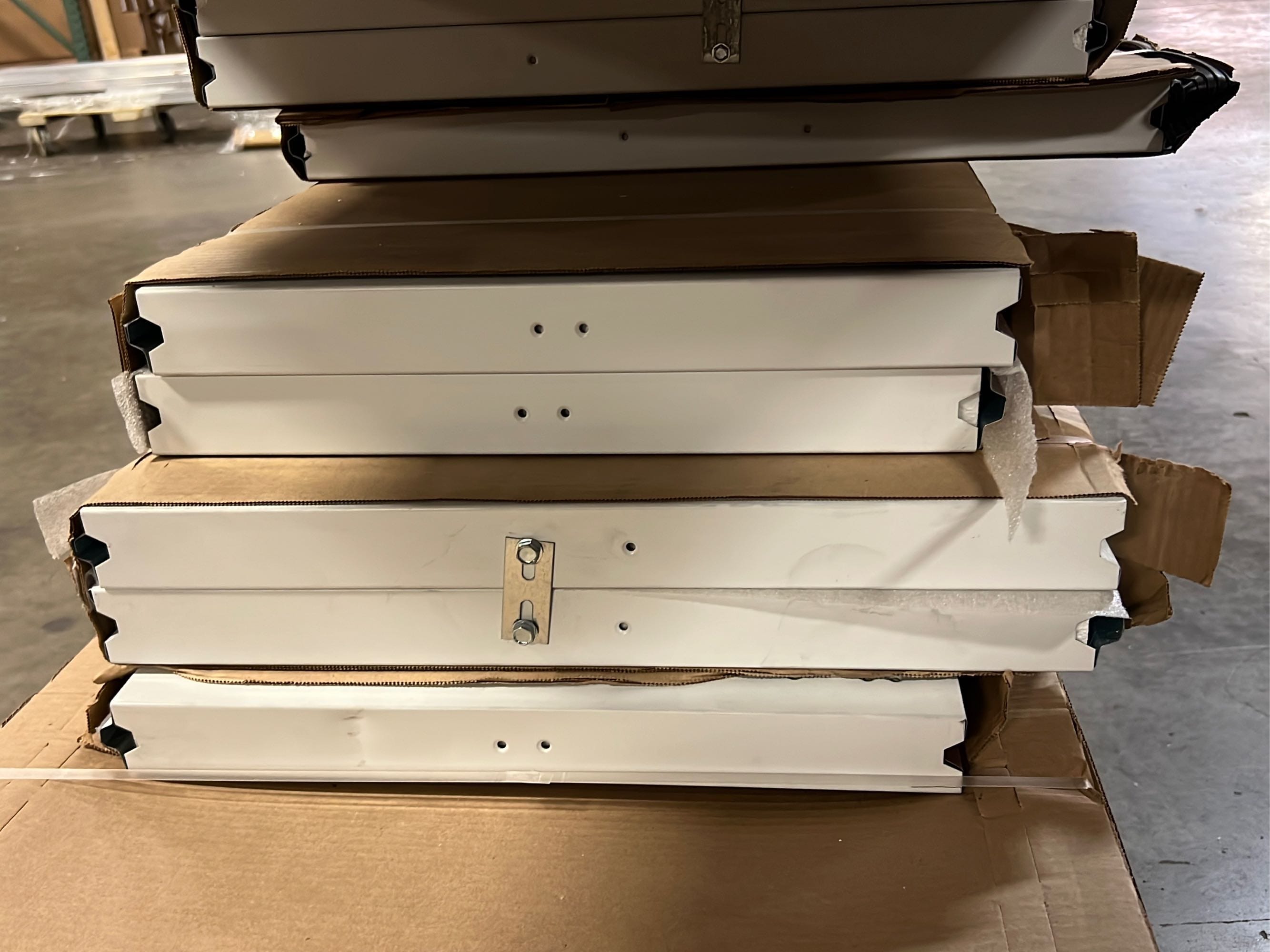 21 Garage Door Panels - (2) 9’x24” White, (4) 8’x21” White, (4) 8’x21” White, (2) 9’x21” White, (4) 8’x21” White, (8) 9’x21” White
