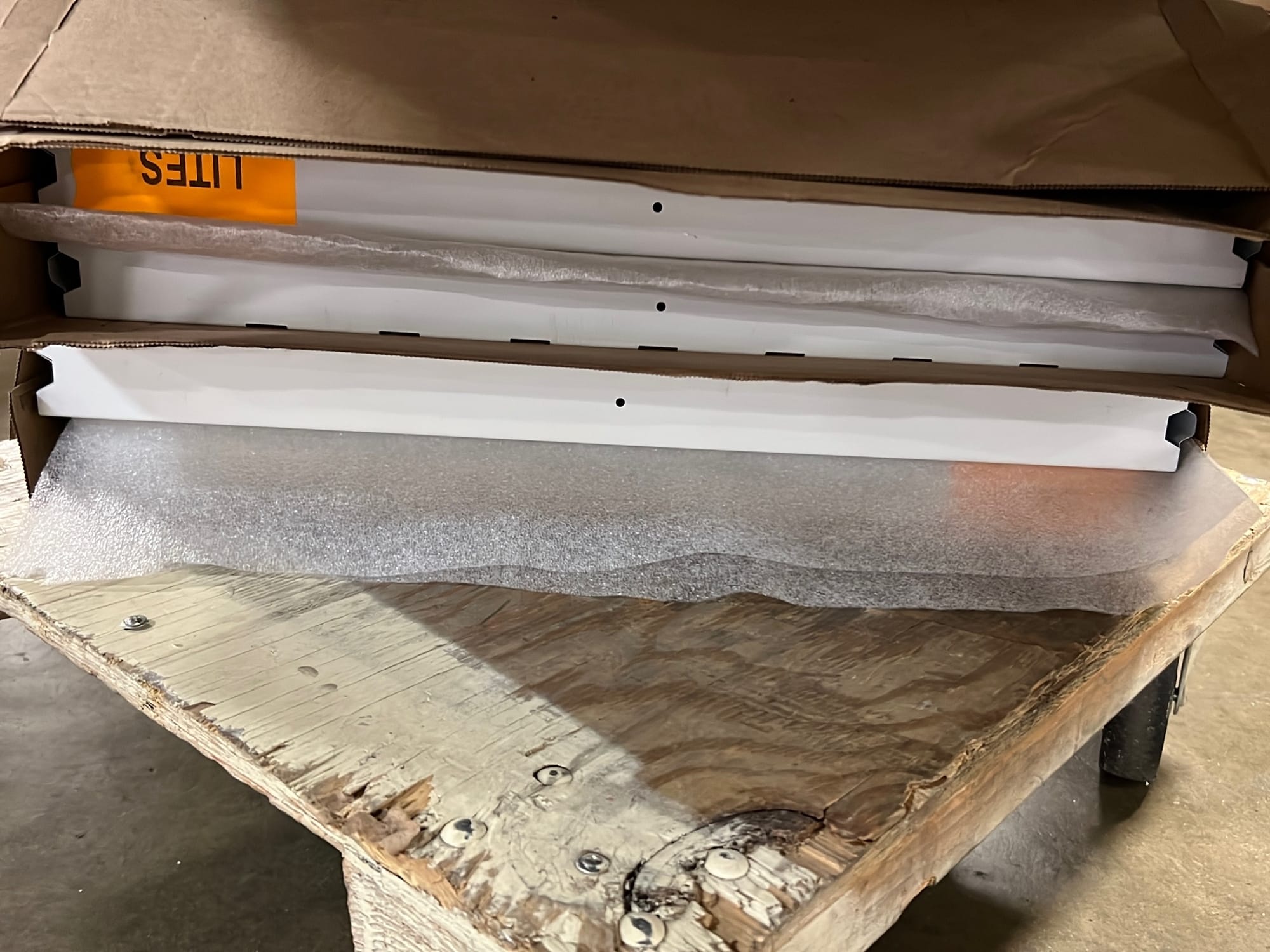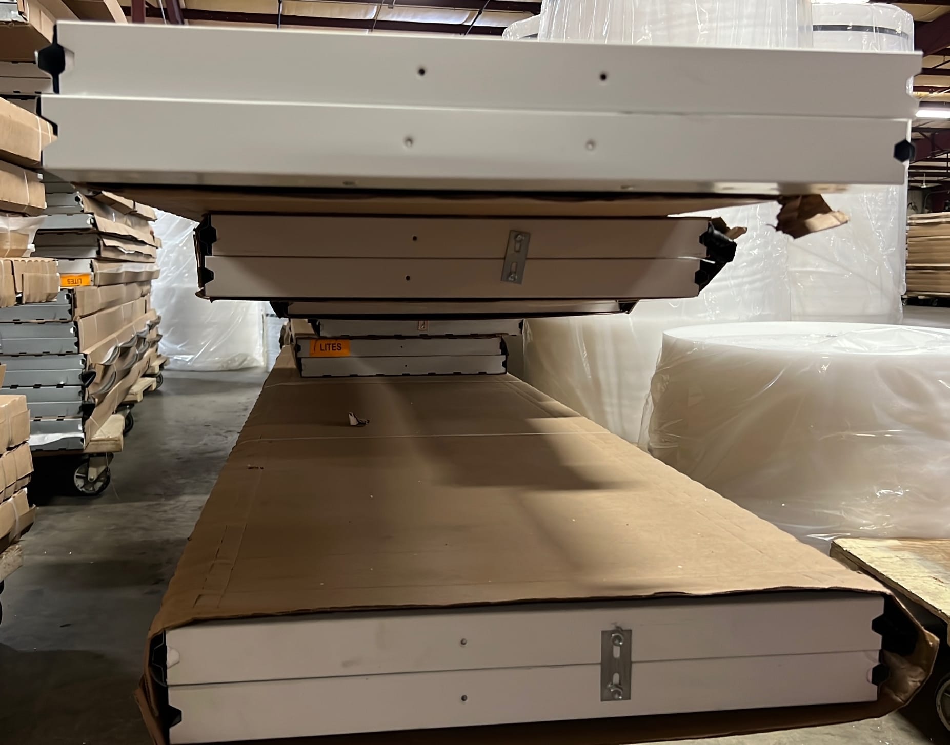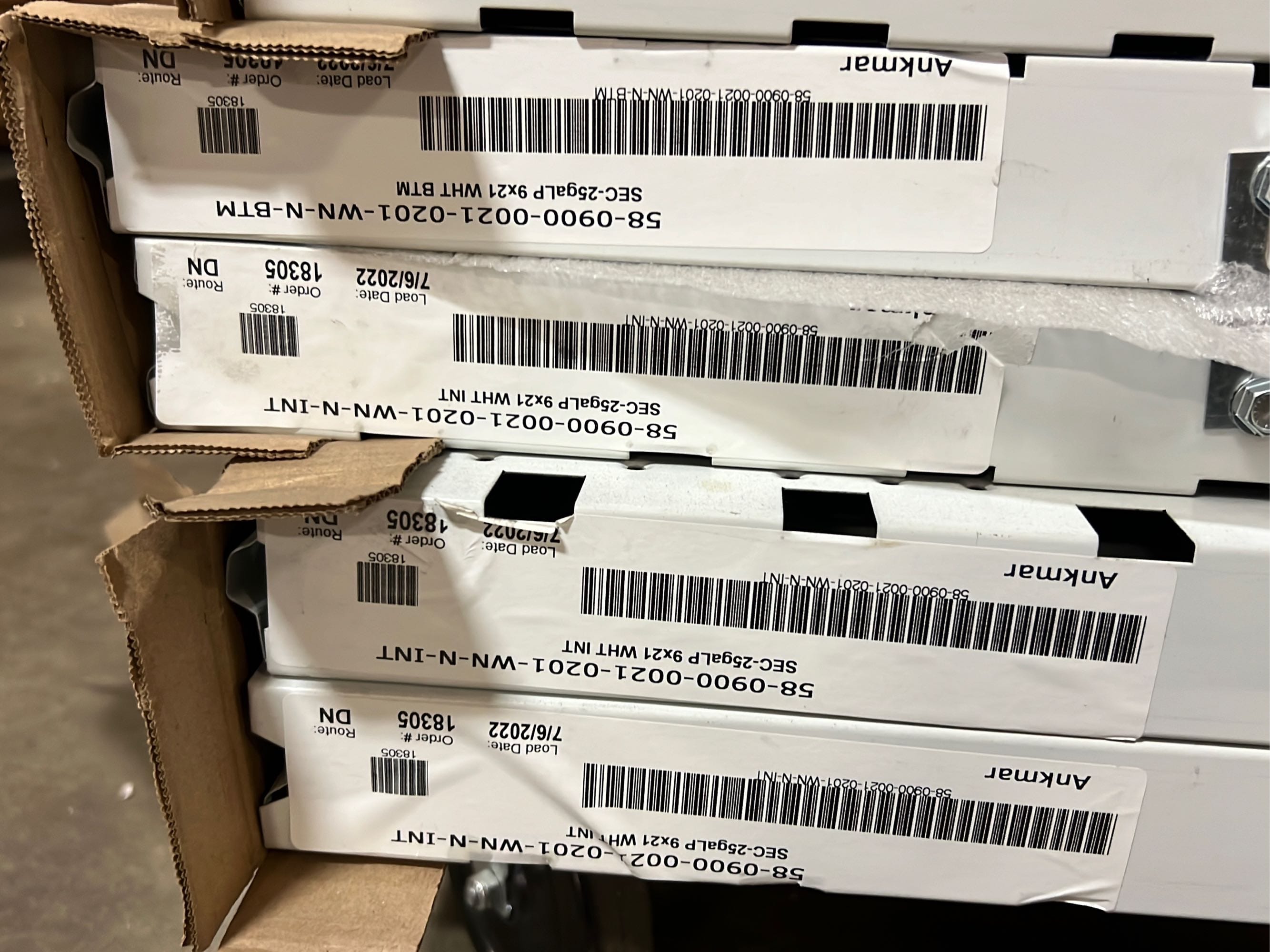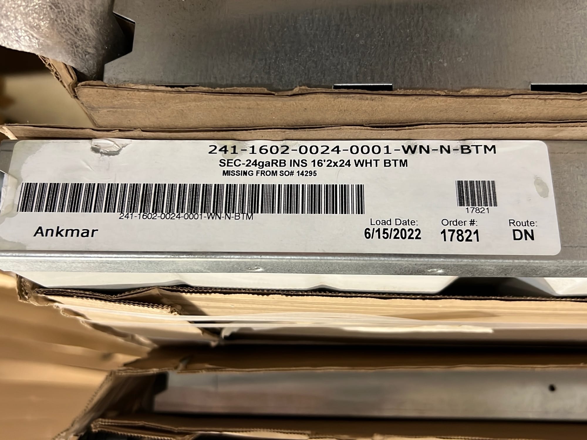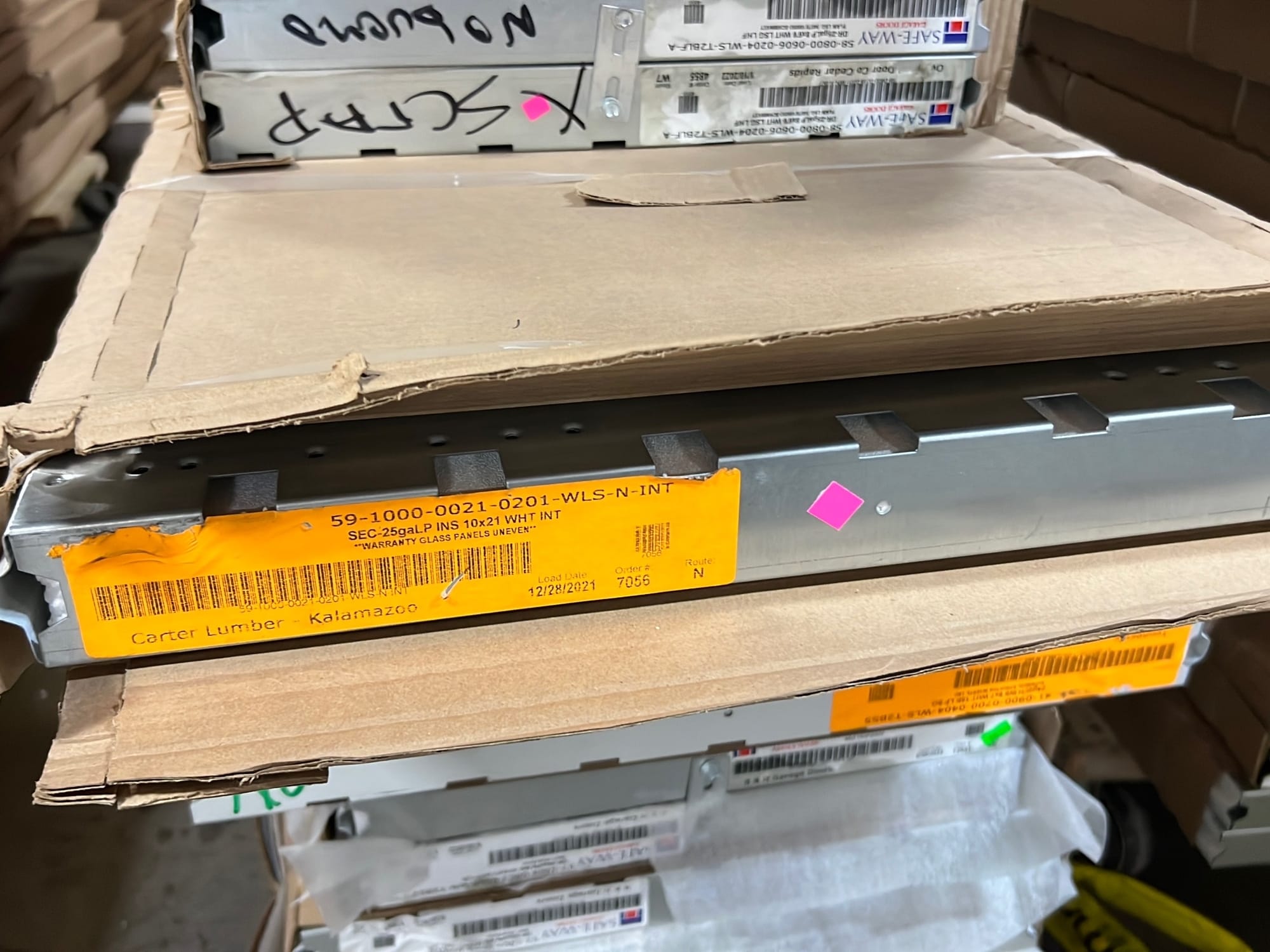 21 Garage Door Panels - (2) 9’x24” White, (4) 8’x21” White, (4) 8’x21” White, (2) 9’x21” White, (4) 8’x21” White, (8) 9’x21” White