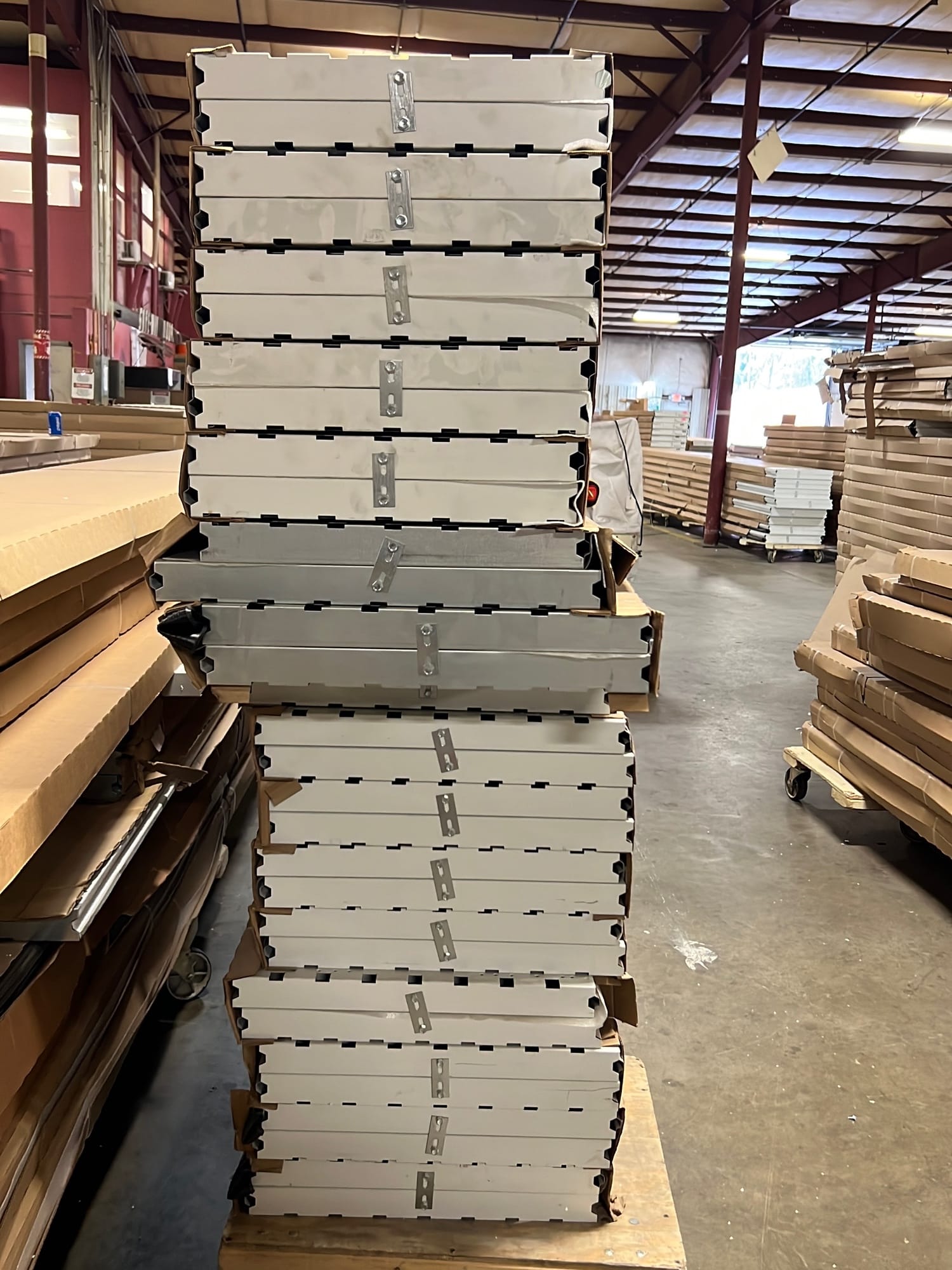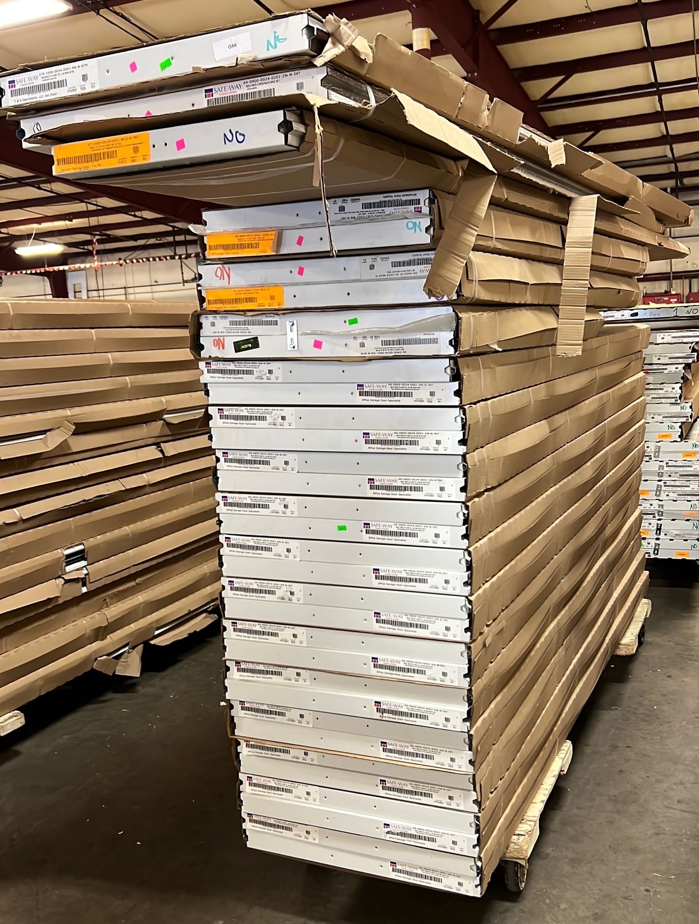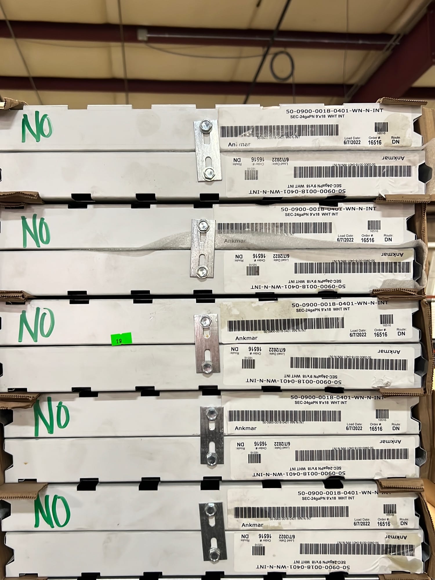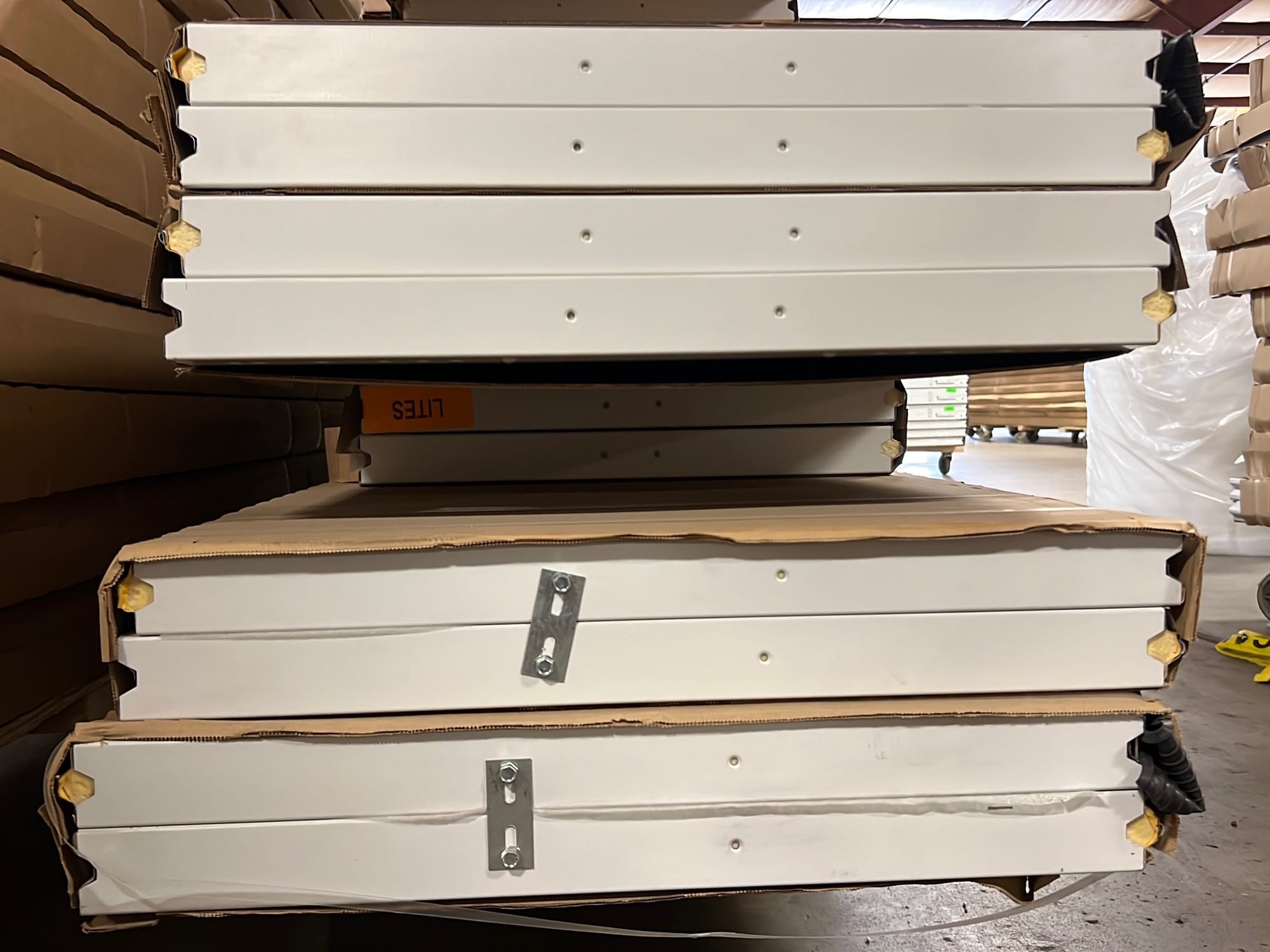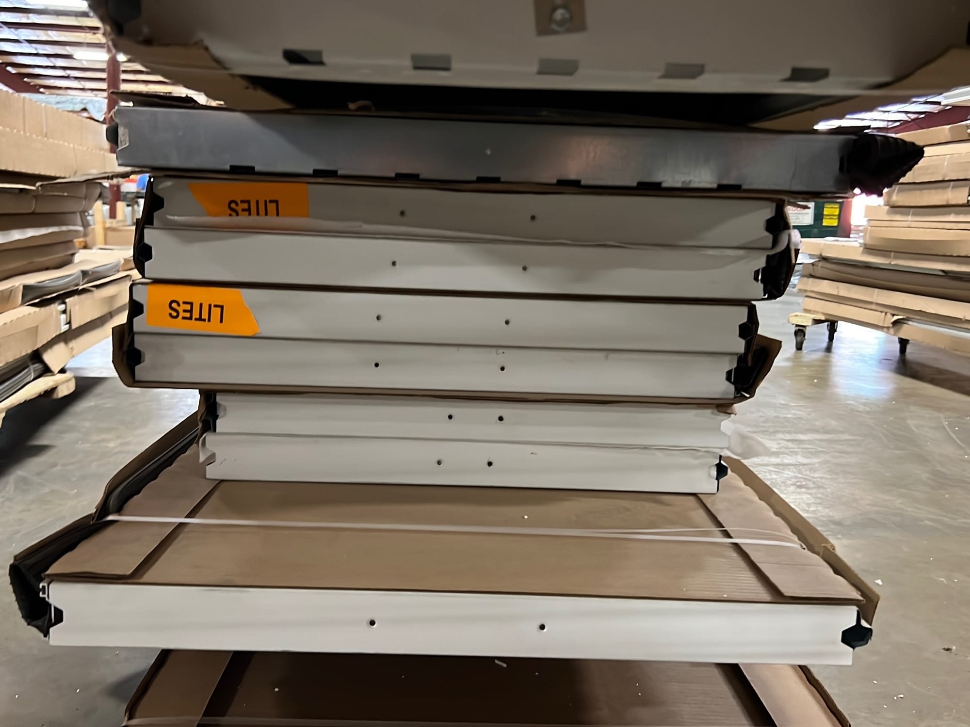 21 Garage Door Panels - (2) 9’x24” White, (4) 8’x21” White, (4) 8’x21” White, (2) 9’x21” White, (4) 8’x21” White, (8) 9’x21” White