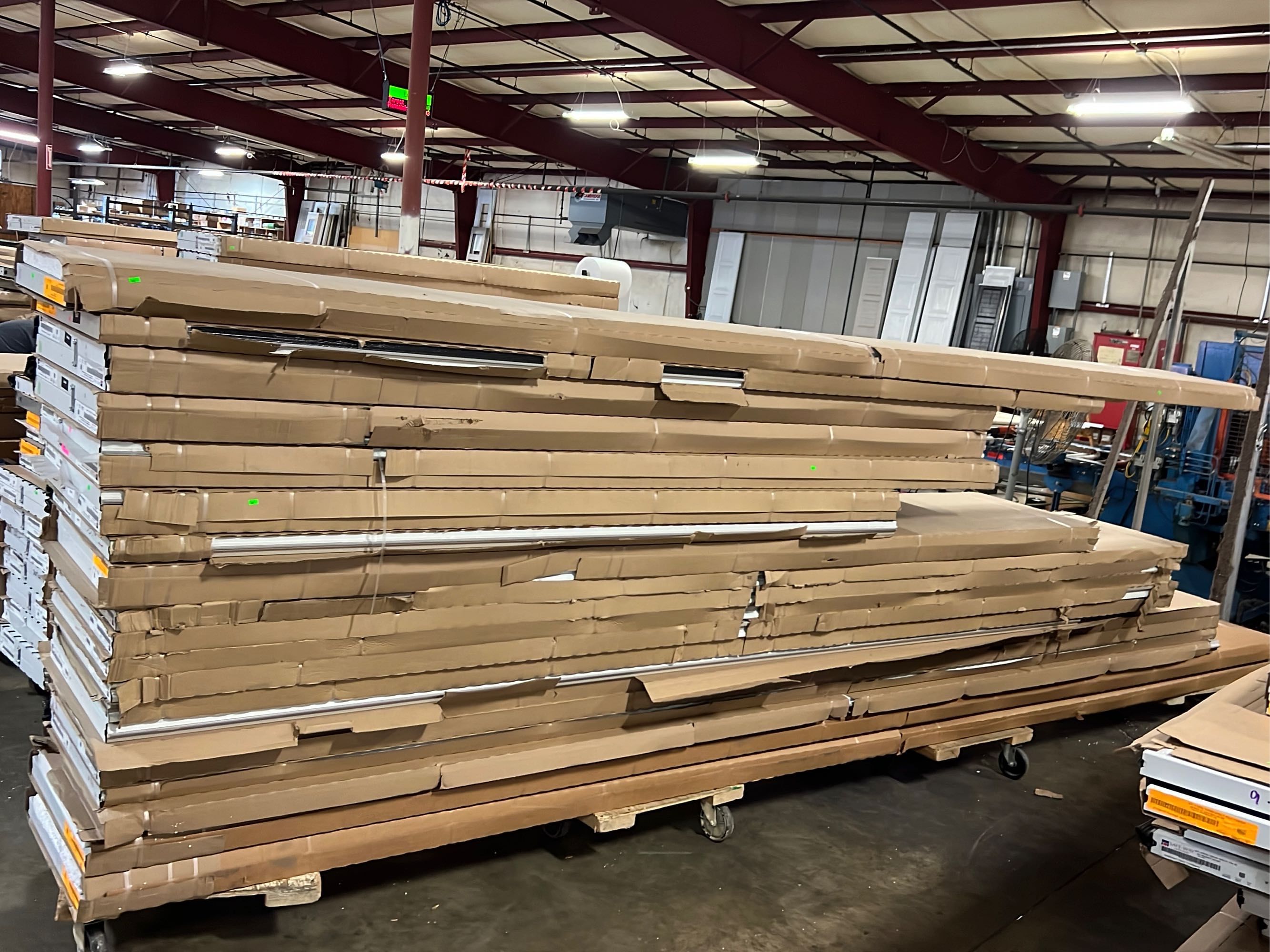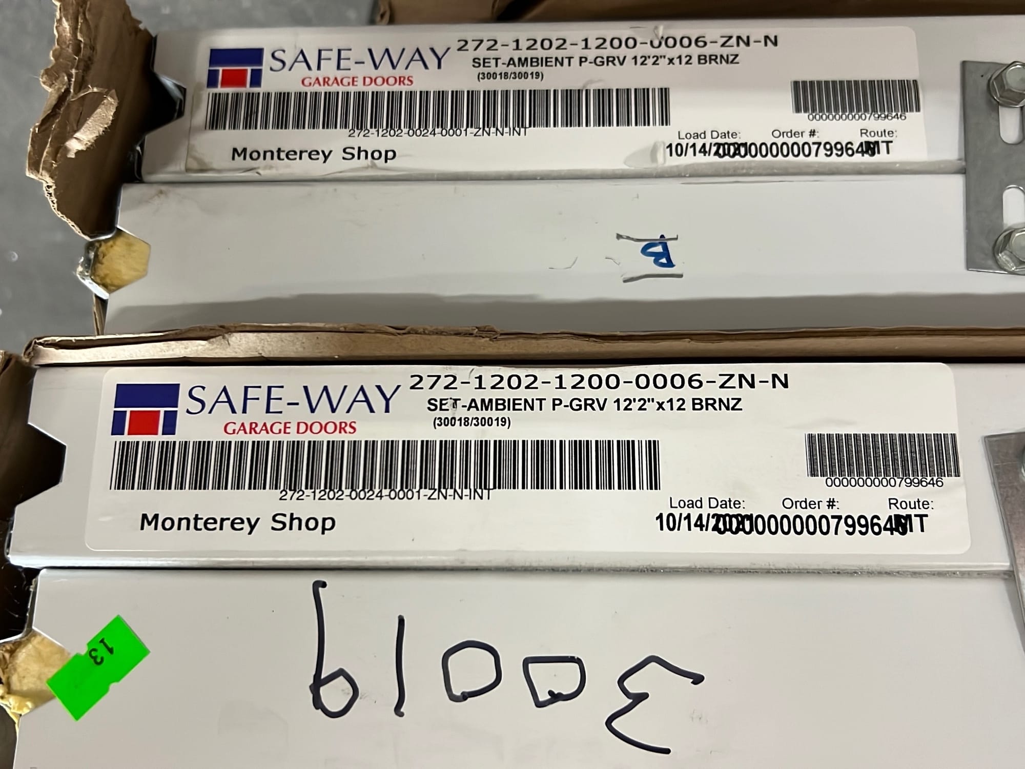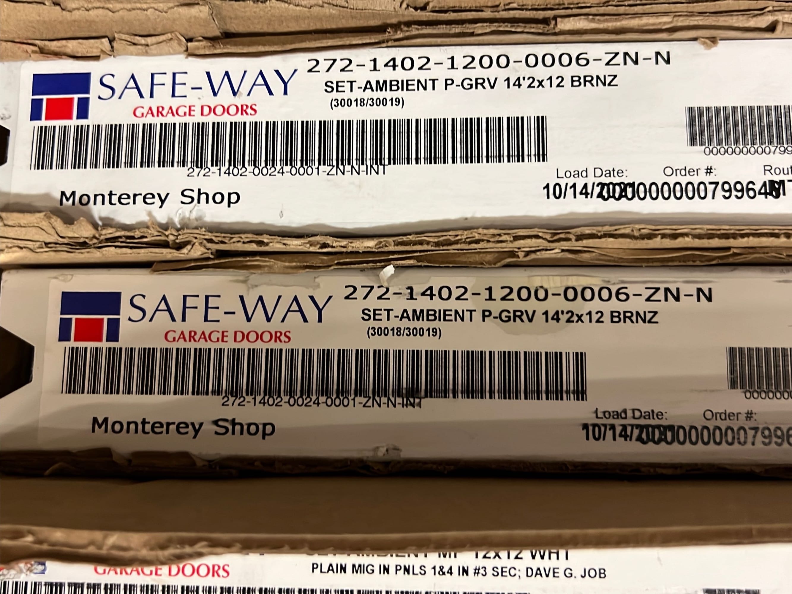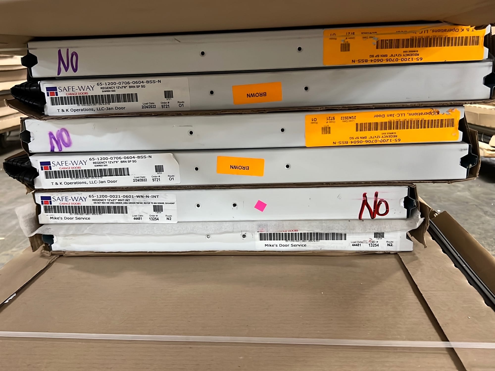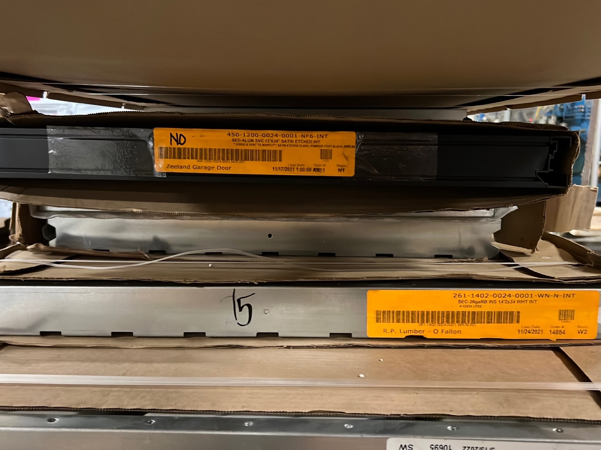 13 Garage Door Panels - (8) 8’x21” Rosewood, (2) 10’x24” Sandtone, (4) 8’2”x24” White, (4) 9’x24” White, (4) 12”x24” Black, (2) 10’x21” White, (4) 12’2”x24 Bronze