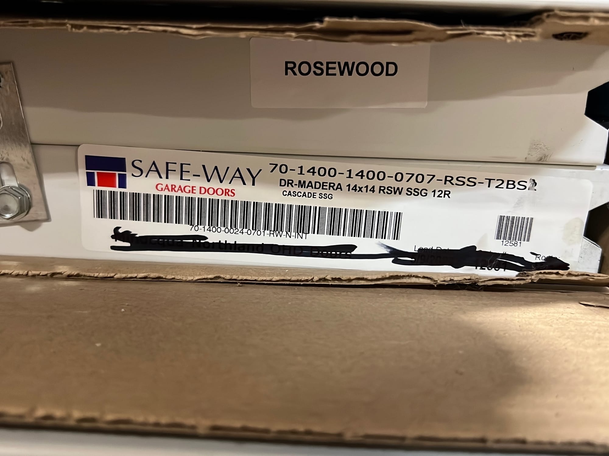 16 Garage Door Panels - (2) 14’2”x24” White, (5) 10’x24” Rosewood, (14) 14’x24” Rosewood, (10) 10’x24” Rosewood