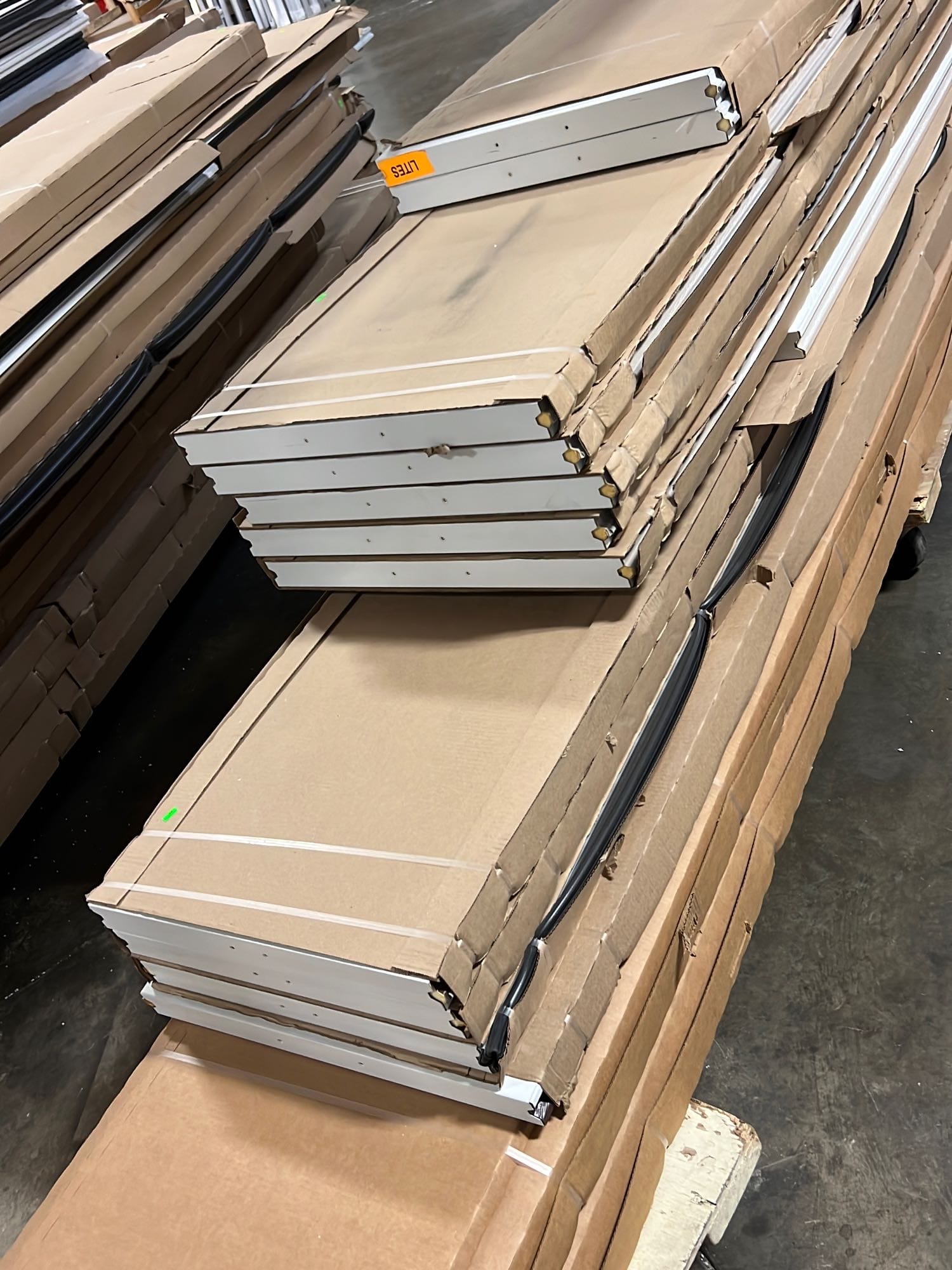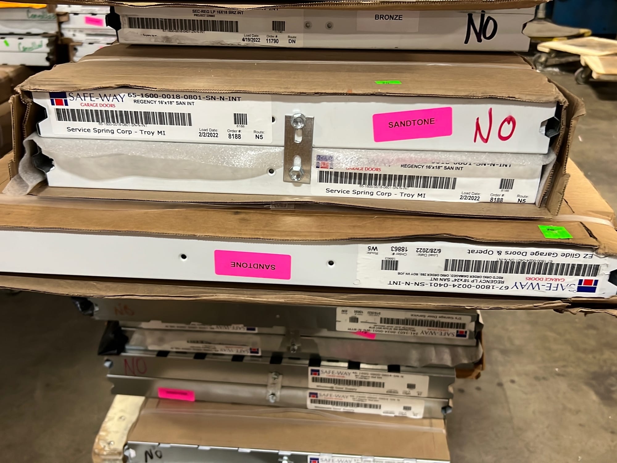 15 Garage Door Panels - (2) 8’x21” White, (4) 8’2”x21”, (2) 10’2”x24” White, (2) 8’x18” Sand tone , (2) 8’x21” Sandtone, (4) 8’x24” Black, (2) 8’x24” White, (4) 9’x24” White, (7) 8’x21” White