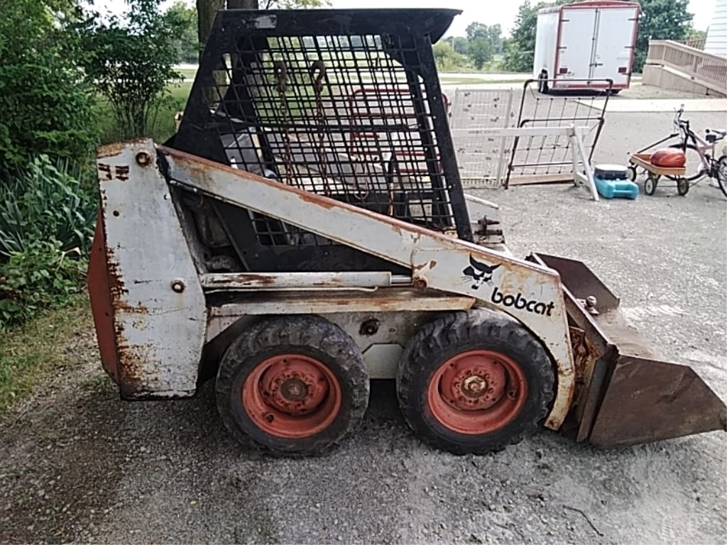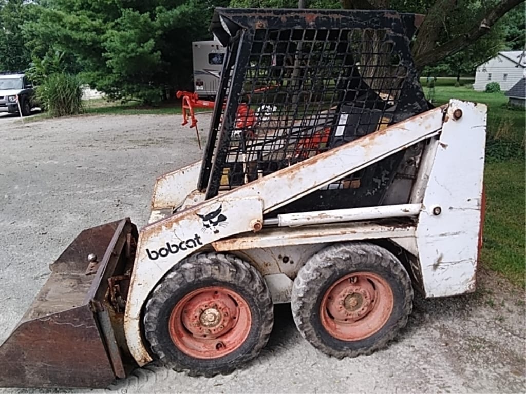 4d Bobcat 530 skidloader with bucket, <2,050 hours, new battery, fuel filter, fuel pump, and carburetor. two cylinder Kohler gas engine, needs new choke cable