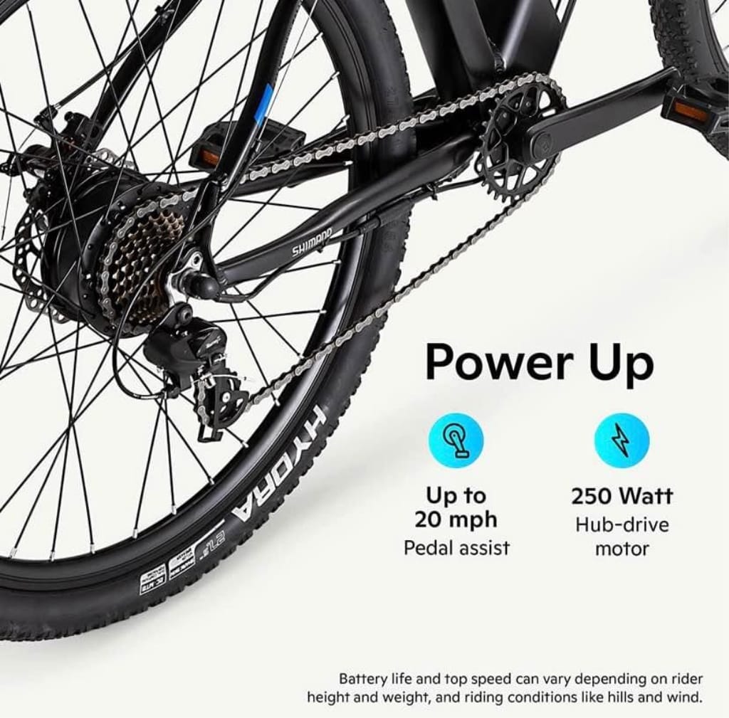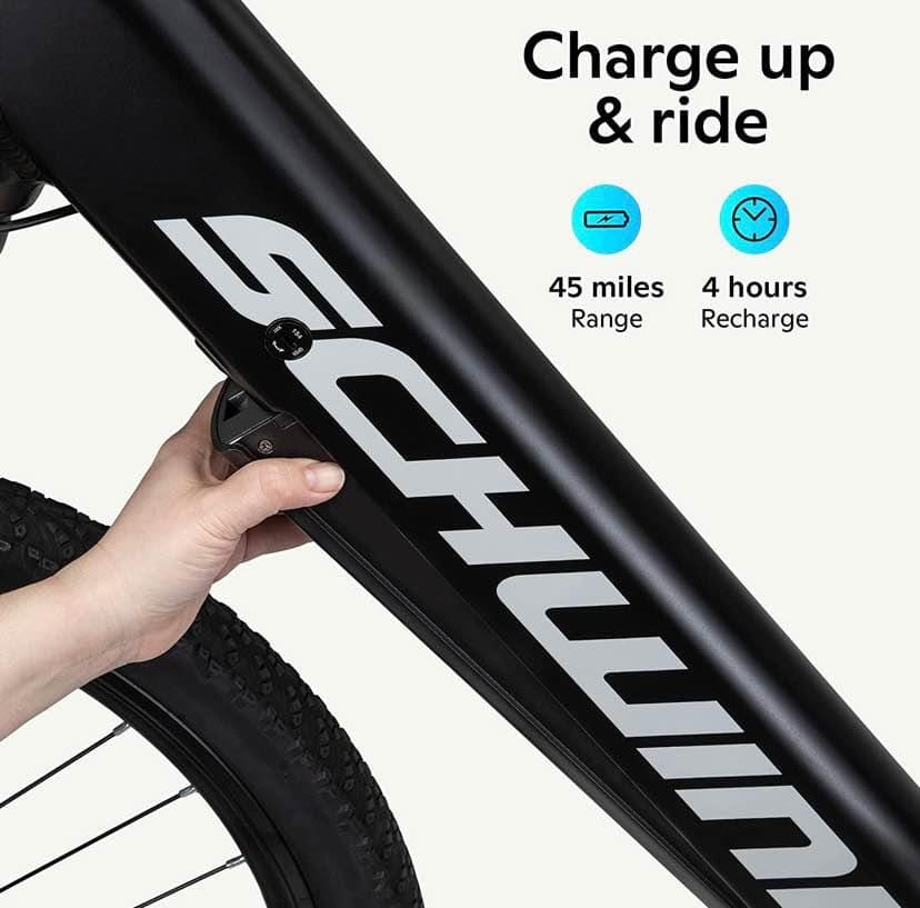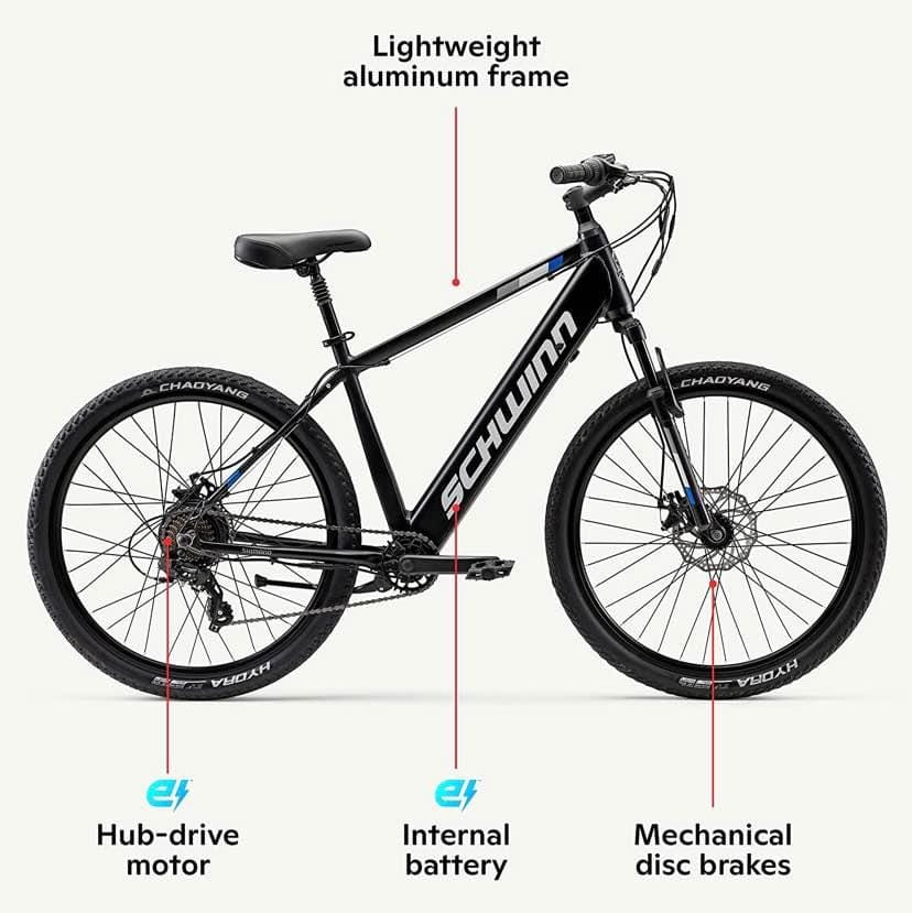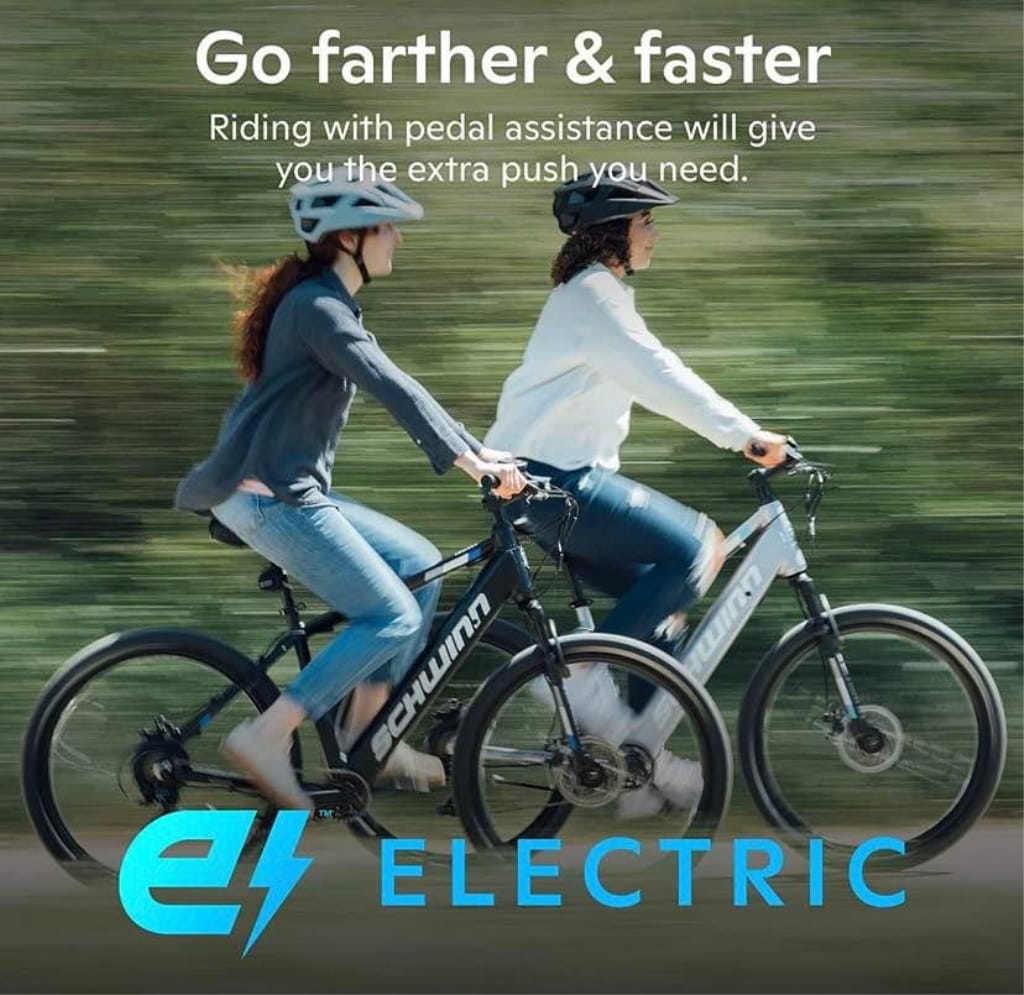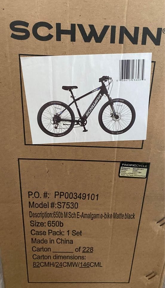 4e NEW in BOX Schwinn Amalgam Adult Electric Bike, 375Wh, 7 Speed, 27.5" Wheels, Hybrid Aluminum dual sport 18.5" bicycle frame is the perfect ebike for rides around your neighborhood or and bike trails. 27.5" wheel frame fit riders 5’4" to 6’2" inches