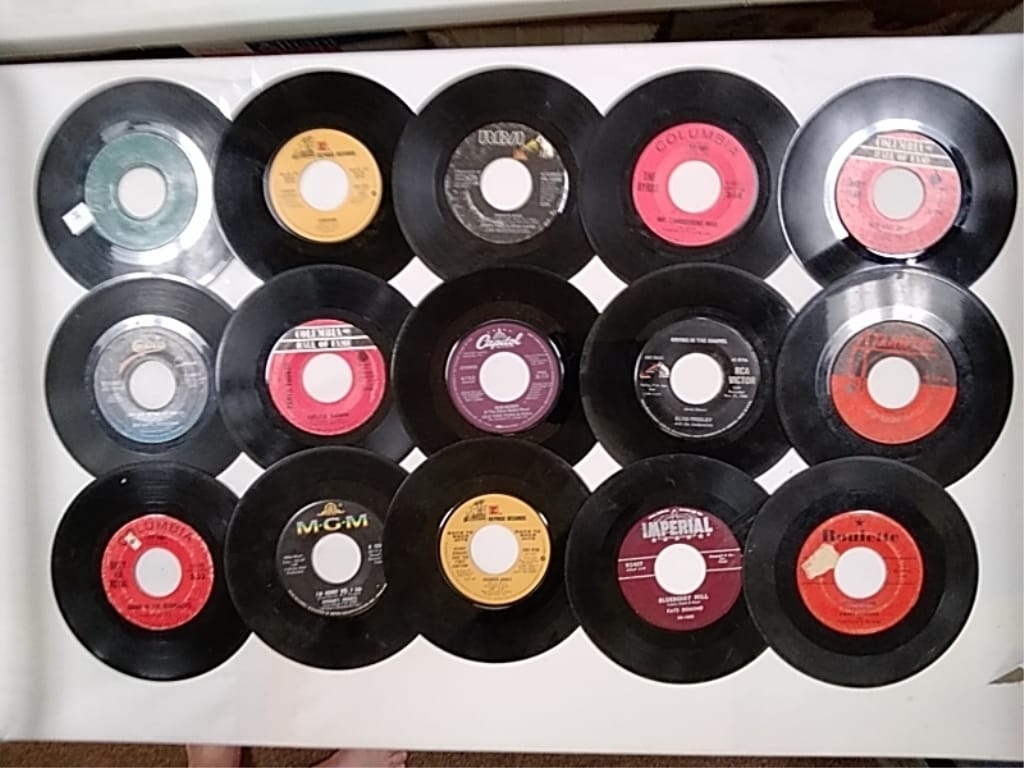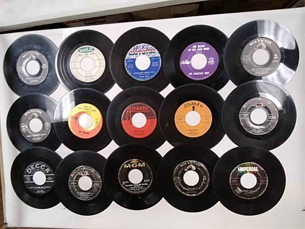 32 Vintage 45 records lot of 15, including Herman's Hermit, Elvis Presley, Michael Jackson, Hall & Oates,Fats Domino, Bob Seger, Jimmy Dean, Gordon Lightfoot, Bob Dylan, Kenny Roger's, the Byrds, Tanya Tucker