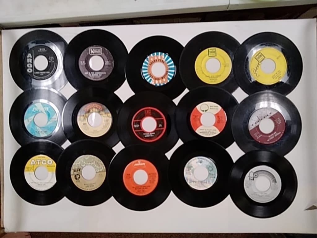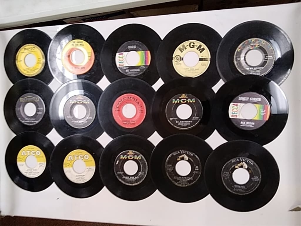 35 Vintage 45 records lot of 15, including Pat Boone Frank Sinatra, Ricky Nelson, Bobby darin, Tom jones, Simon and Garfunkel, the Bee Gees,