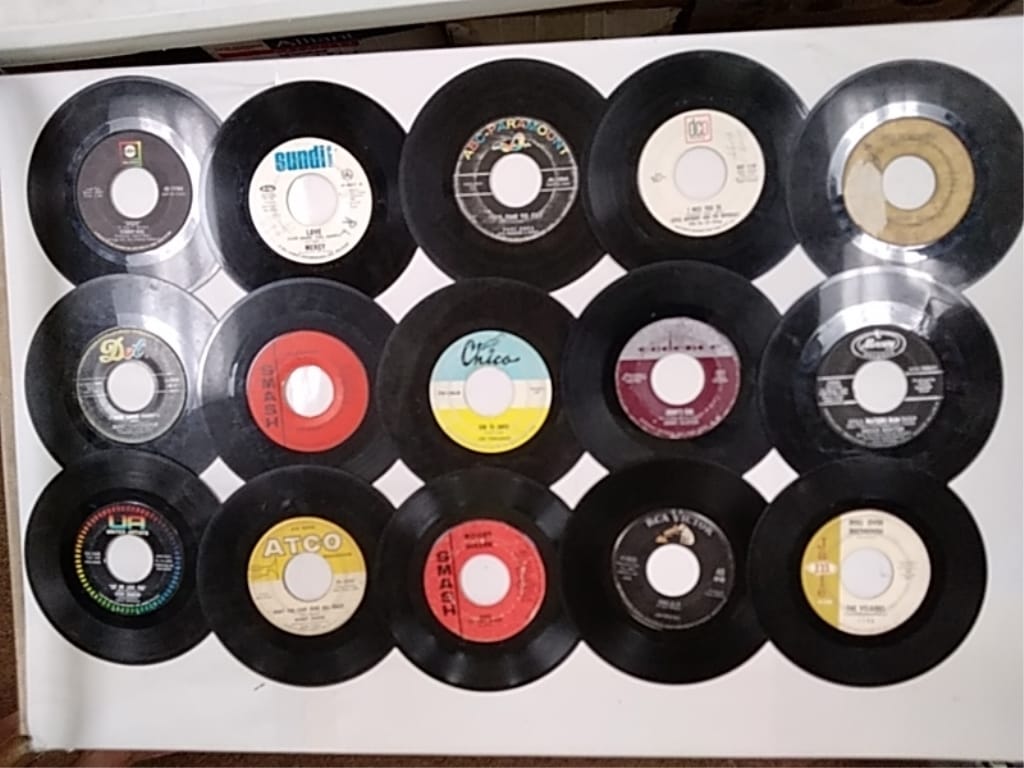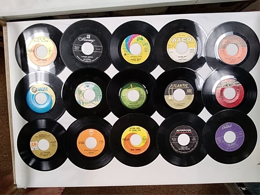 34 Vintage 45 records lot of 15, including Bobby Darin, CW McCall, George Harrison Otis redding, Boston, Buck owens, George Jones