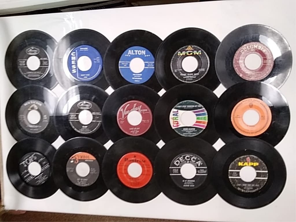 39 Vintage 45 records lot of 15, including Tony orlando, the beach boys, Bill anderson, Connie francis, Paul Anka, The Mamas and papas, Conway Twitty, Johnny Cash, Ricky nelson, Bobby Darin, Elvis Presley