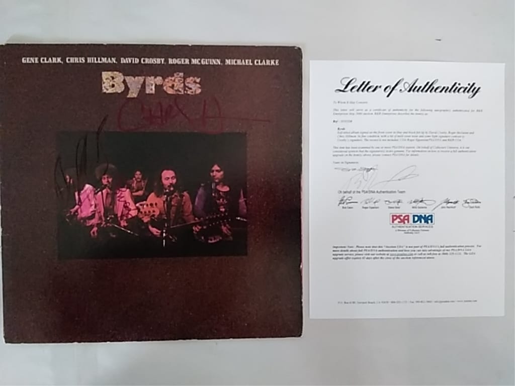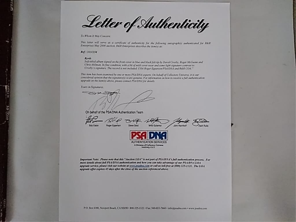45 Byrds self-titled album (cover only) signed on front cover by David Crosby, Roger McGuinn and Chris Hillman with letter of authenticity.