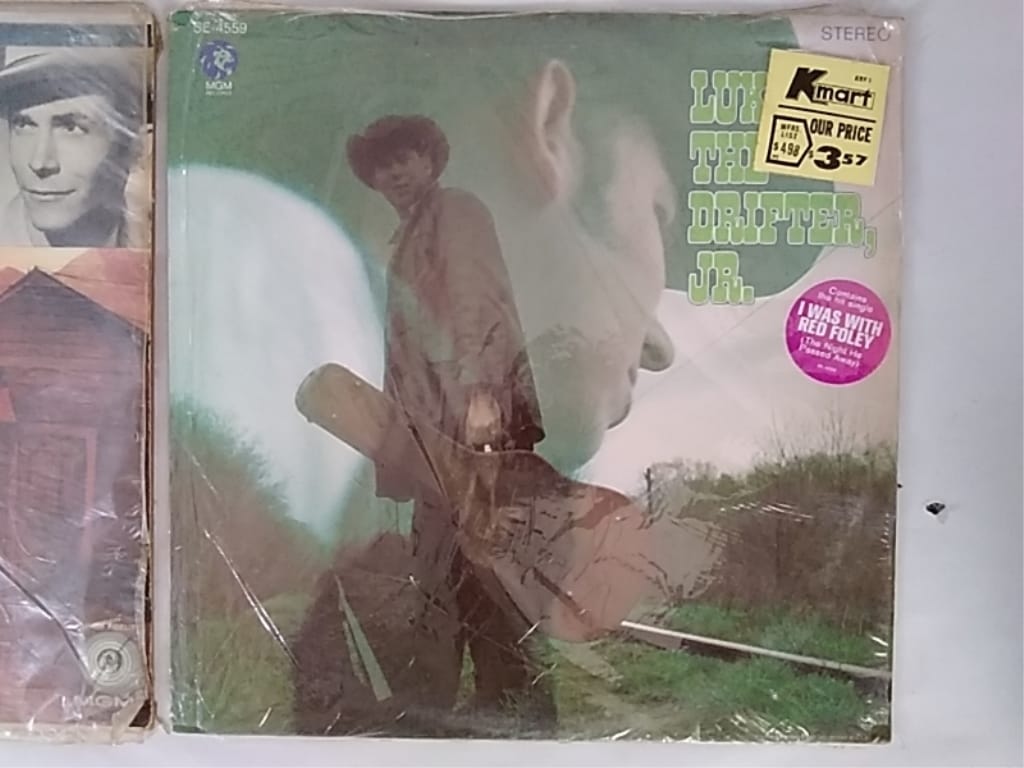 49 Assorted record albums , Hank Williams as Luke The Drifter Hank Williams Jr as Luke The Drifter Jr you're on speaker with me and Dawn