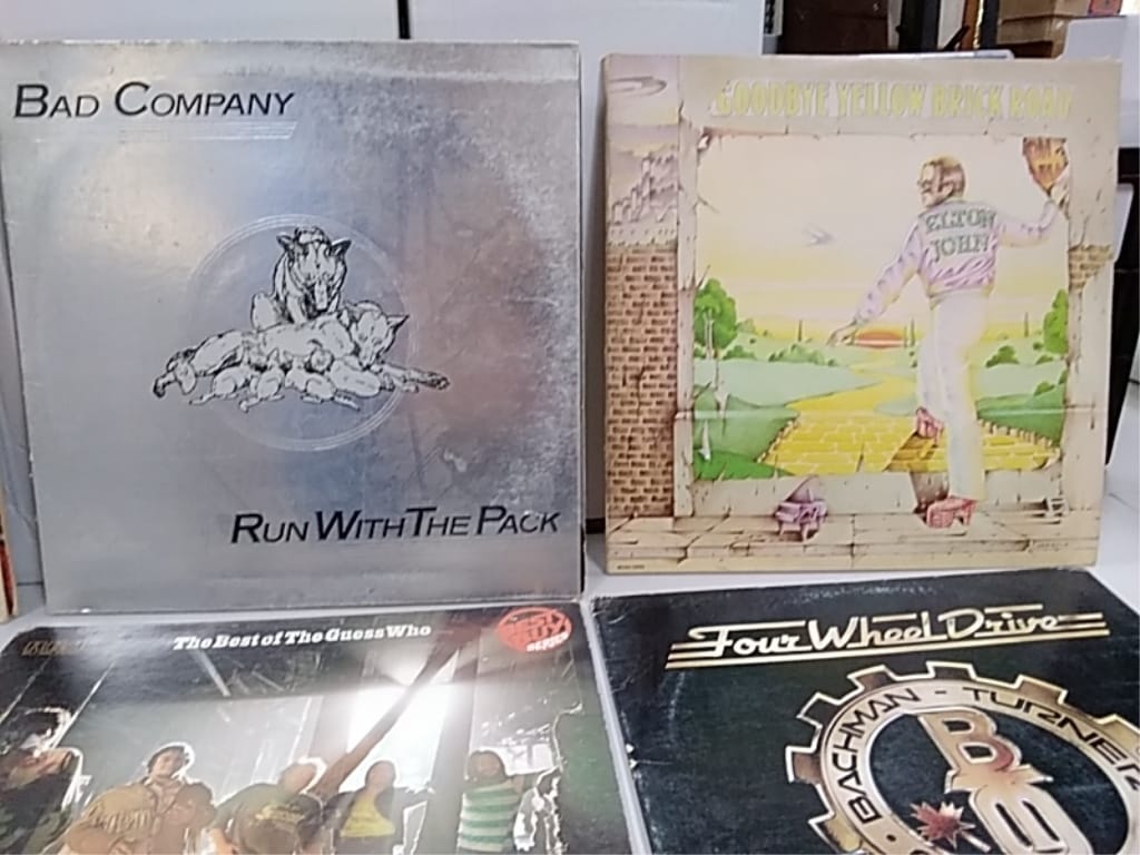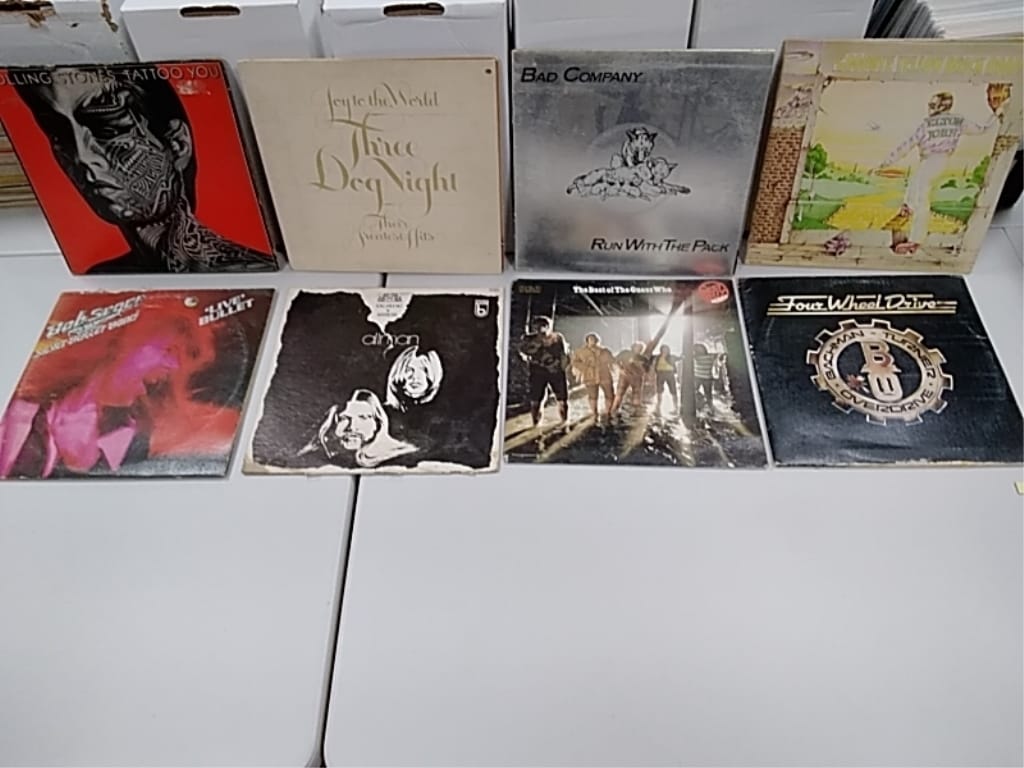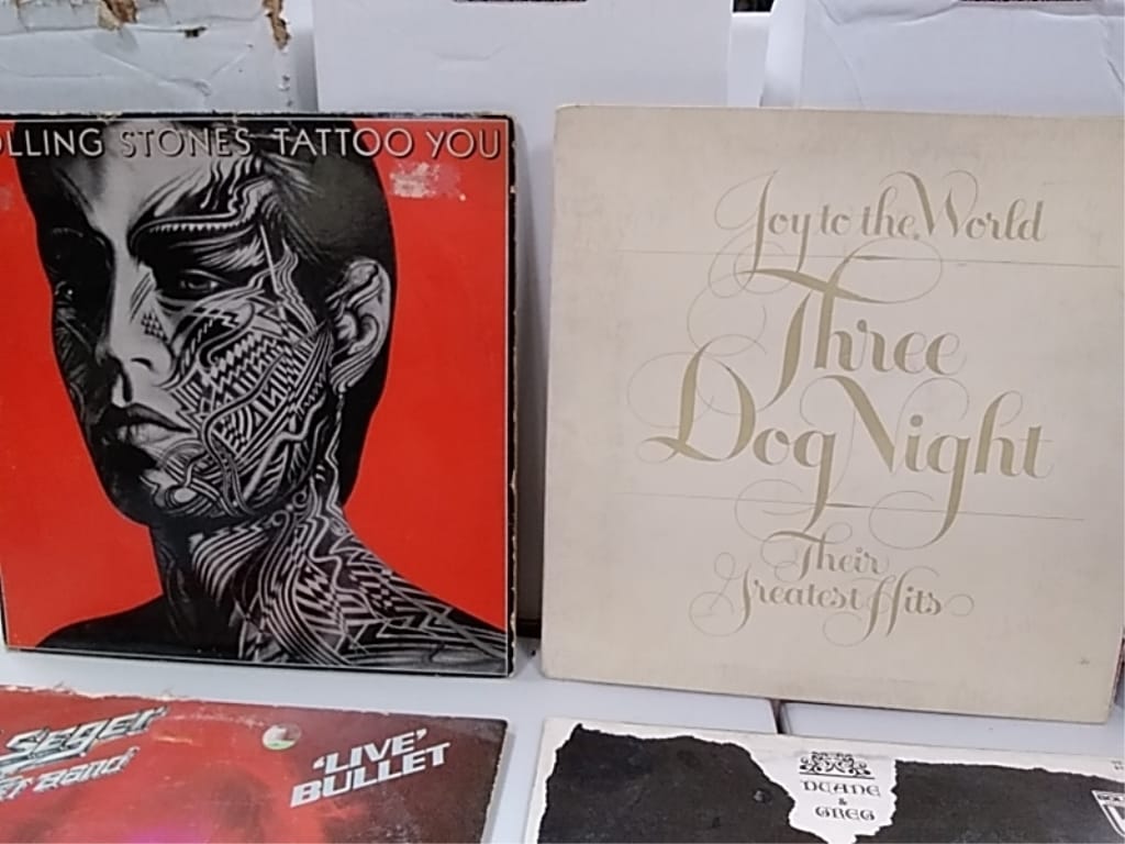 52 8 assorted vinyl albums, rolling stones, Three Dog Night, Bob Seger, Bad Company, Elton John, The Guess Who, Bachman-Turner Overdrive, Etc.