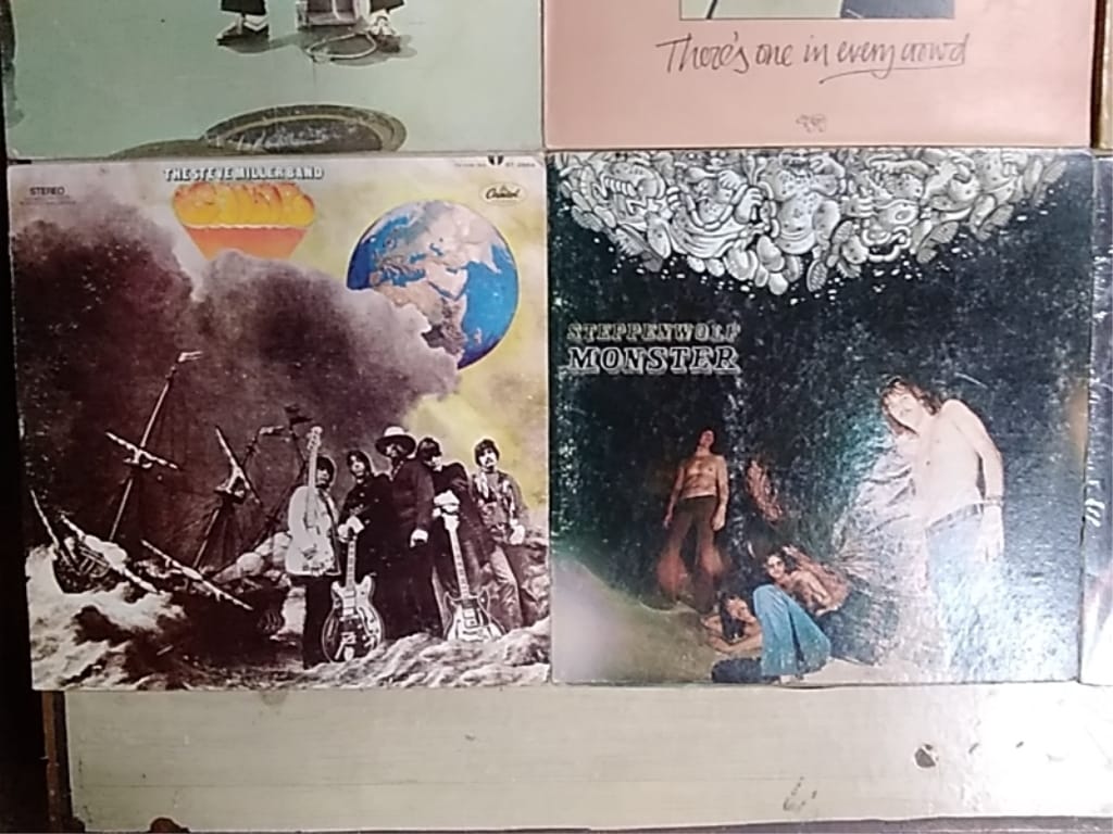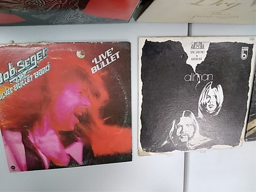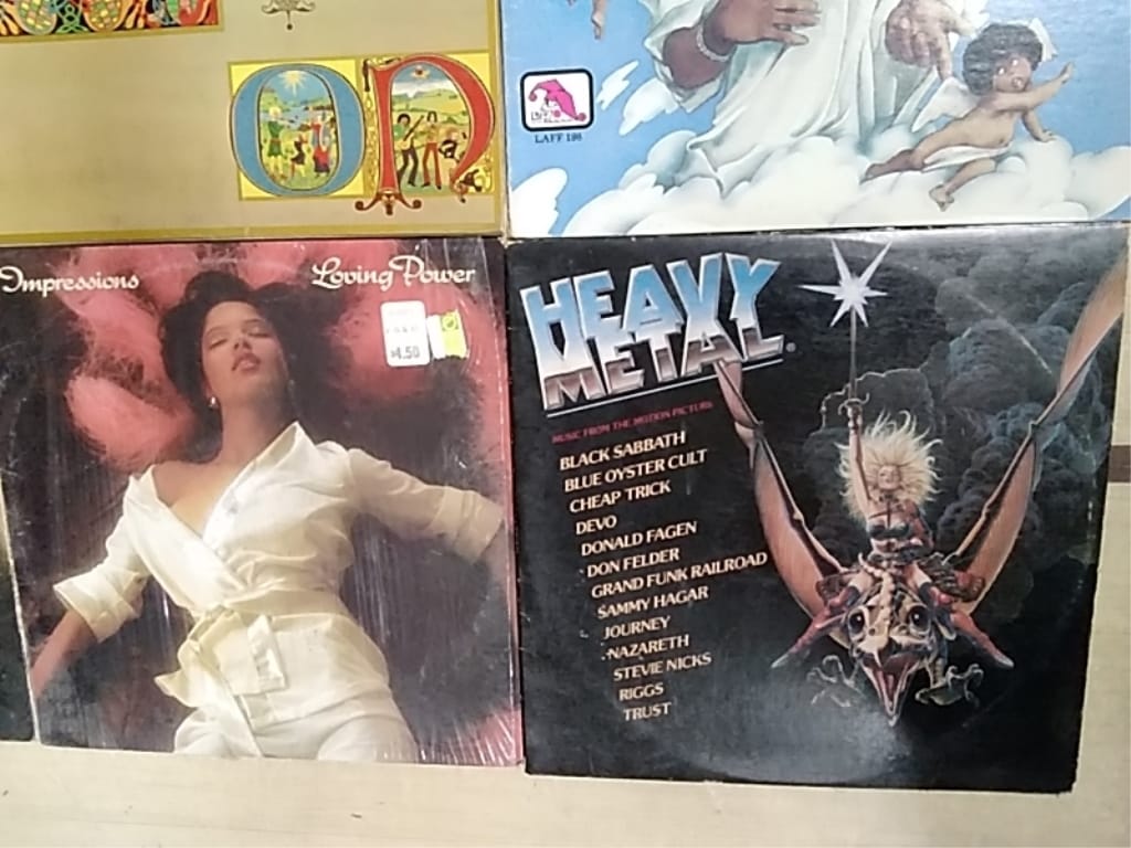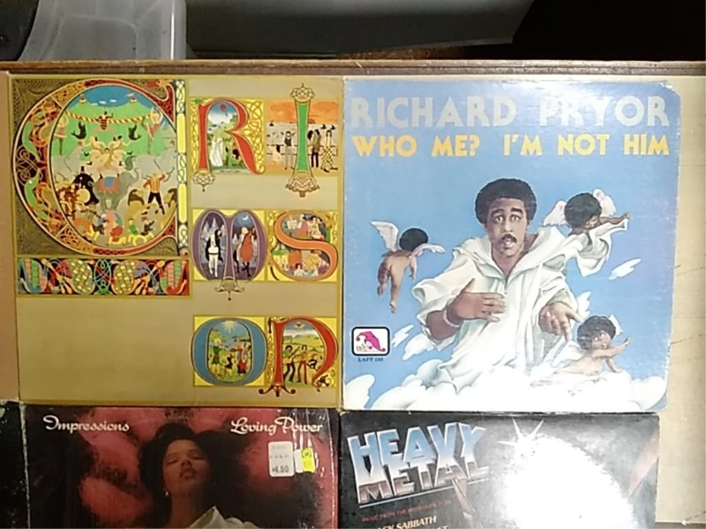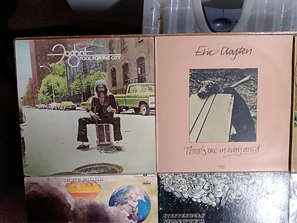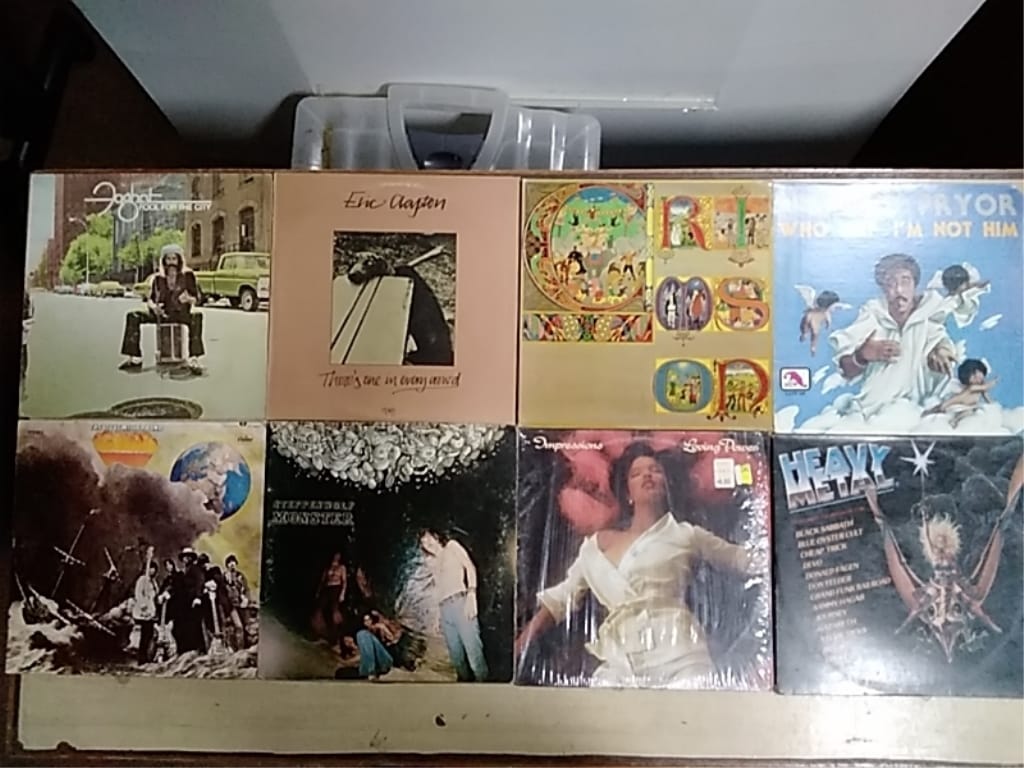 56 8 assorted vinyl albums, foghat, Eric Clapton, crimson, Richard Pryor, Steve Miller band, Steppenwolf, impressions, heavy metal, Etc
