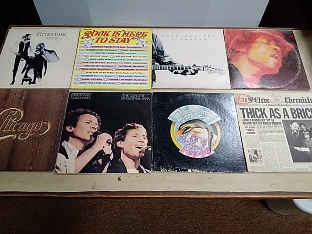 53 8 assorted vinyl albums, Fleetwood Mac, Eric clapton, chicago, Simon and Garfunkel, Jethro Tull, Etc