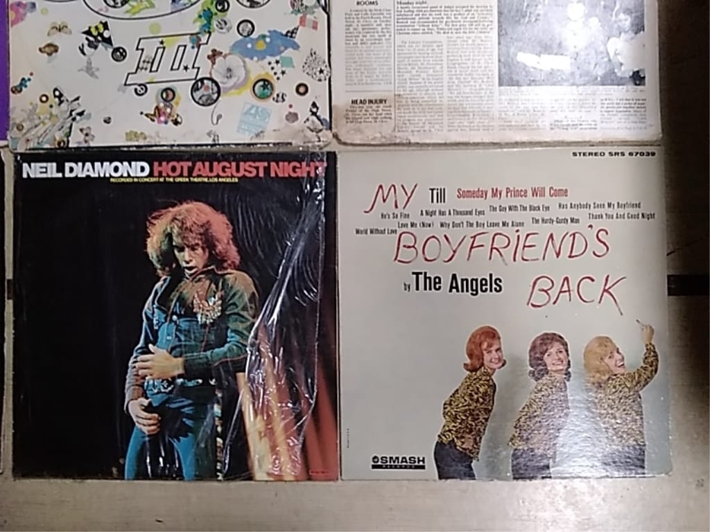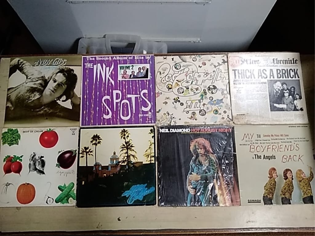 55 8 assorted vinyl albums, Andy gibb, the ink spots, LED zeppelin, Jethro tull, cream, eagles, Neil Diamond, the angels, Etc