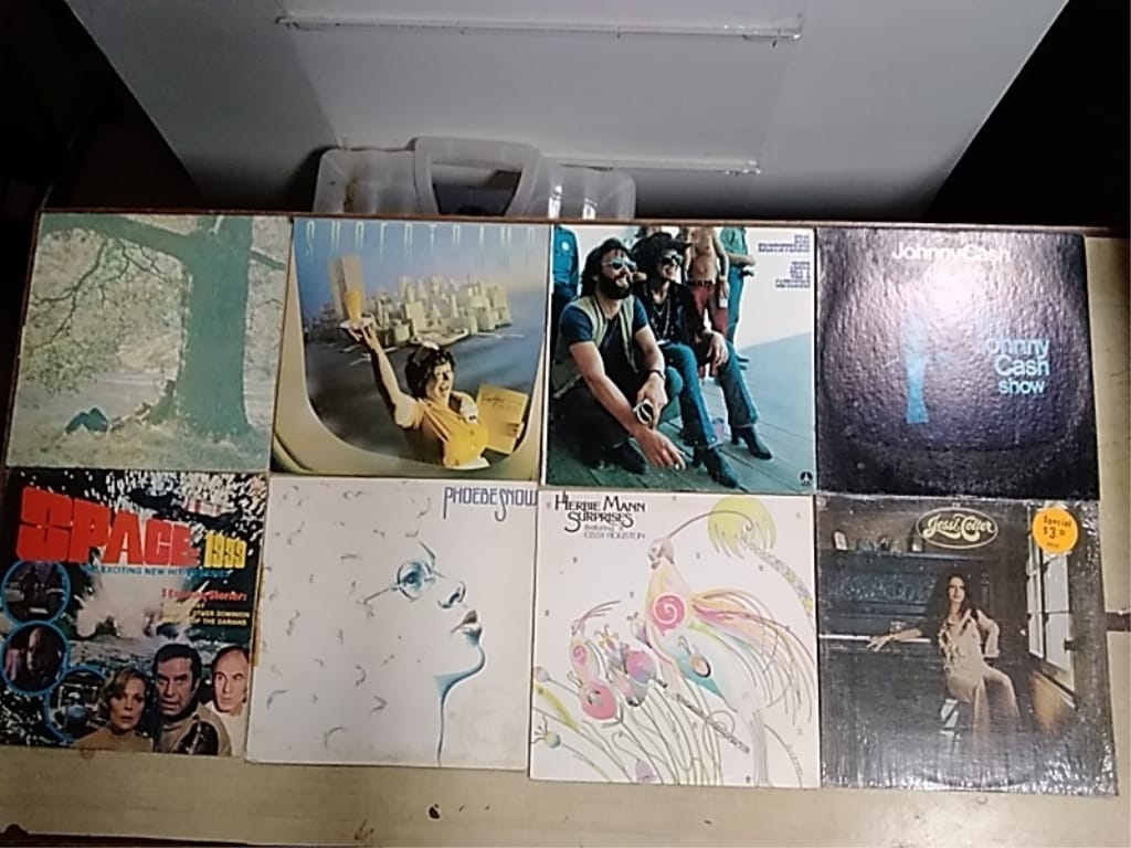58 8 assorted vinyl albums, Supertramp, Kris kristofferson, Johnny cash, space 1999 movie, Phoebe snow, Herbie Mann, Jessie colter, Etc