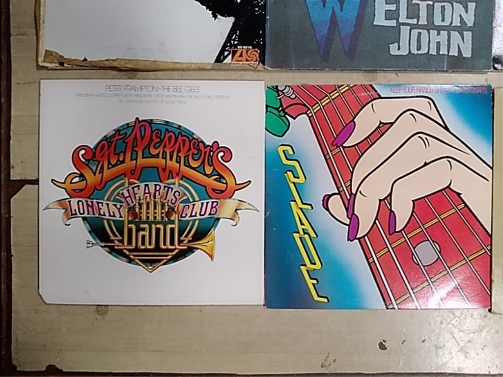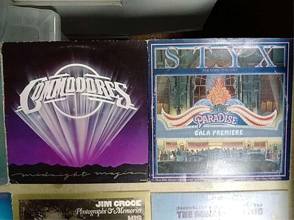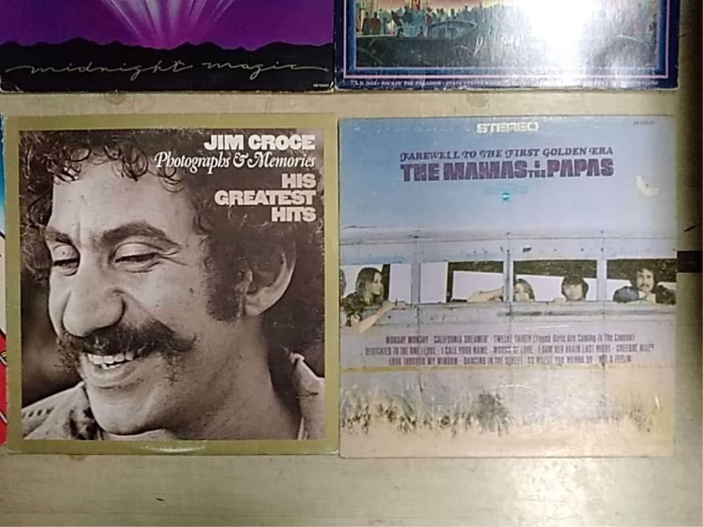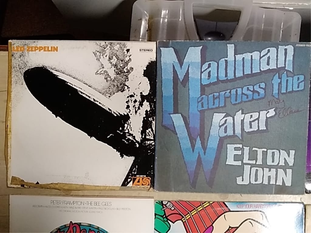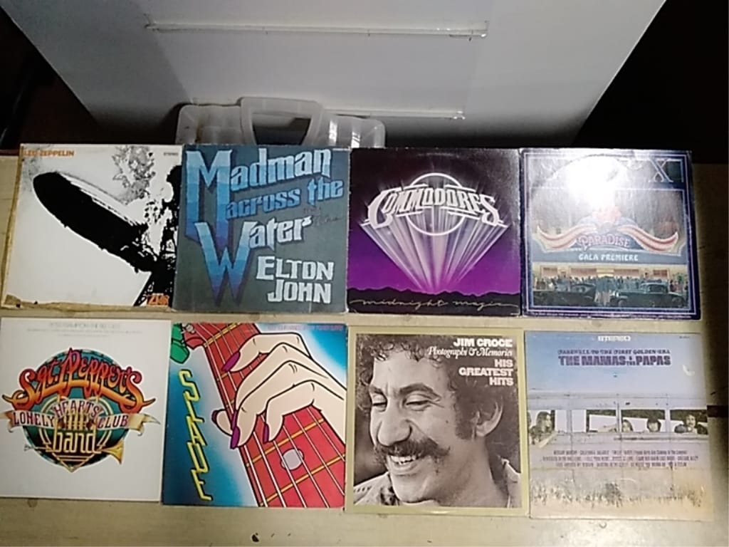 59 8 assorted vinyl albums, Led Zeppelin, Elton john, commodores, sticks, Slade, Jim croce, The Mamas & the papas, Etc