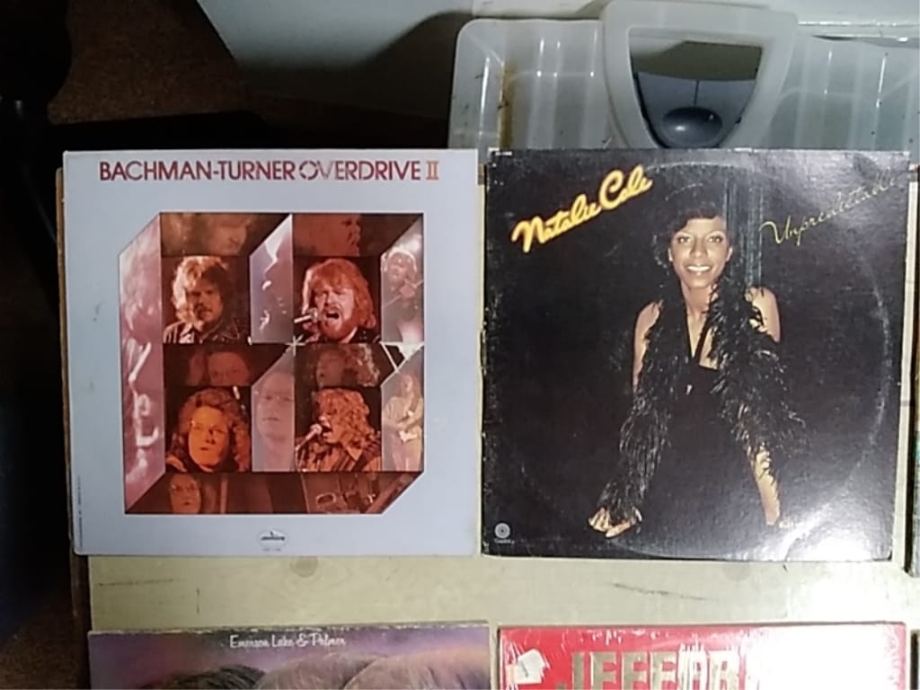 63 8 assorted vinyl albums, Bachman-Turner Overdrive, Natalie cole, Emerson Lake and palmer, Jefferson Starship, Roberta Flack Etc