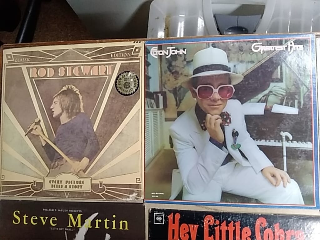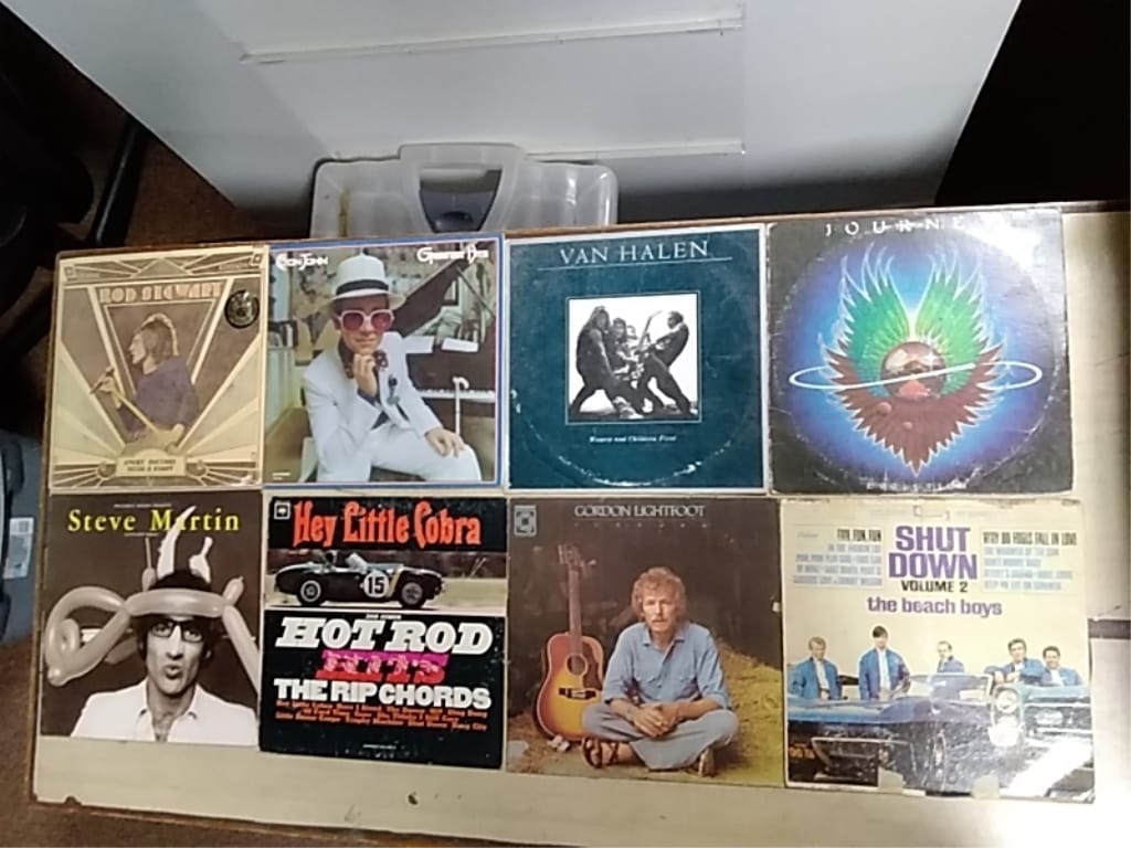 66 8 assorted vinyl albums, Rod stewart, Elton John, van halen, Journey, Steve Martin, Gordon lightfoot, the beach boys, Etc
