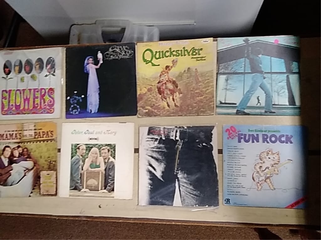 68 8 assorted vinyl albums, the rolling stones, Stevie Nicks, The Mamas & the papas, Peter Paul and Mary, Quicksilver, Billy Joel, Etc