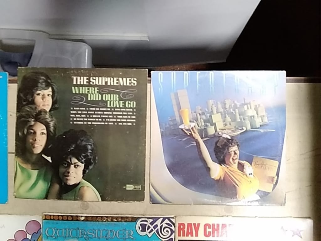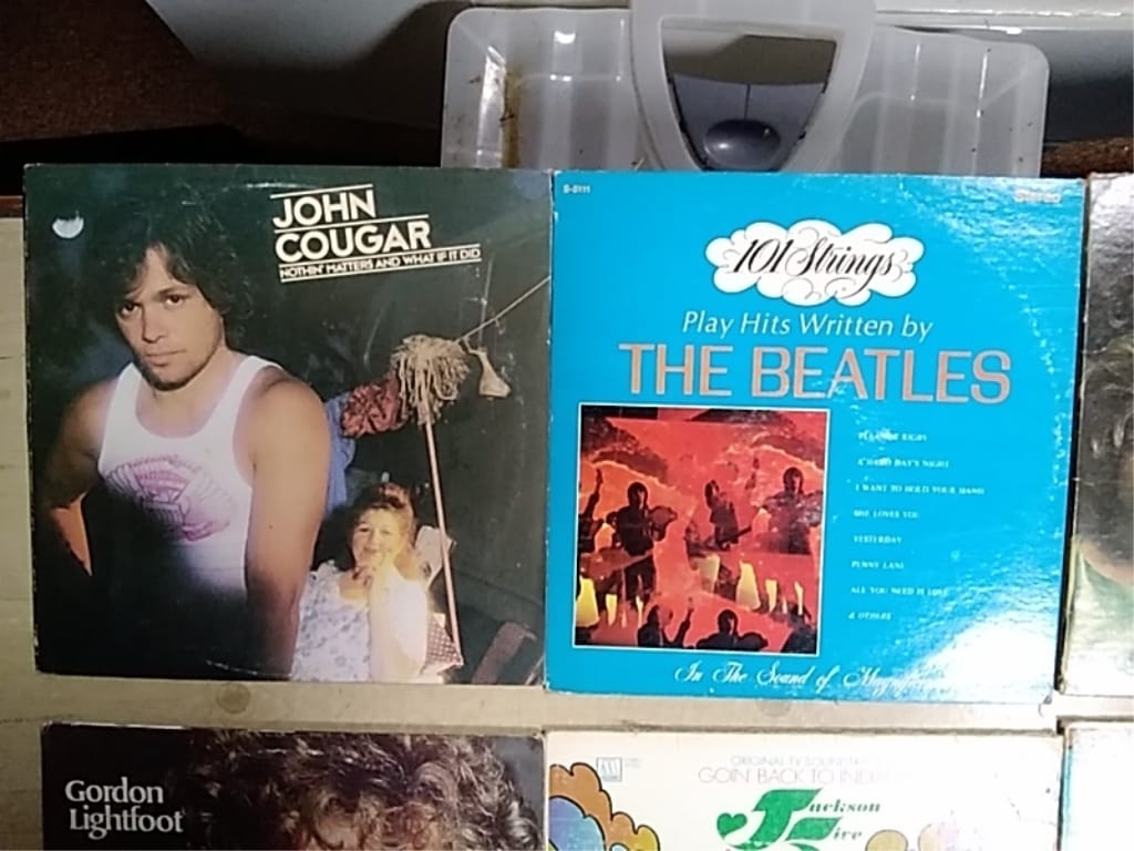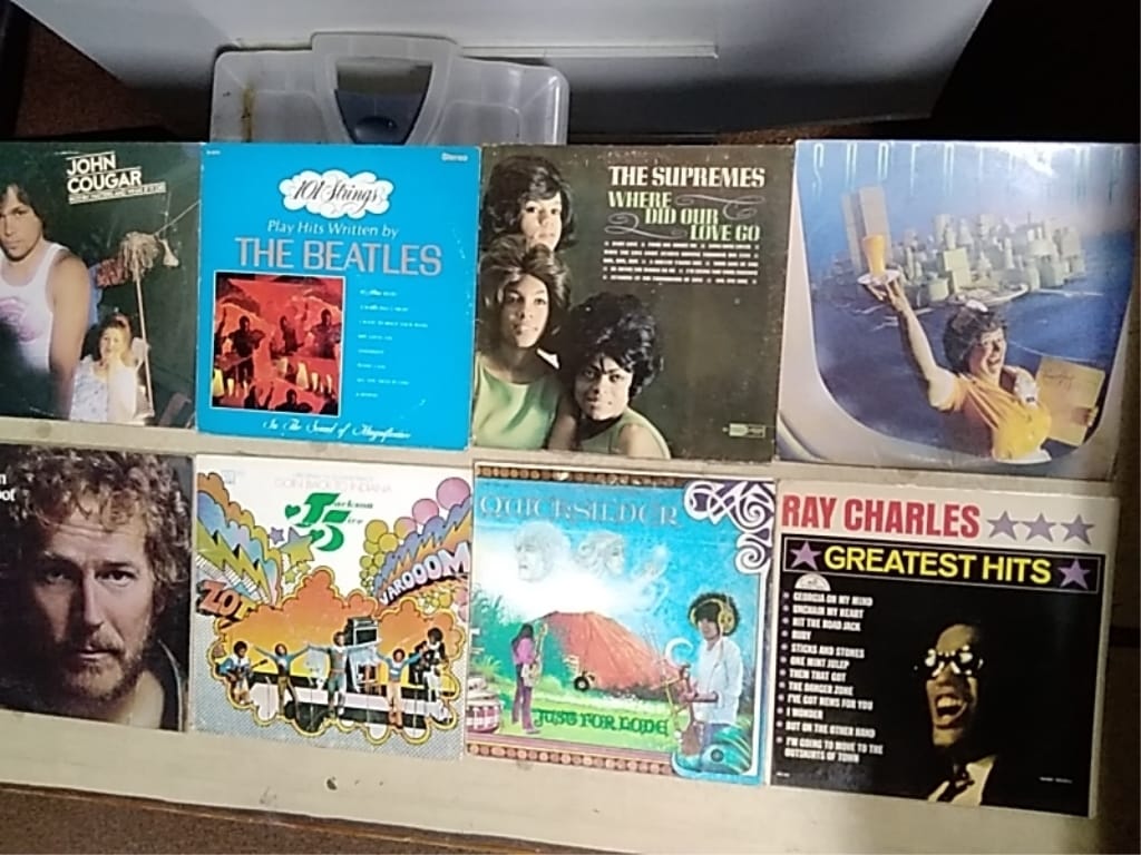 70 8 assorted vinyl albums, John cougar, The Beatles, the supremes, supertramp, Gordon lightfoot, Jackson 5, Quicksilver, Ray charles, Etc
