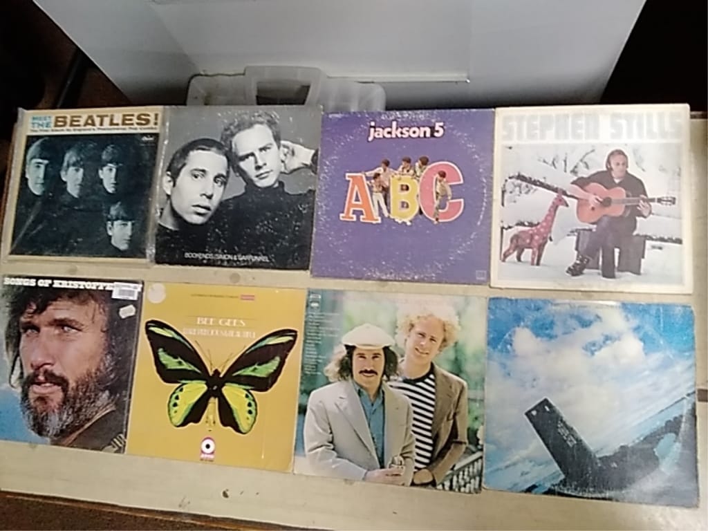 71 8 assorted vinyl albums, the beatles, Simon and Garfunkel, Jackson 5, Stephen Stills, Kris kristofferson, Bee Gee's, Etc