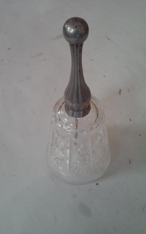 73b Vintage Crystal Bell with silver plate metal handle 6-3/4" tall