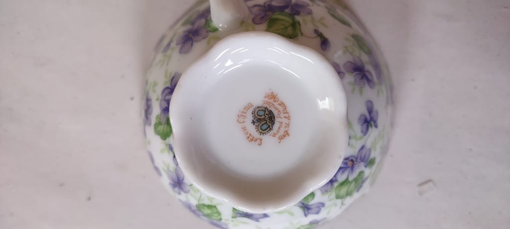 73d Lefton china Violet pattern teacup and Bavaria two-handled plate