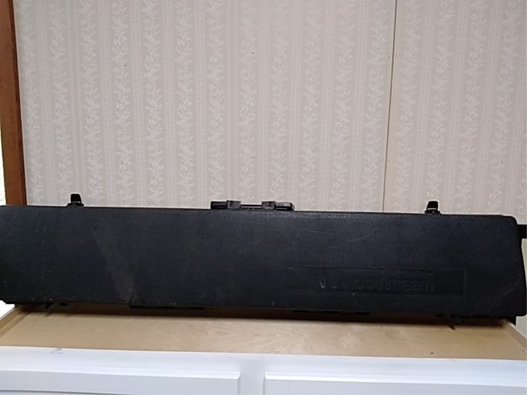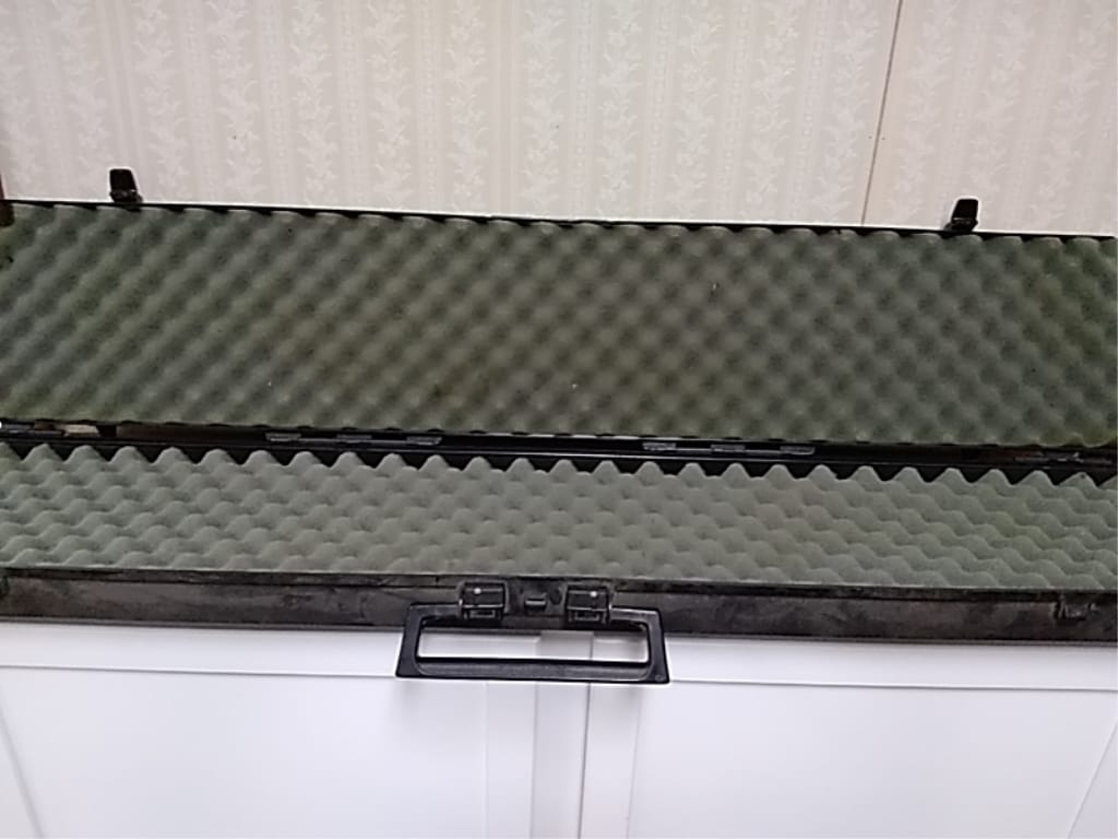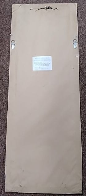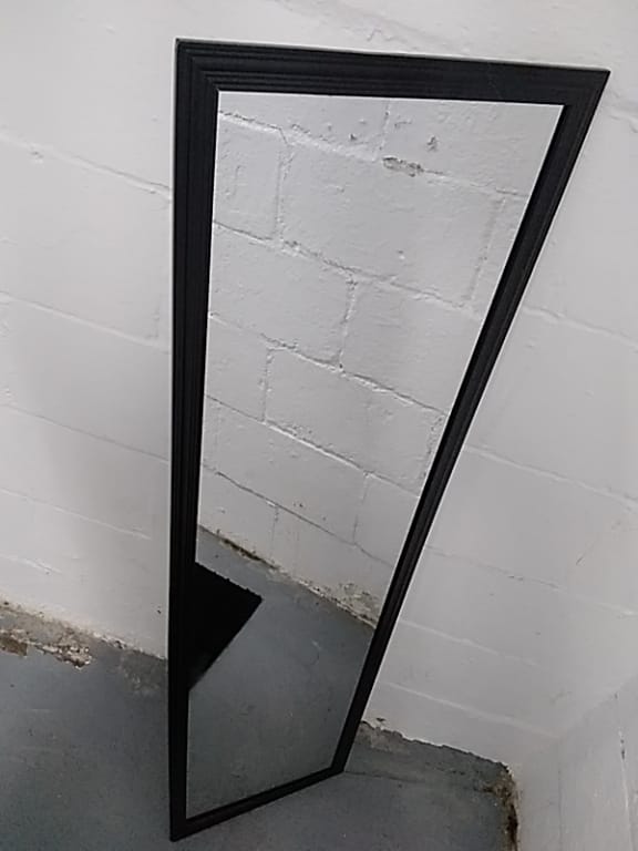 3003 Black framed hanging wall mirror, approximately 14"x50"