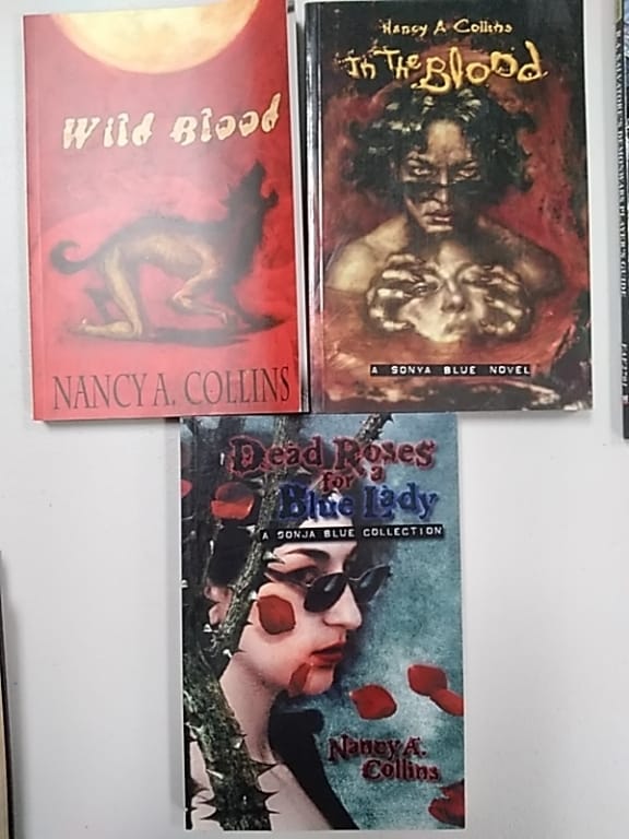 2070 3 Nancy a Collins paperback novels, Wild blood, in the blood: a Sonya blue novel, dead roses for a blue lady colon A Sonia Blue collection