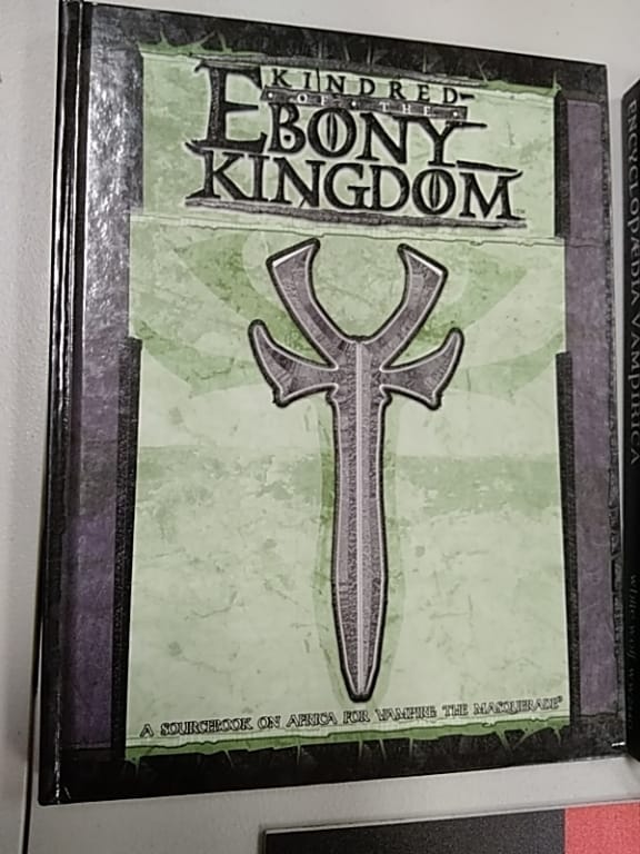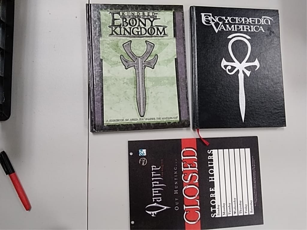 2077 Kindred of the ebony Kingdom a source book on Africa for vampire the Masquerade hardback, encyclopedia vampirica hardback, vampire the queen business store hours sign, role-playing games
