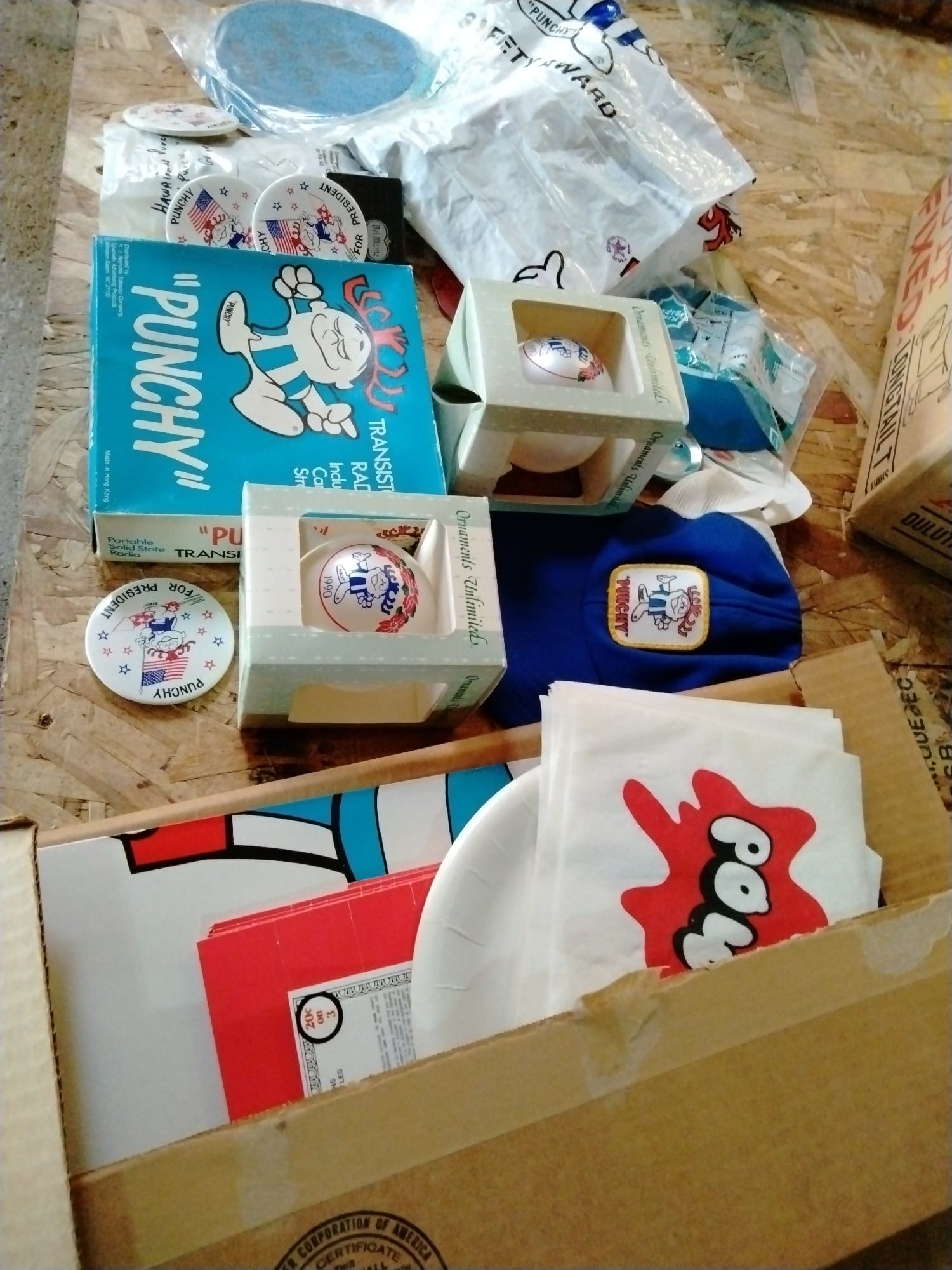 24 Punchy Hawaiian punch collectibles , transitior radio, ornaments, party kits