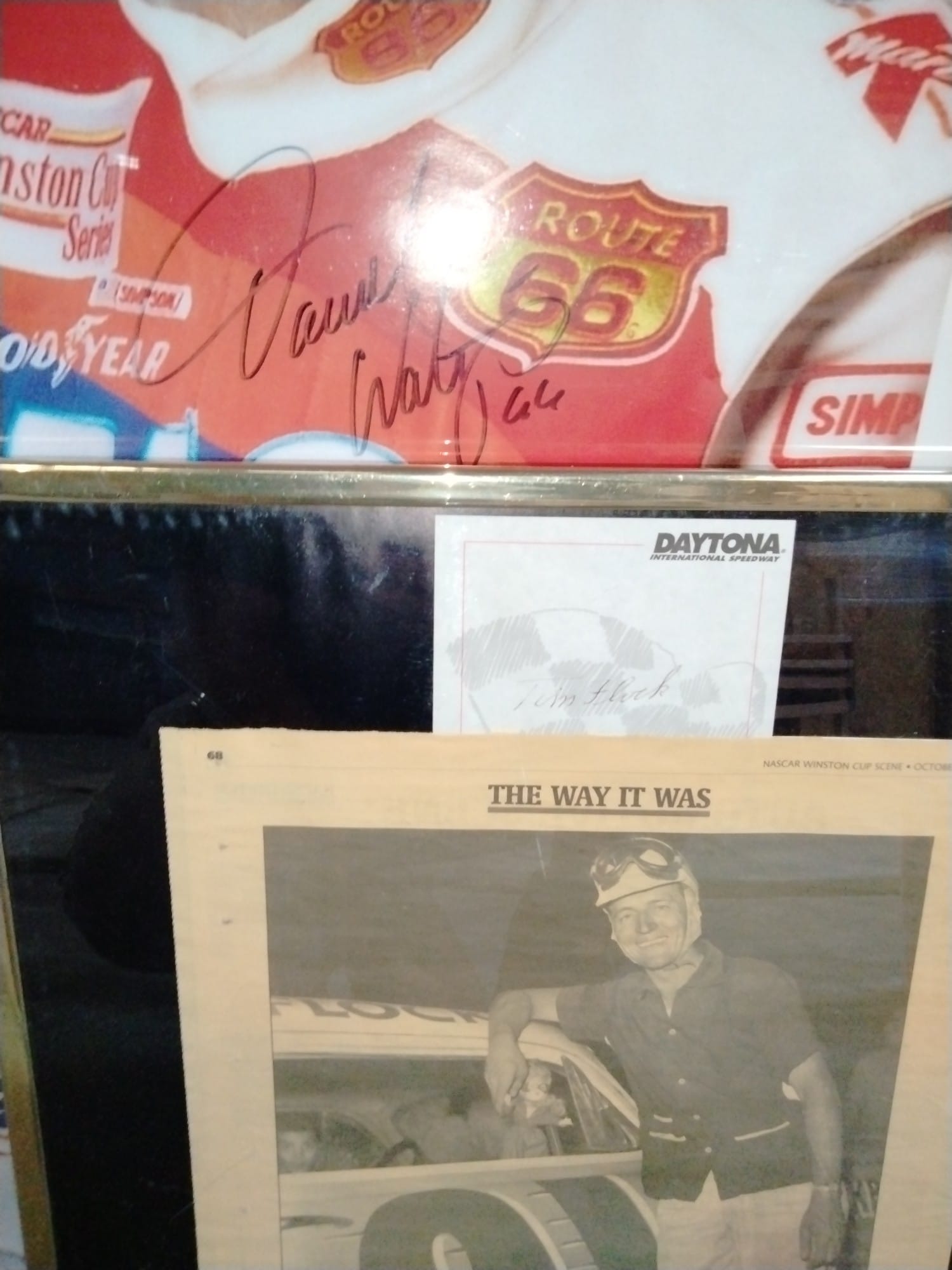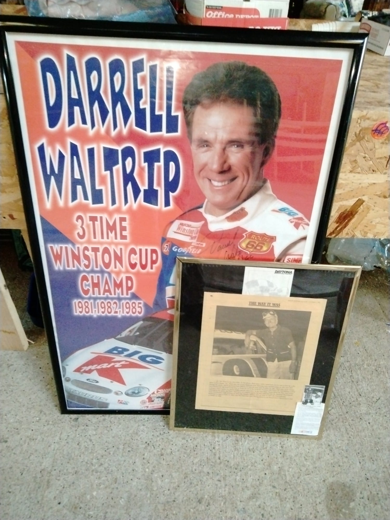 56 Darrell waltrip signed Poster and Tom flock clipping