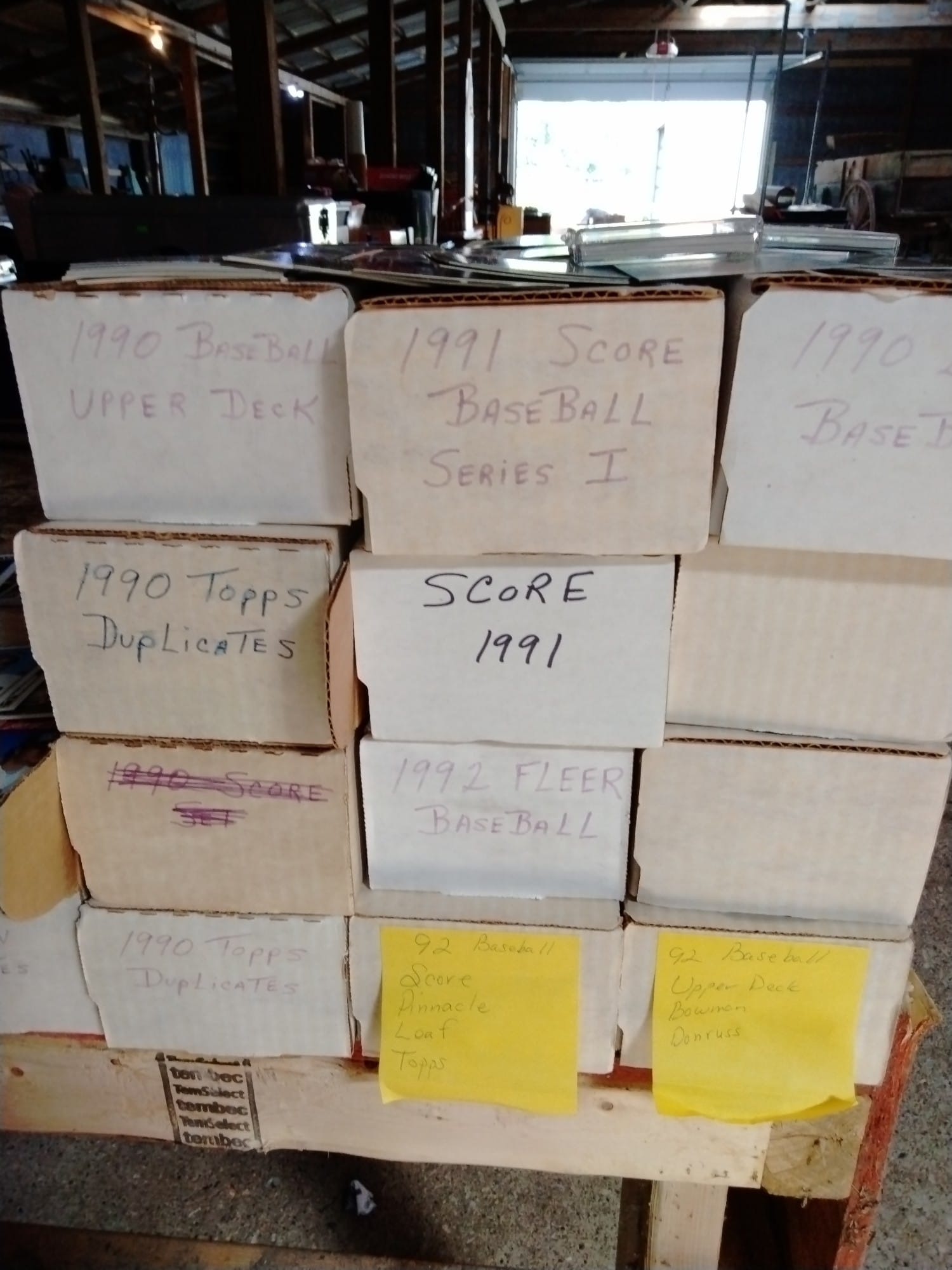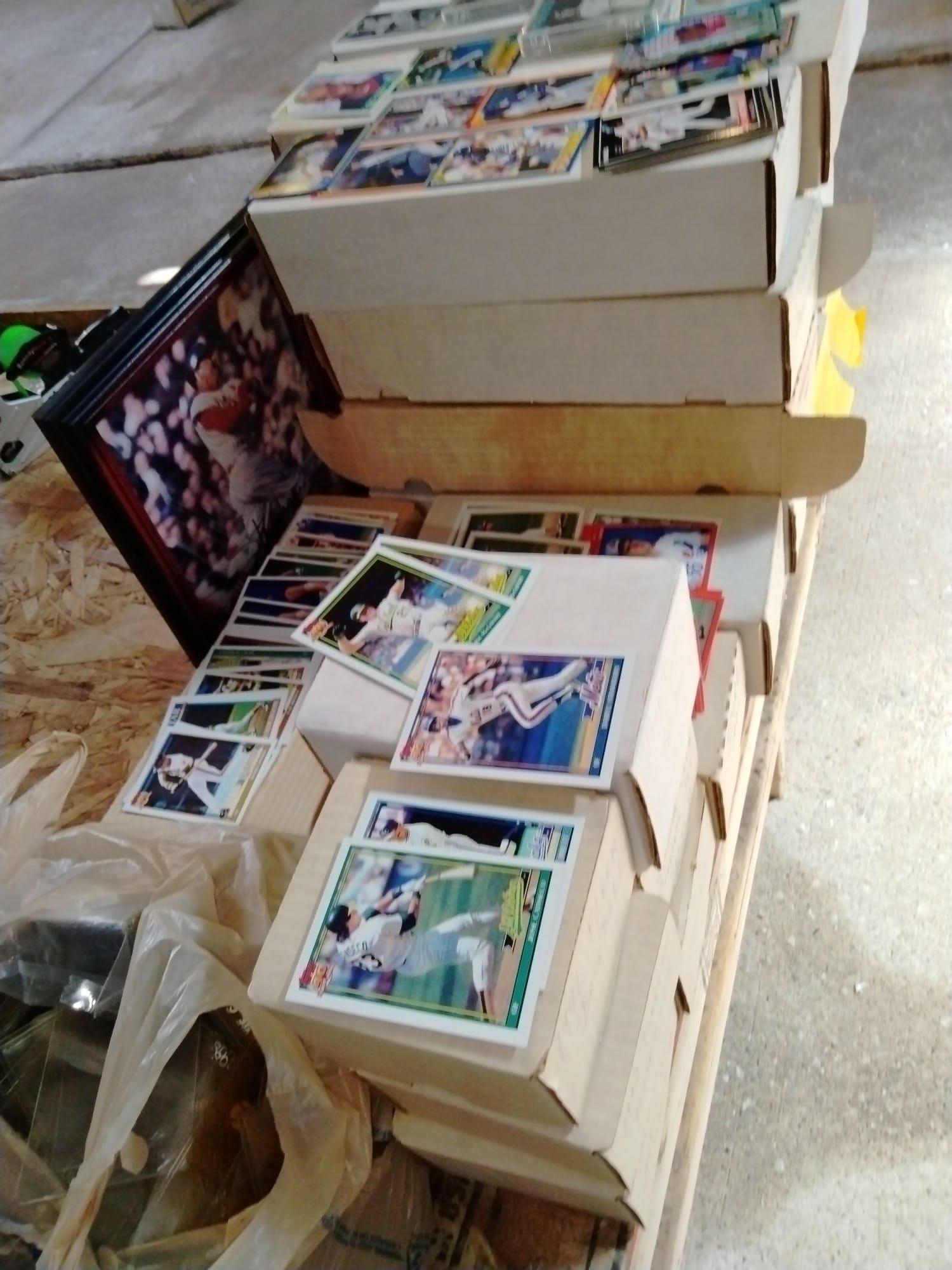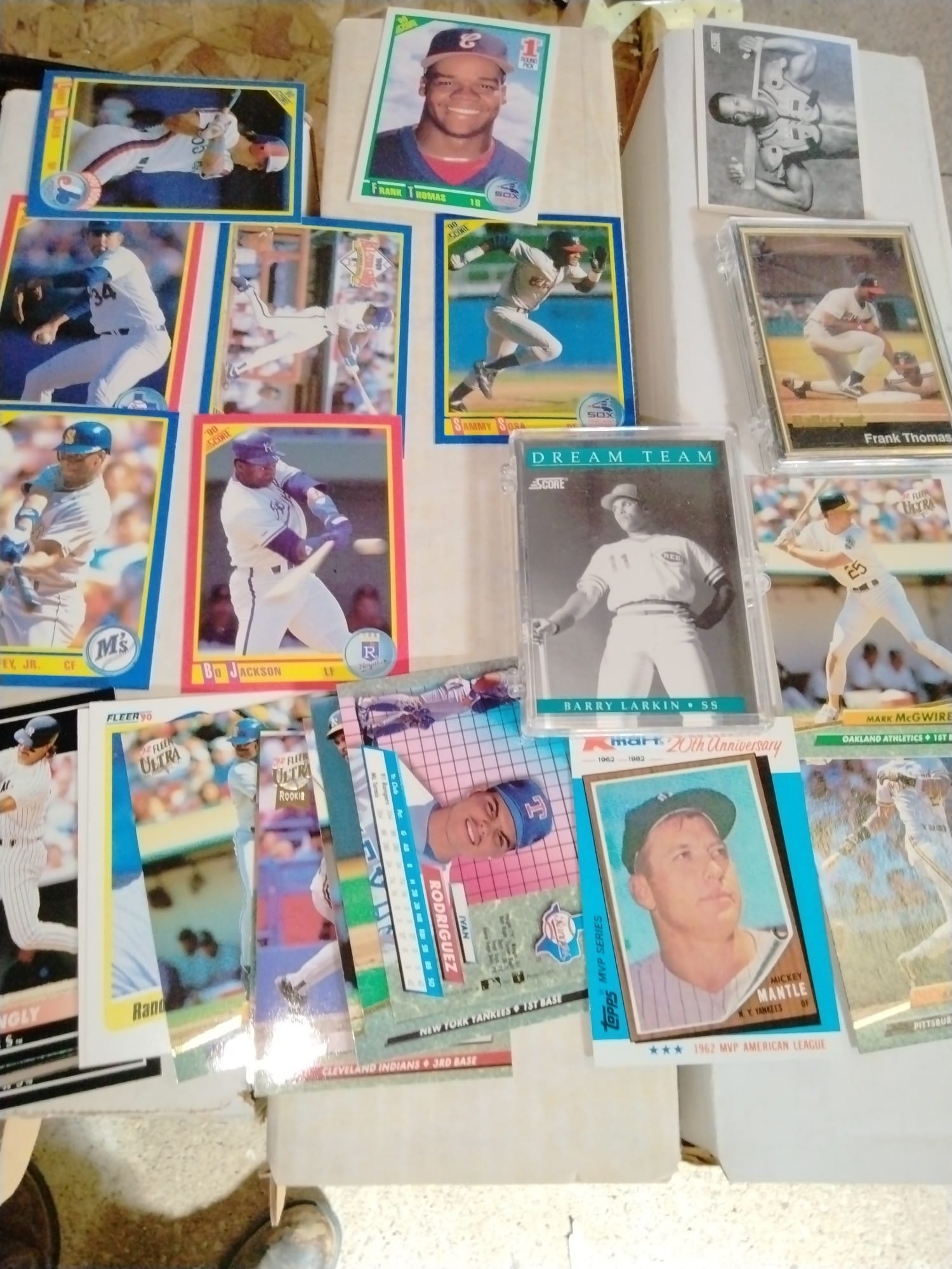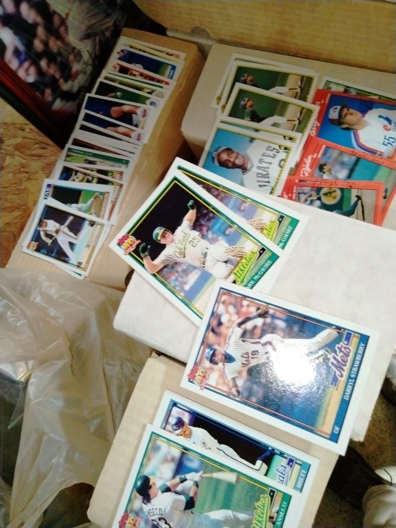 72 Baseball card collection mostly 1990s, Mark McGwire, Barry bonds, Frank Thomas, Darryl strawberry, Bo Jackson card sleeves, some partial some full boxes of cards