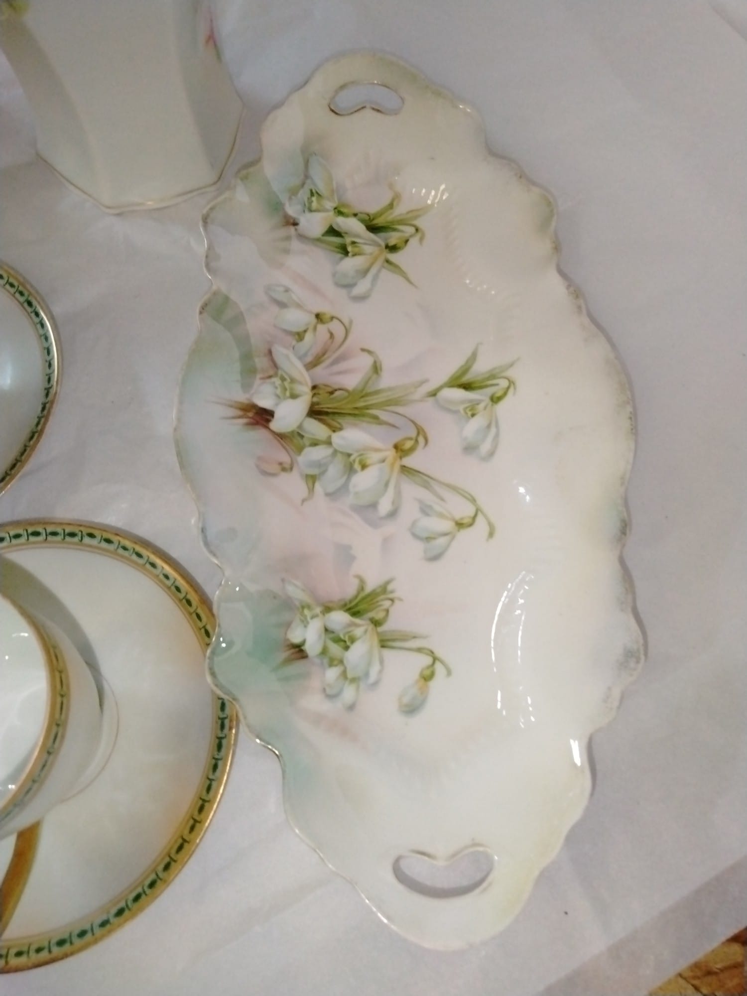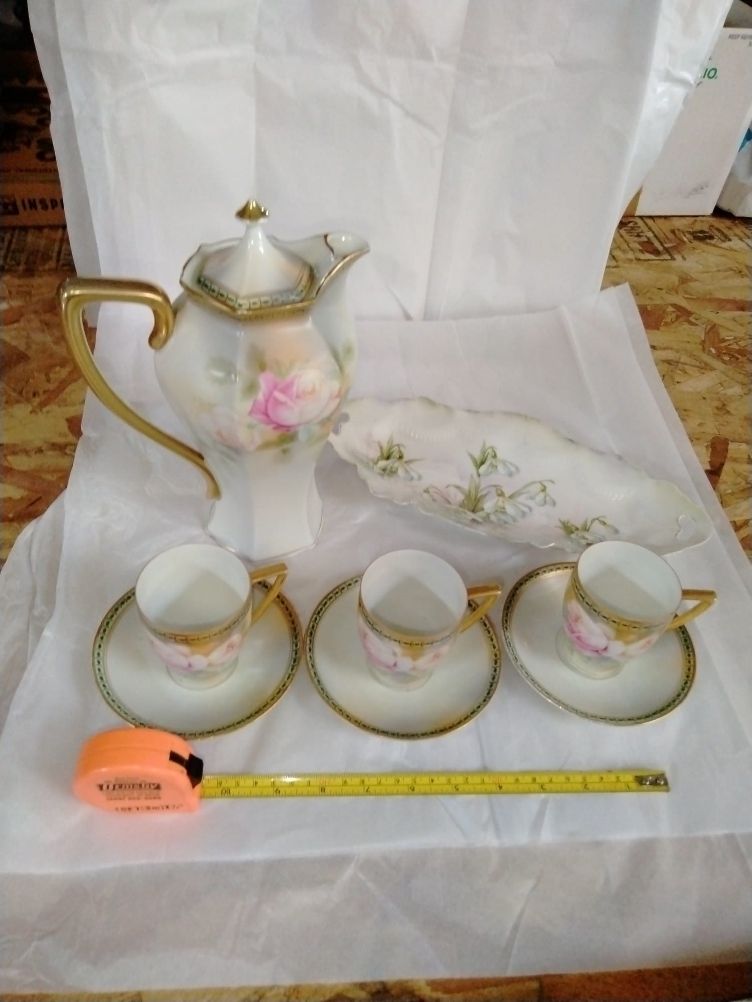 89 Porcelain Germany coffee pot and cups, Prussia celery dish