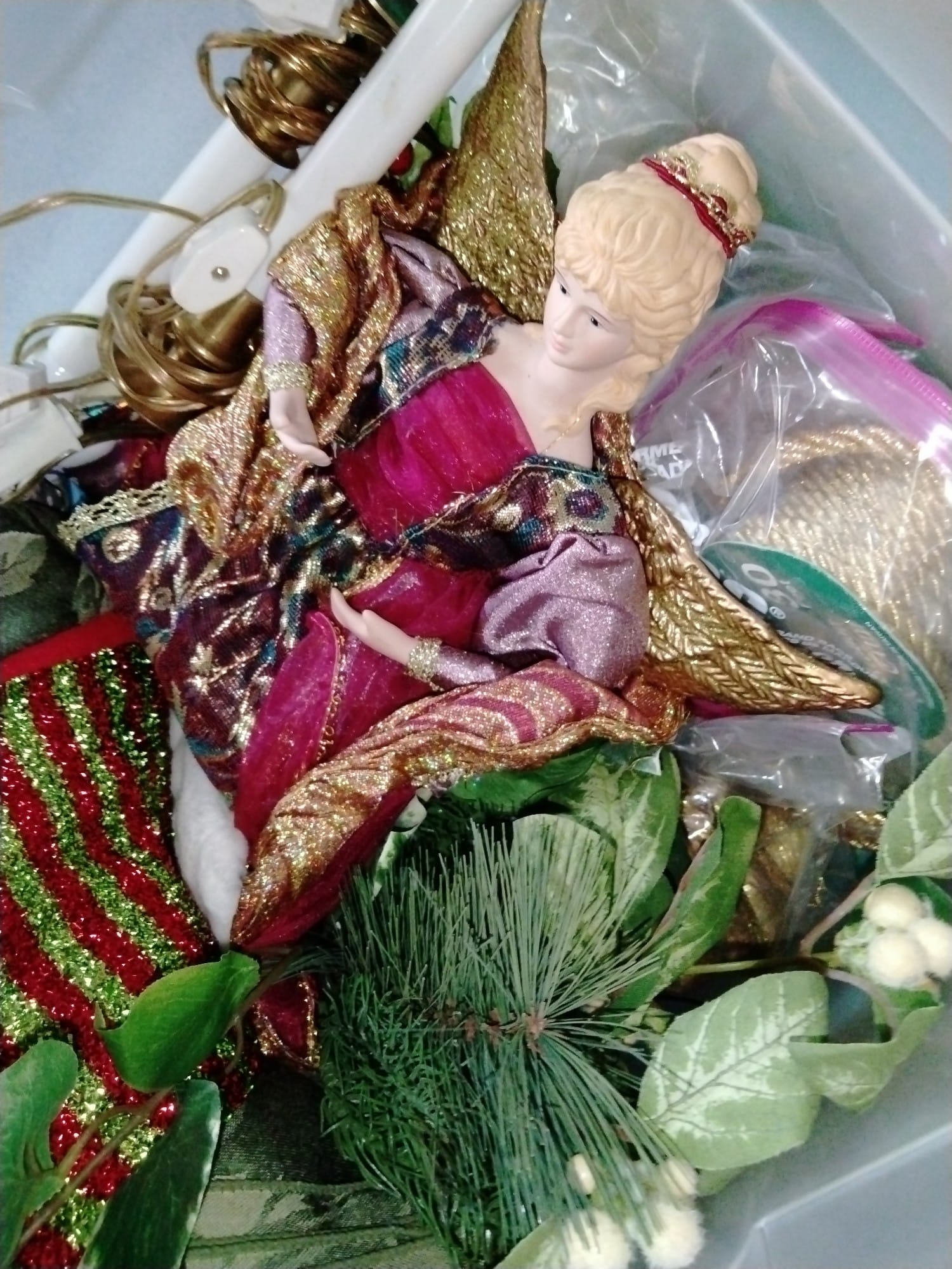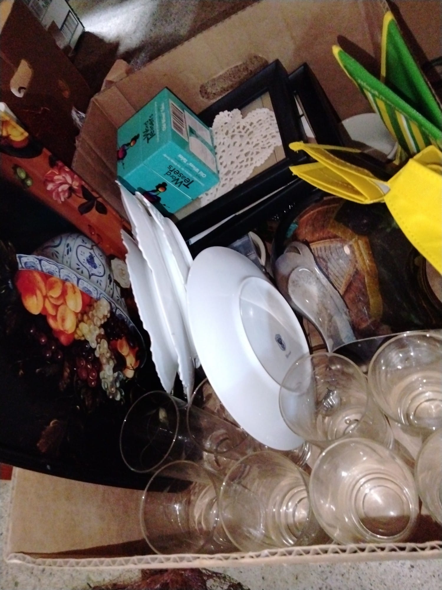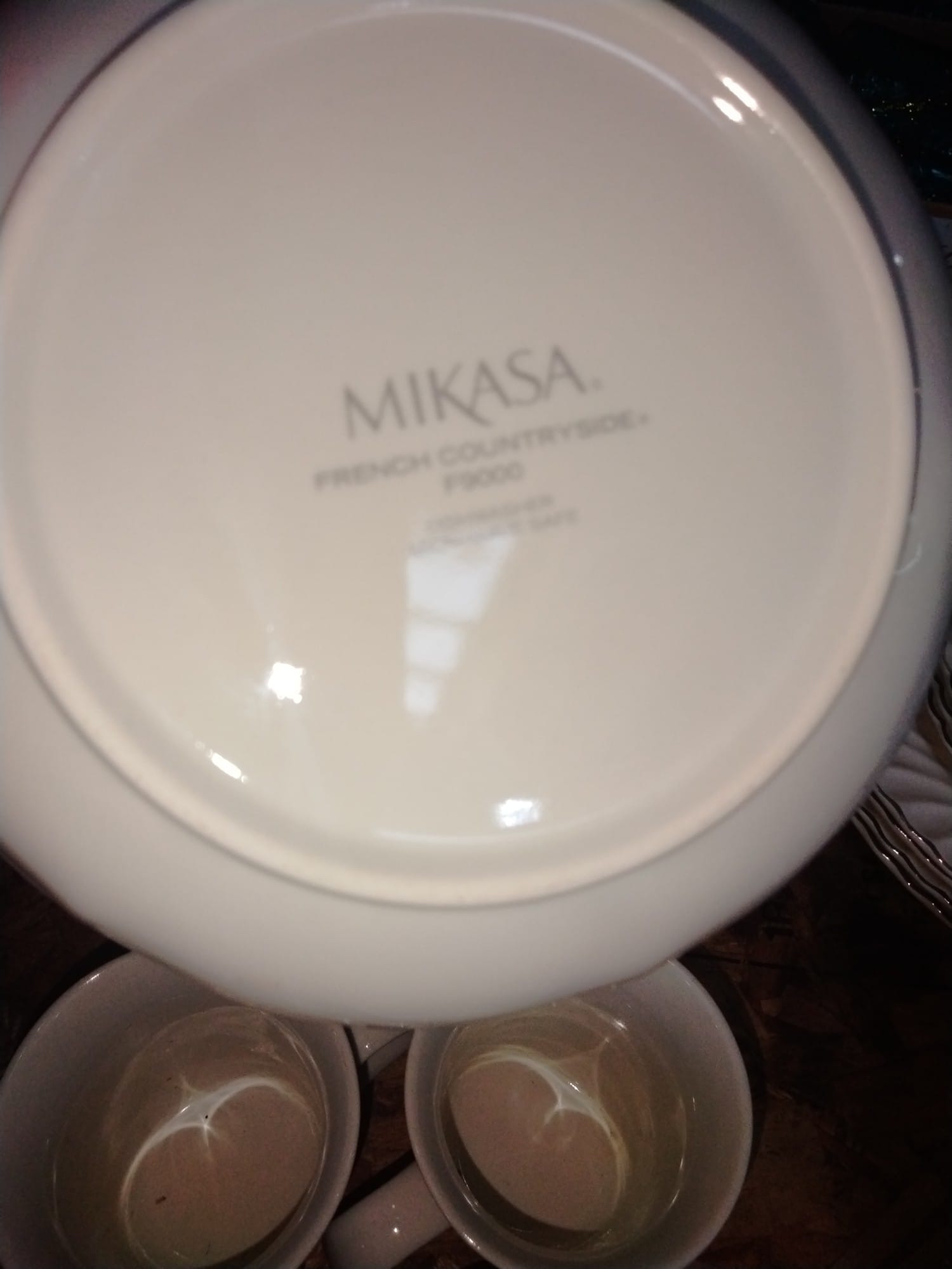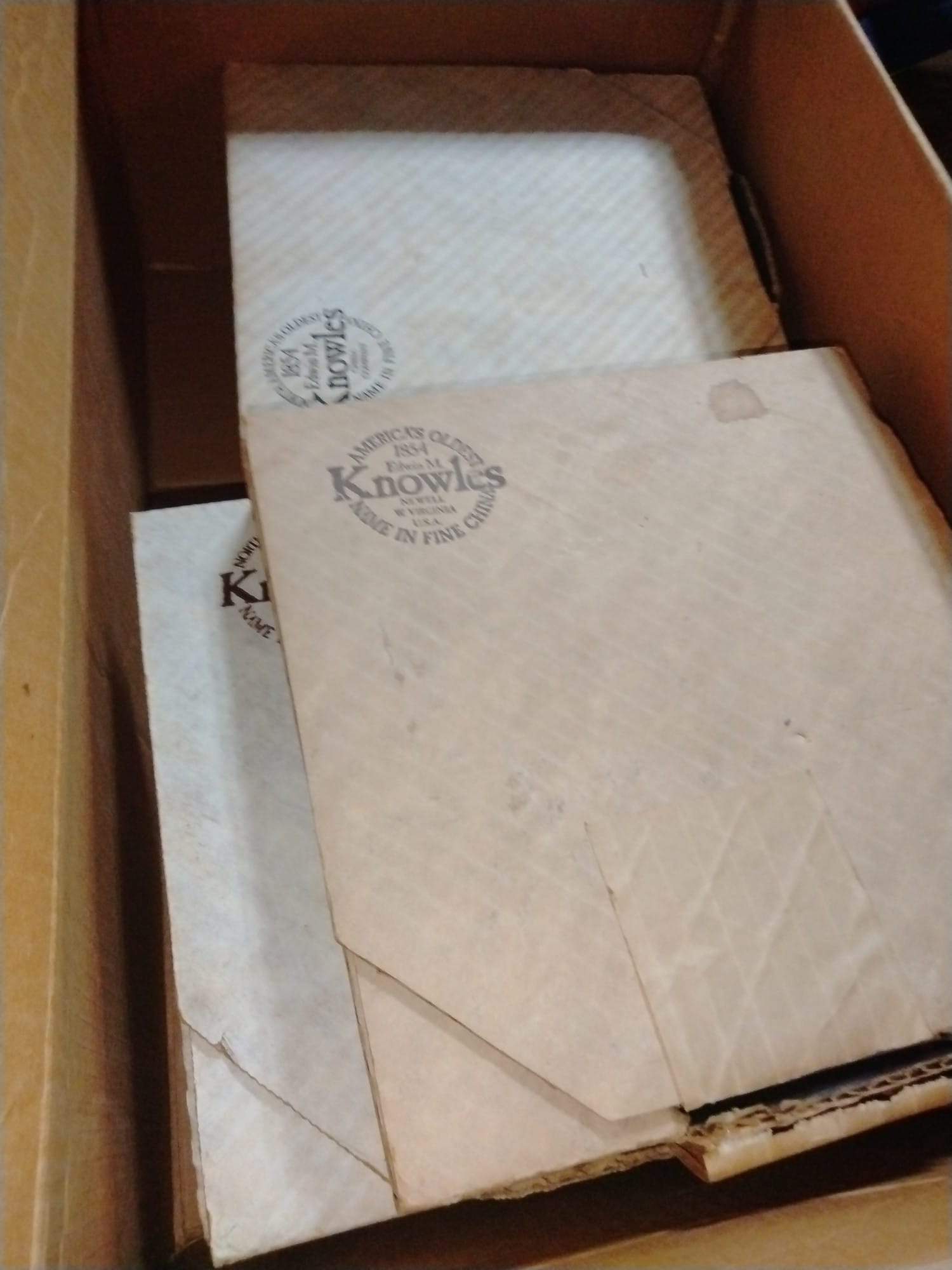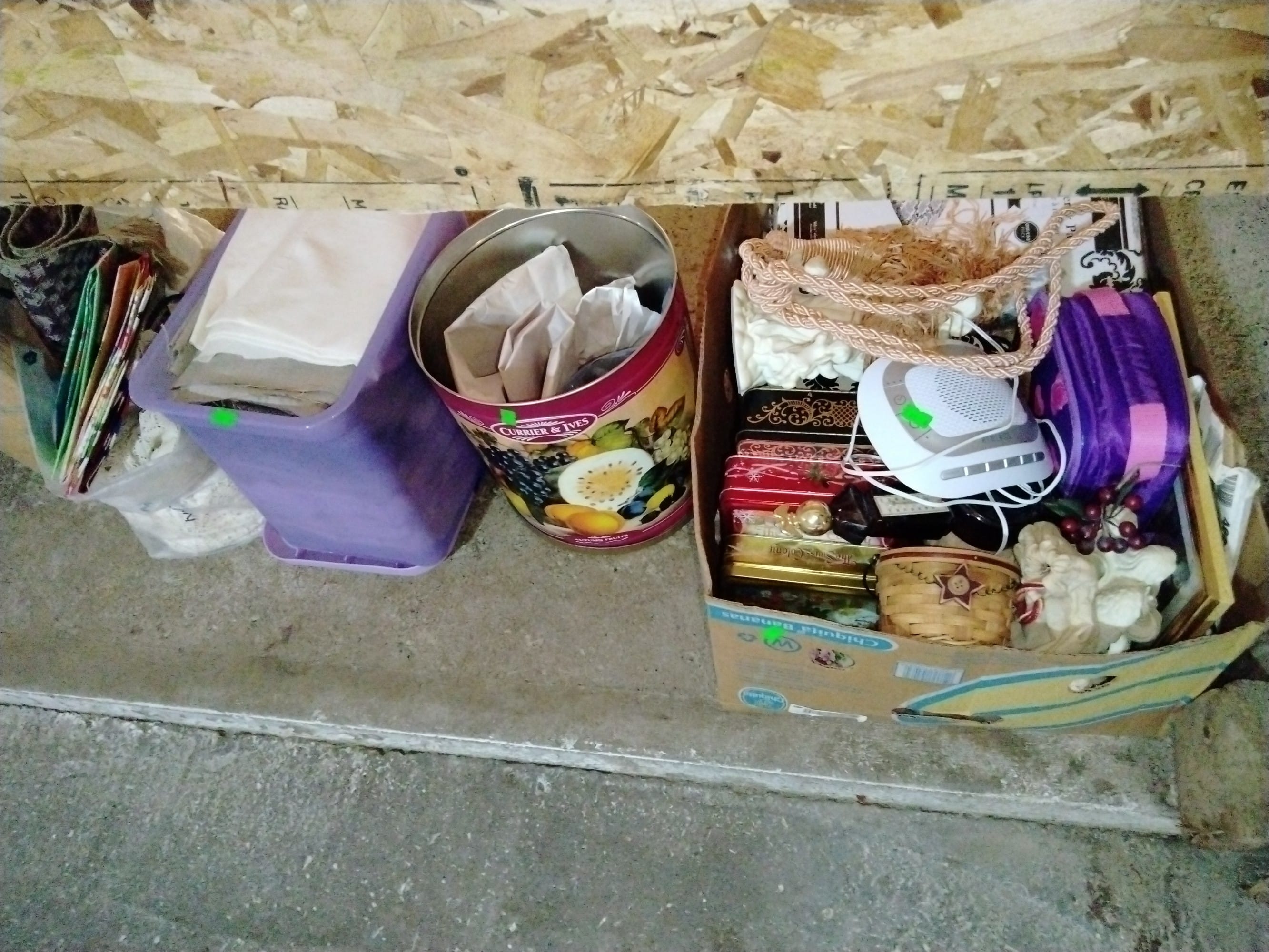 104 Teacups and saucers, Christmas whirly gig, Williamsburg plates, carnival glass bowl with chips, amber bowl, black hobnail dish