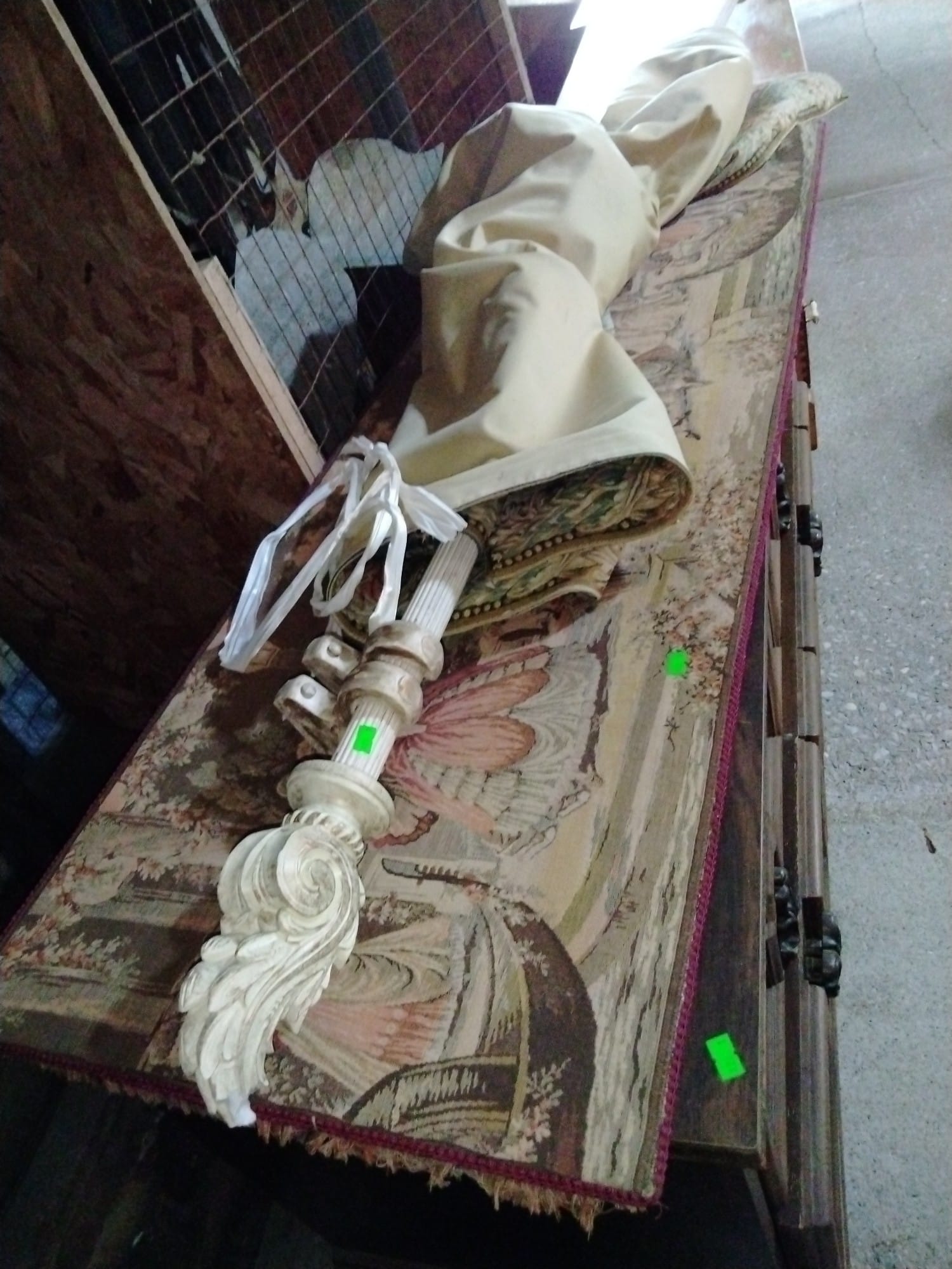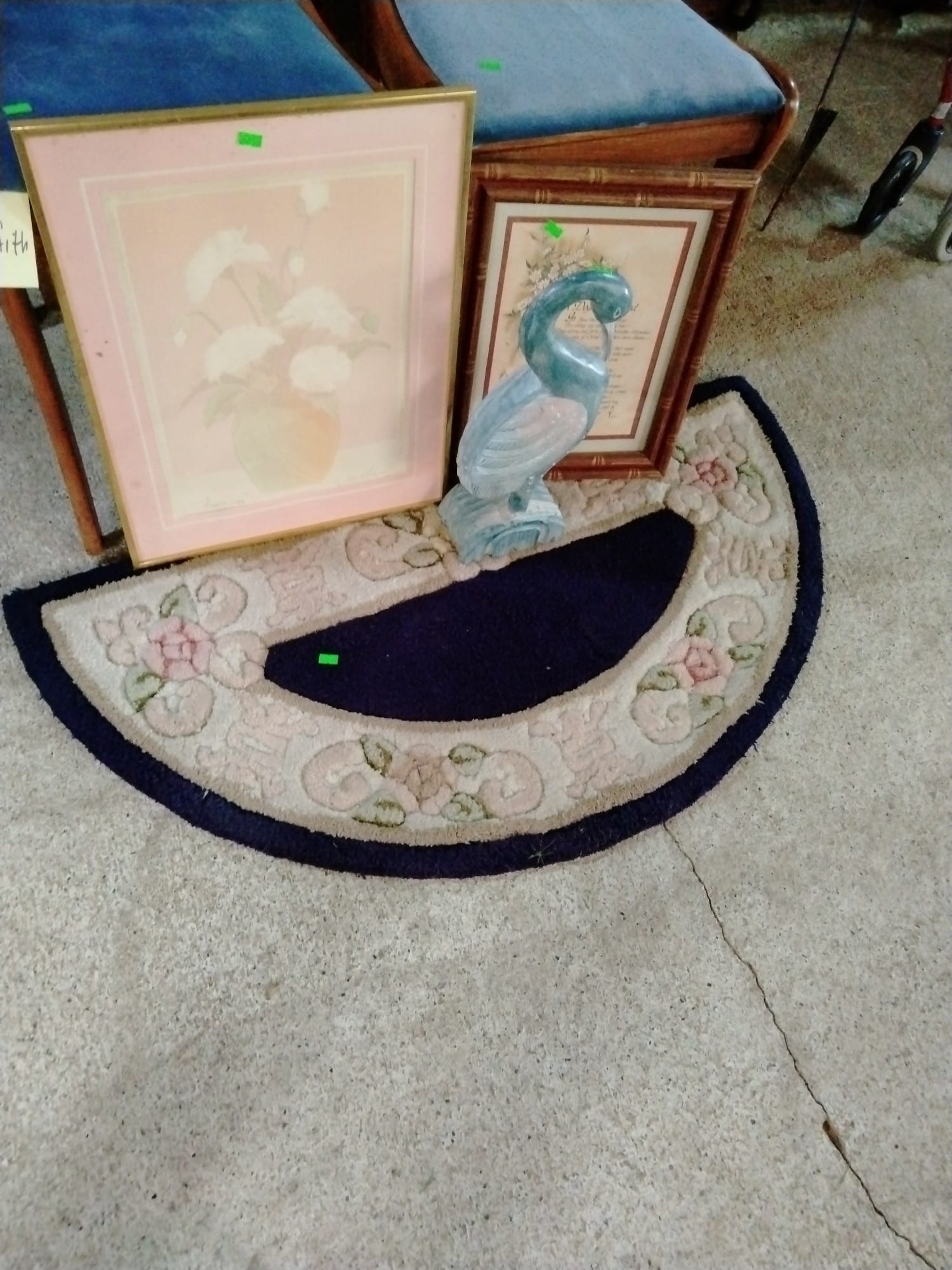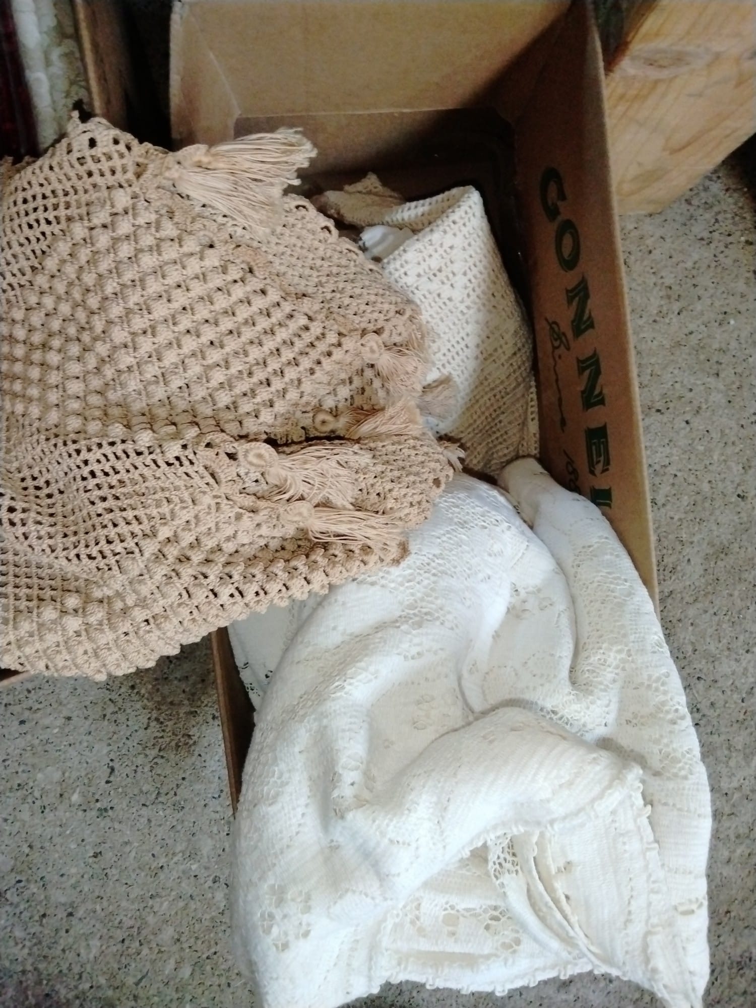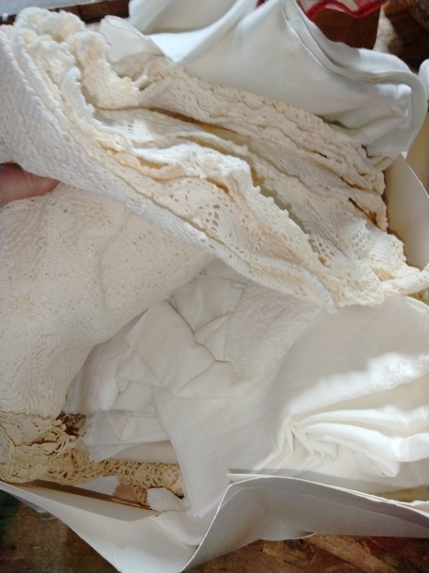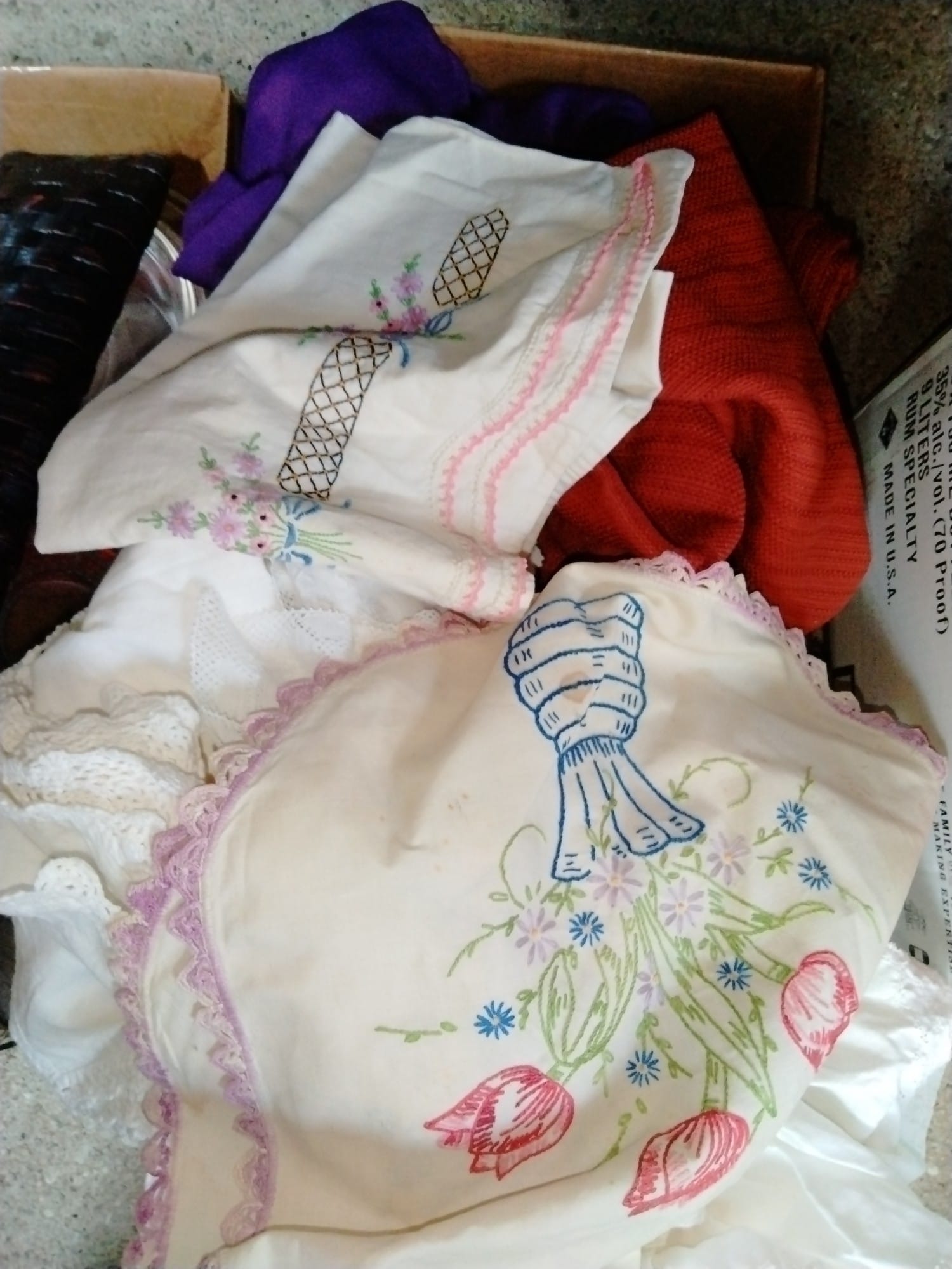 104 Teacups and saucers, Christmas whirly gig, Williamsburg plates, carnival glass bowl with chips, amber bowl, black hobnail dish