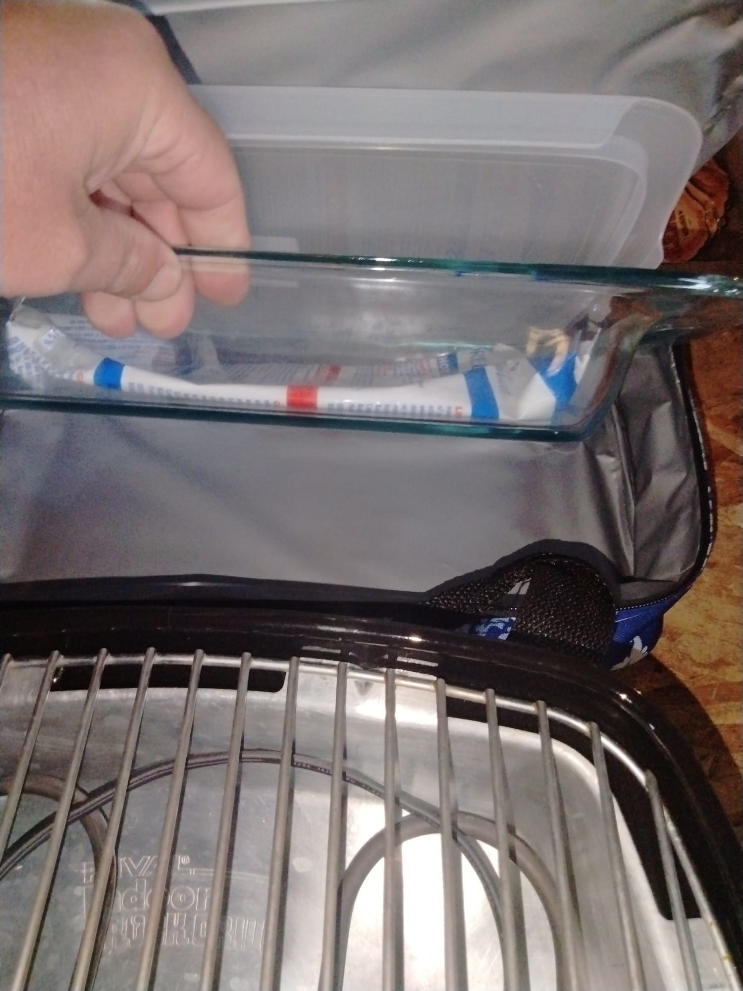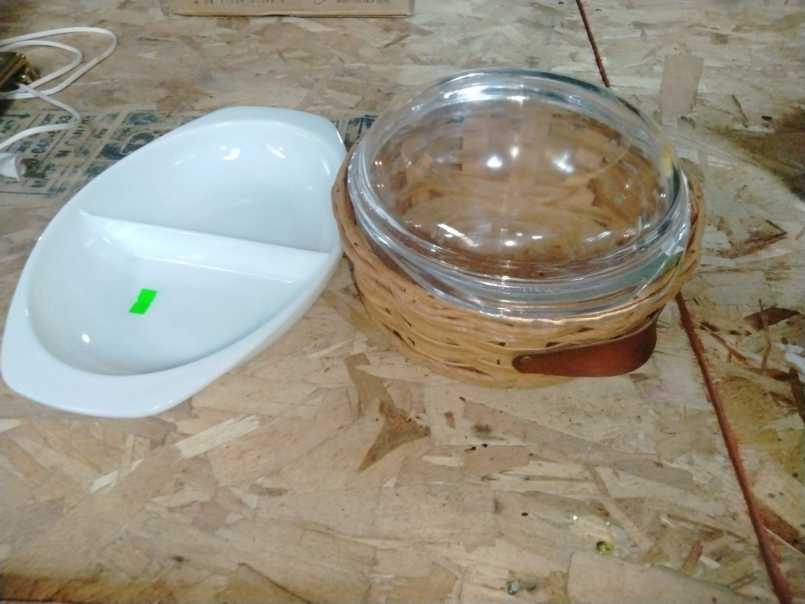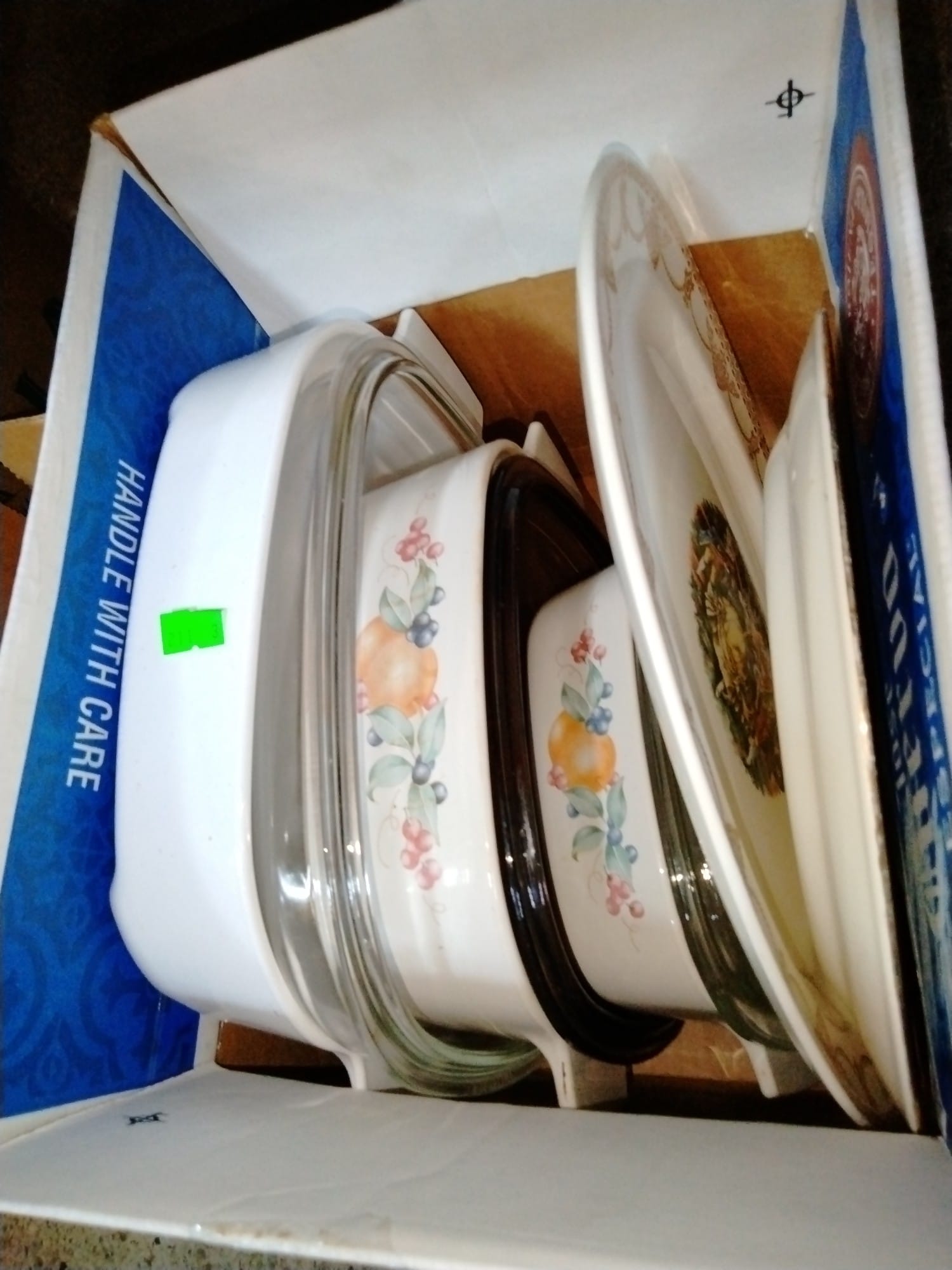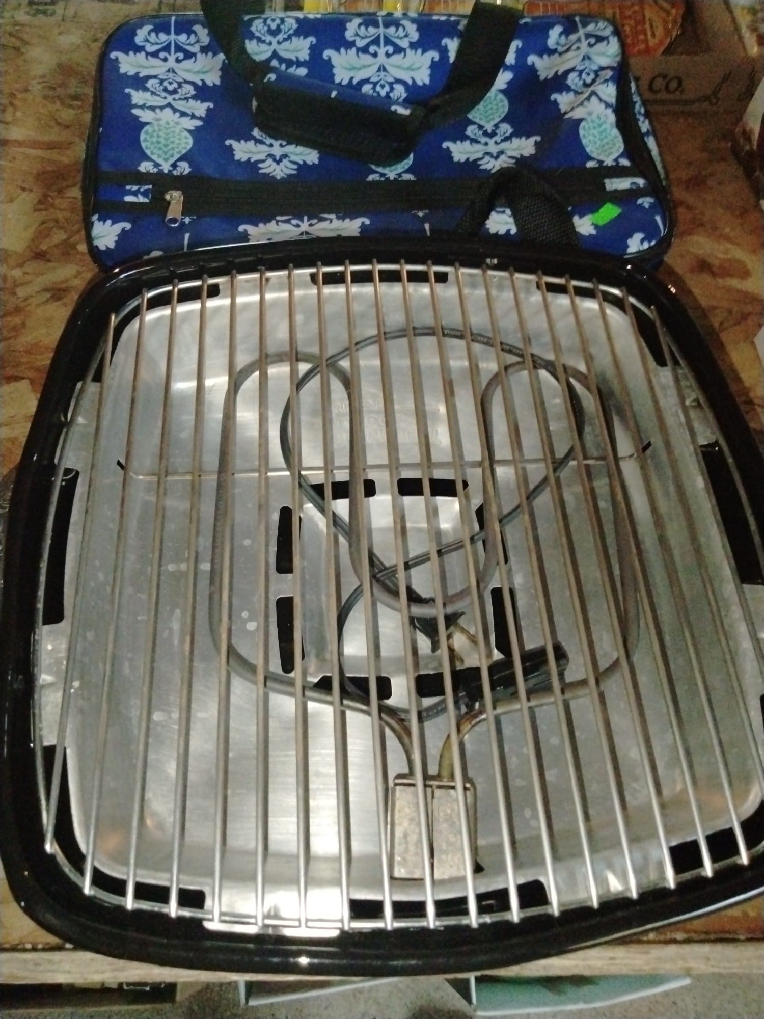 102 Indoor crock grill, tray and Pyrex baking dish with carrier
