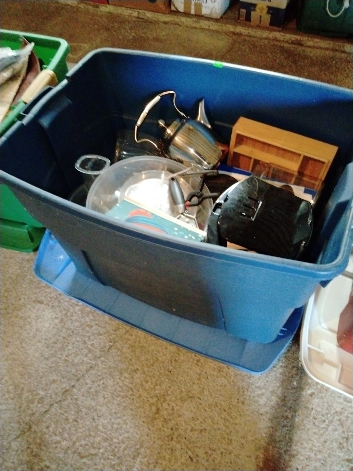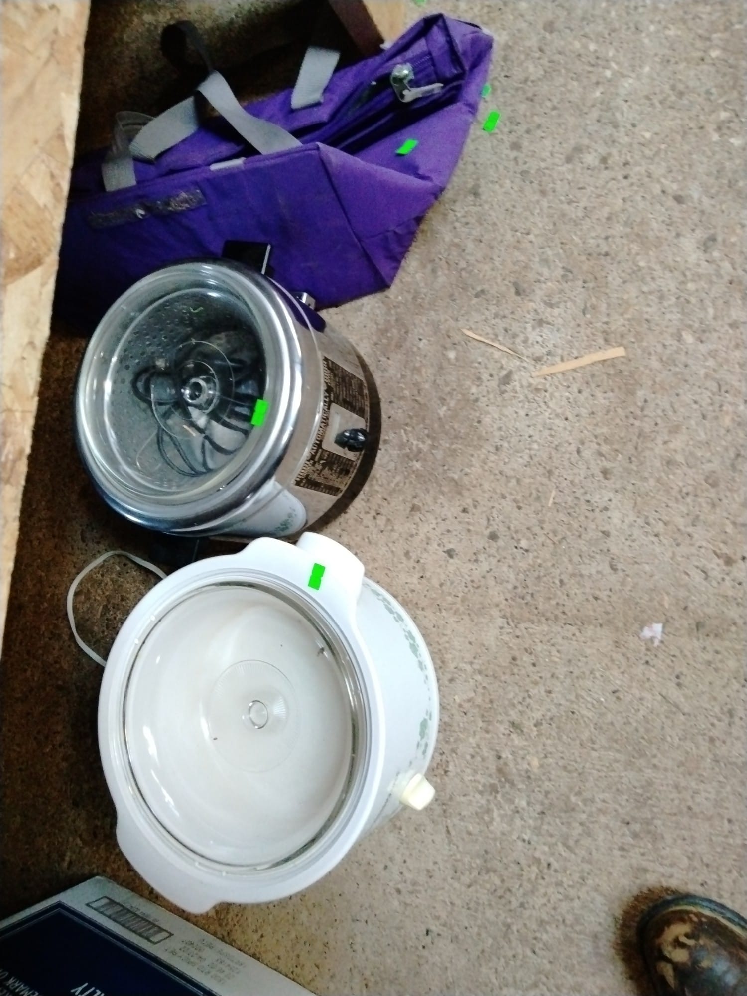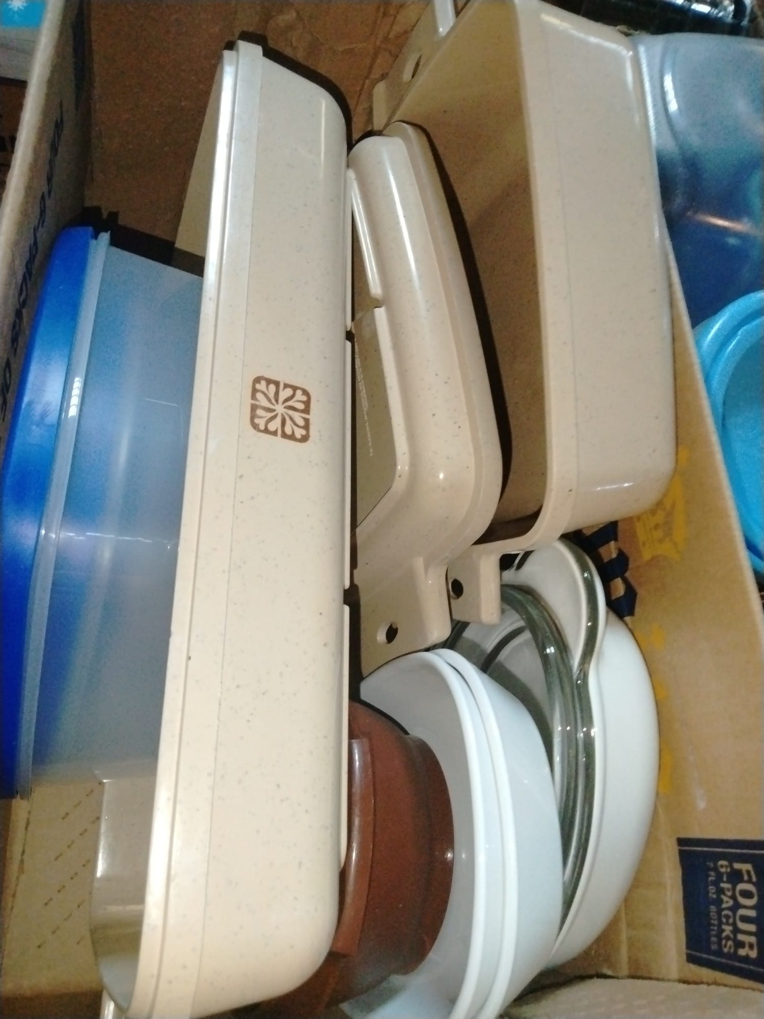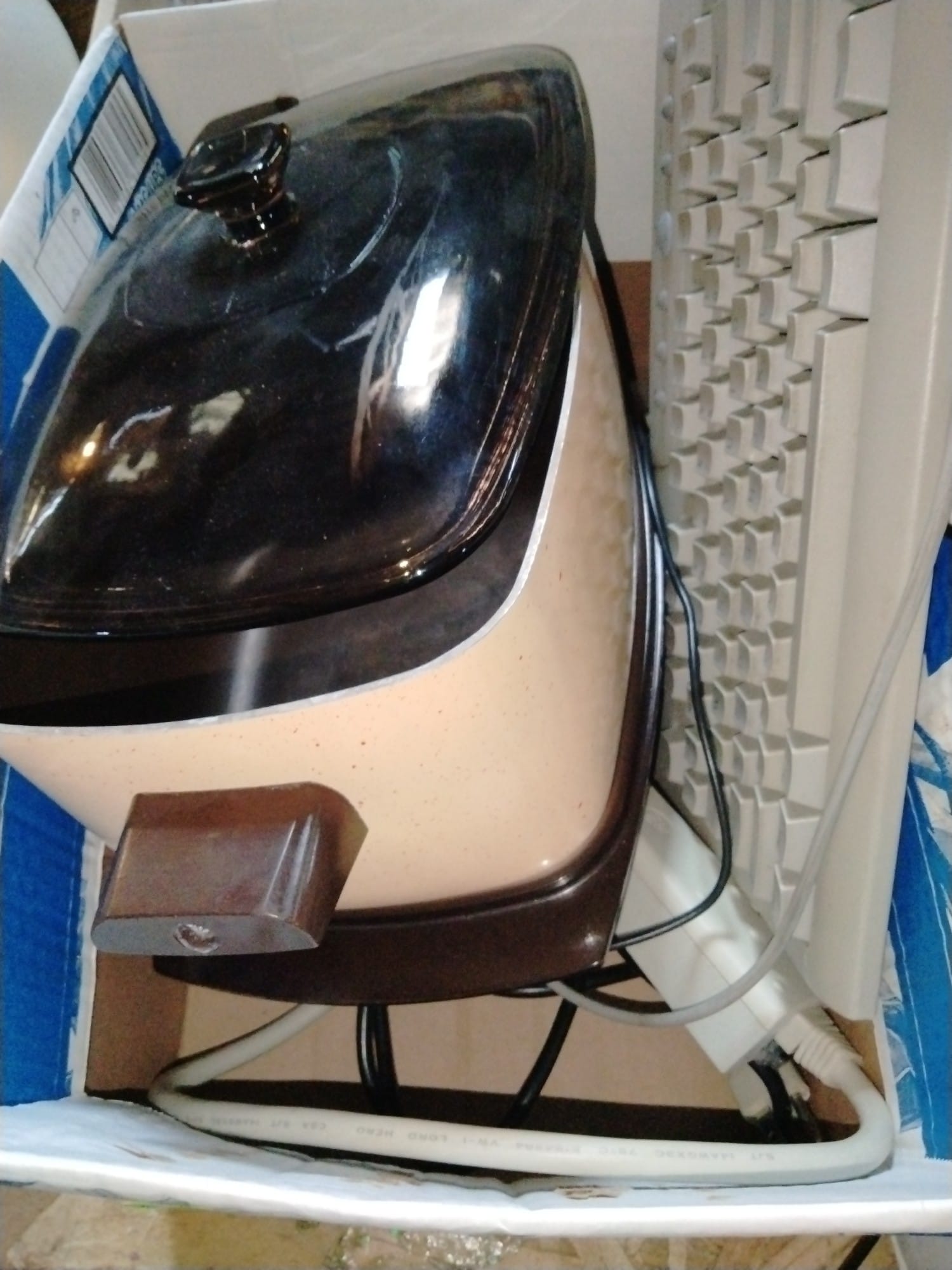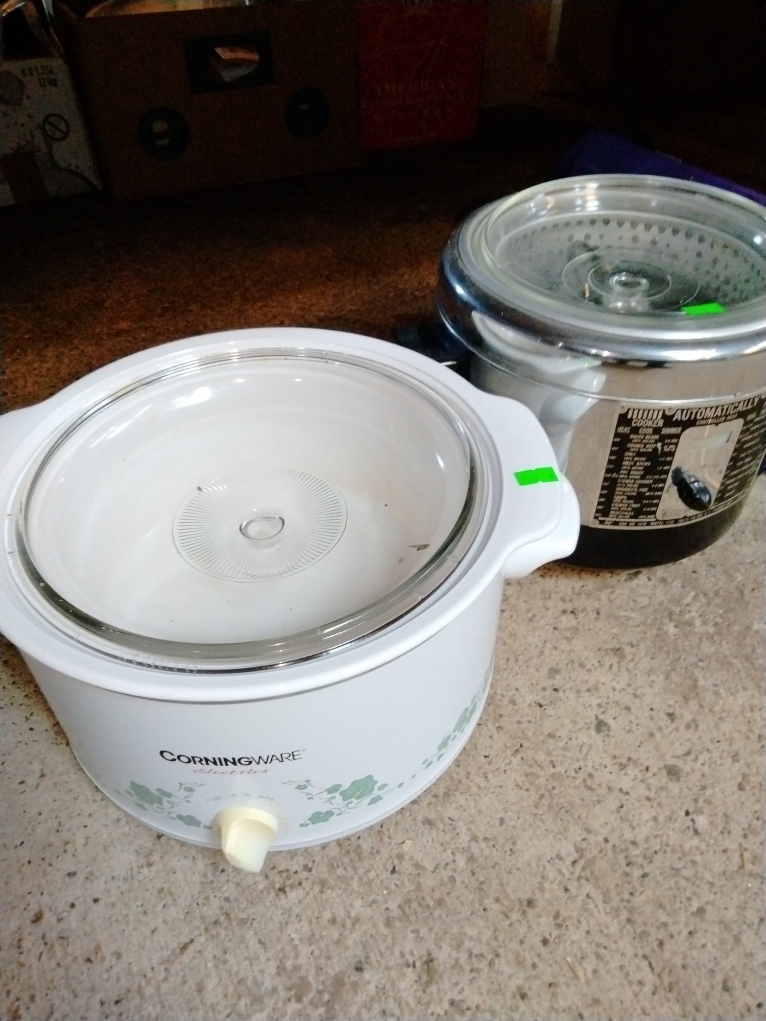 102 Indoor crock grill, tray and Pyrex baking dish with carrier