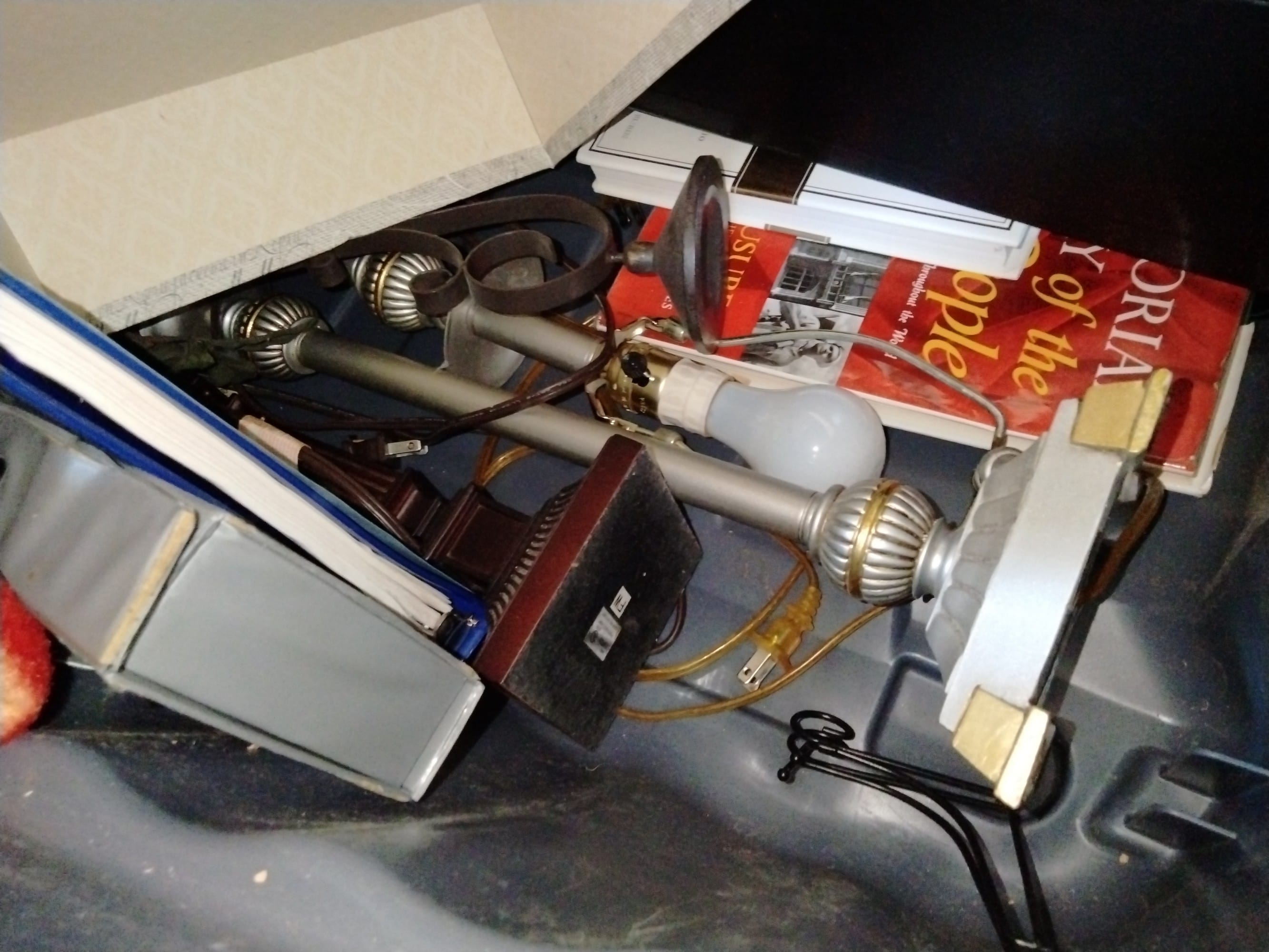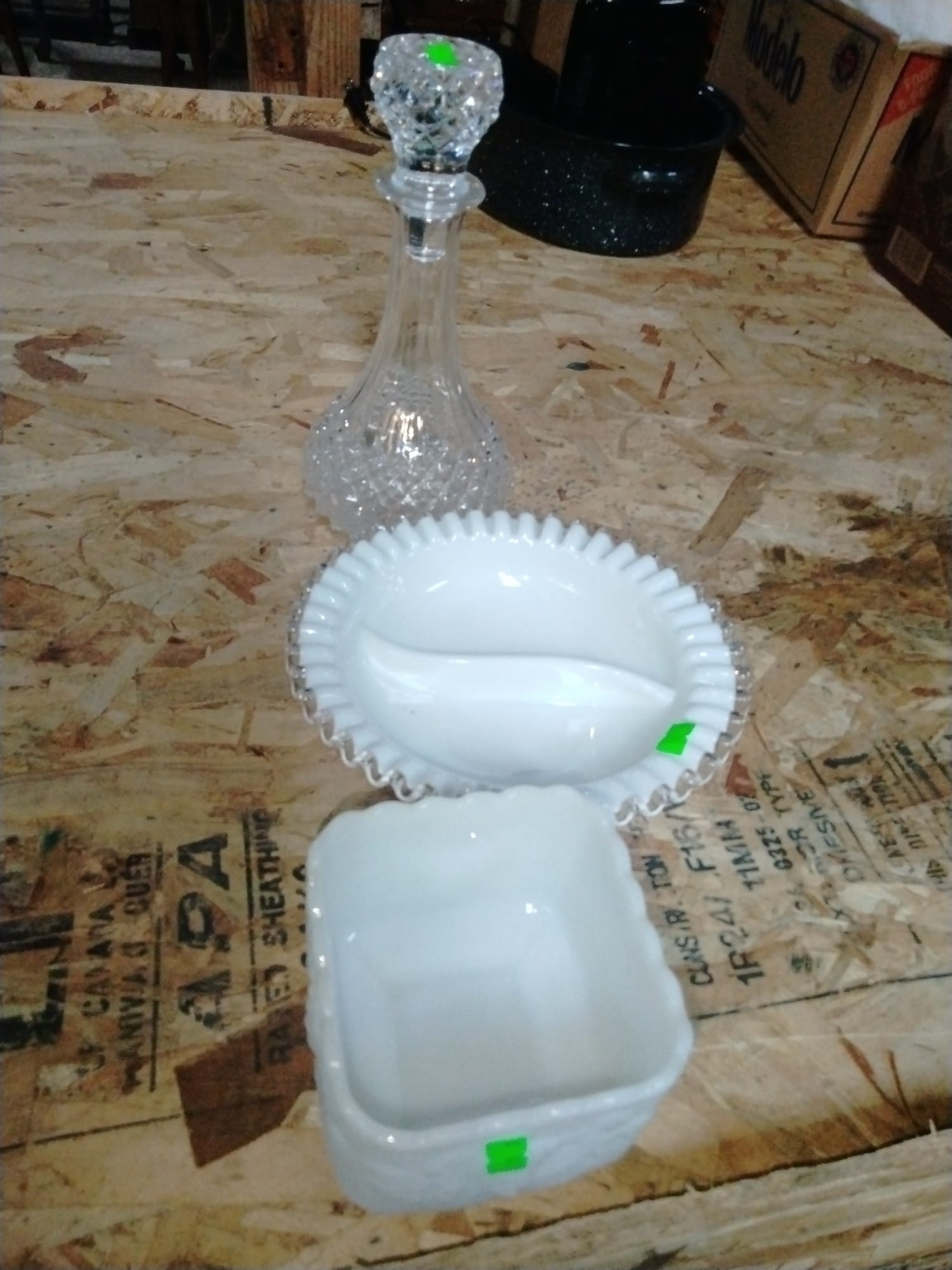 37 Thomas dairy pint, Planters jar, oil lamps, dictionary
